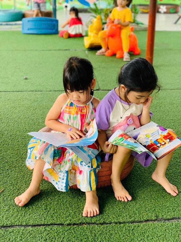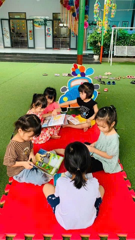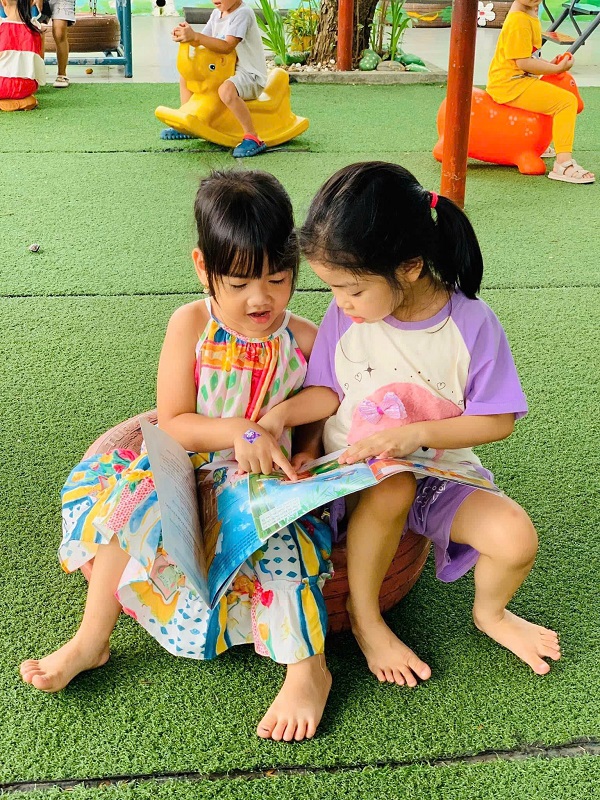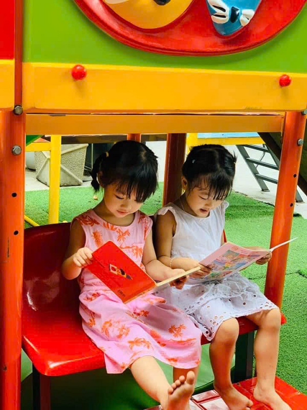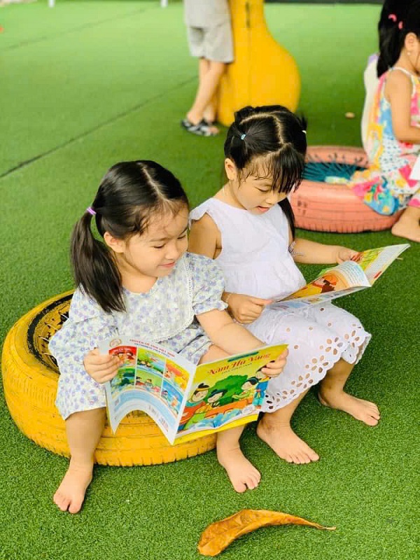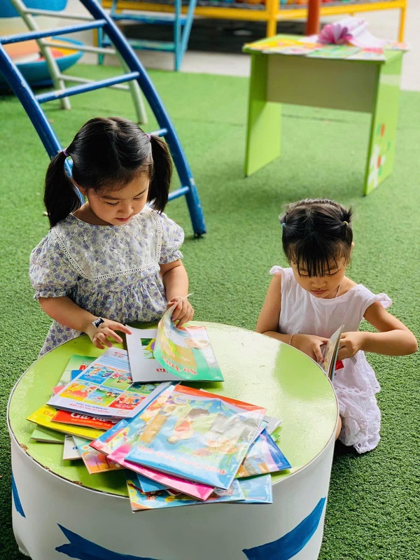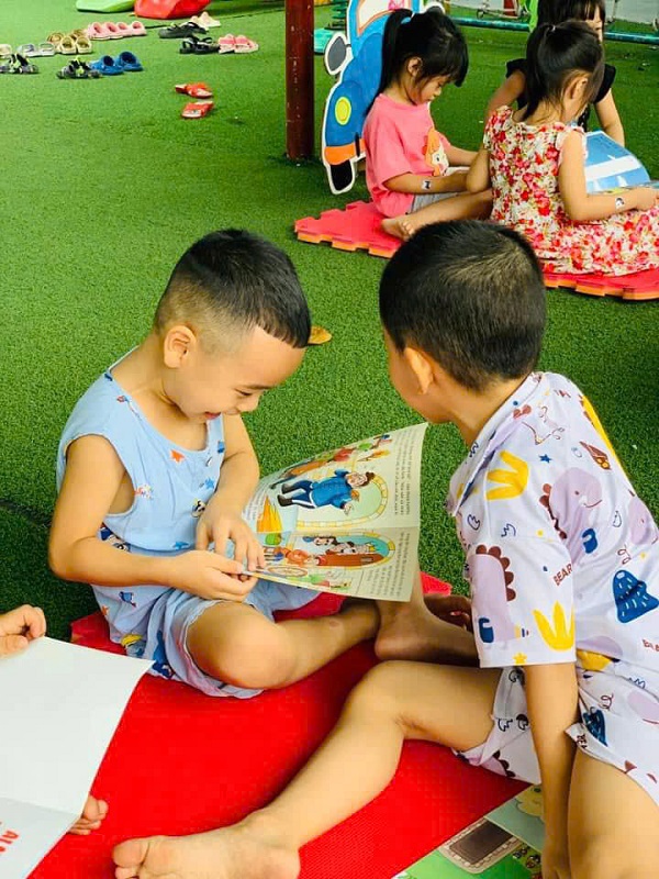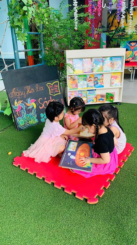 Các bạn nhỏ lớp Nhỡ 1 hưởng ứng Ngày hội đọc sách. Ba mẹ cùng xem các con xem sách chăm chú và thích thú chưa nè.