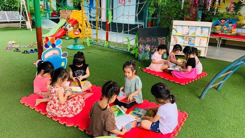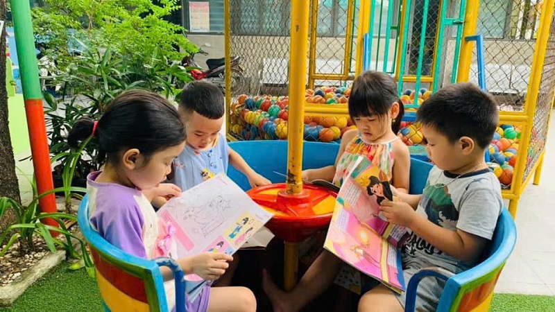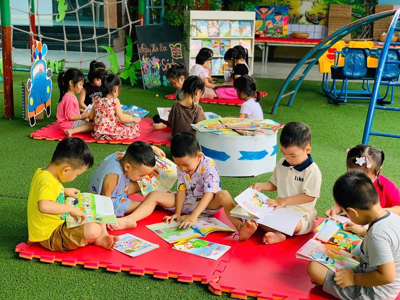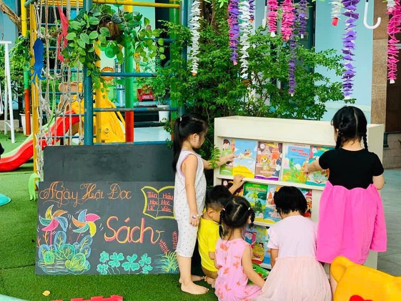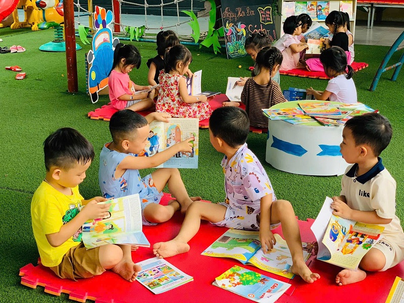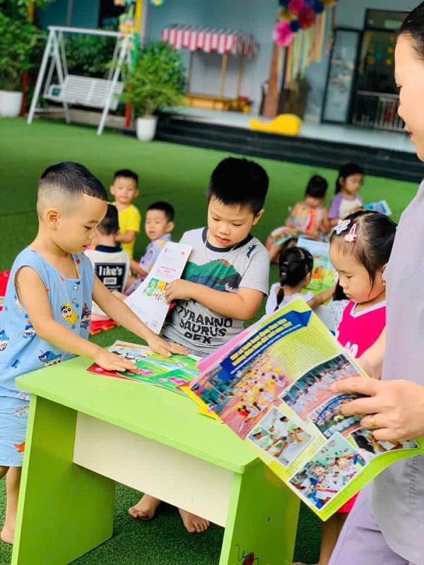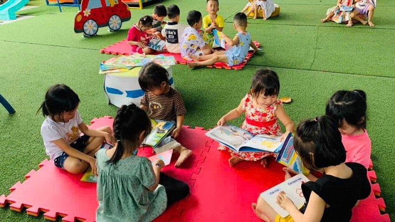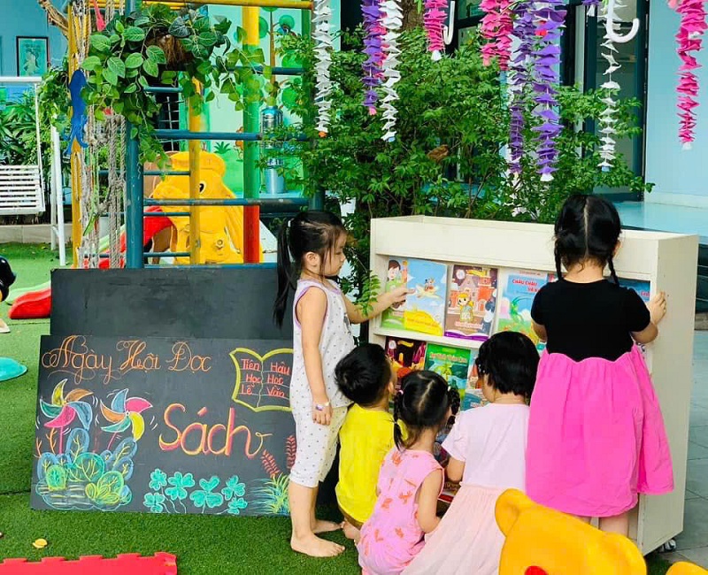 Các bạn nhỏ lớp Nhỡ 1 hưởng ứng Ngày hội đọc sách. Ba mẹ cùng xem các con xem sách chăm chú và thích thú chưa nè.