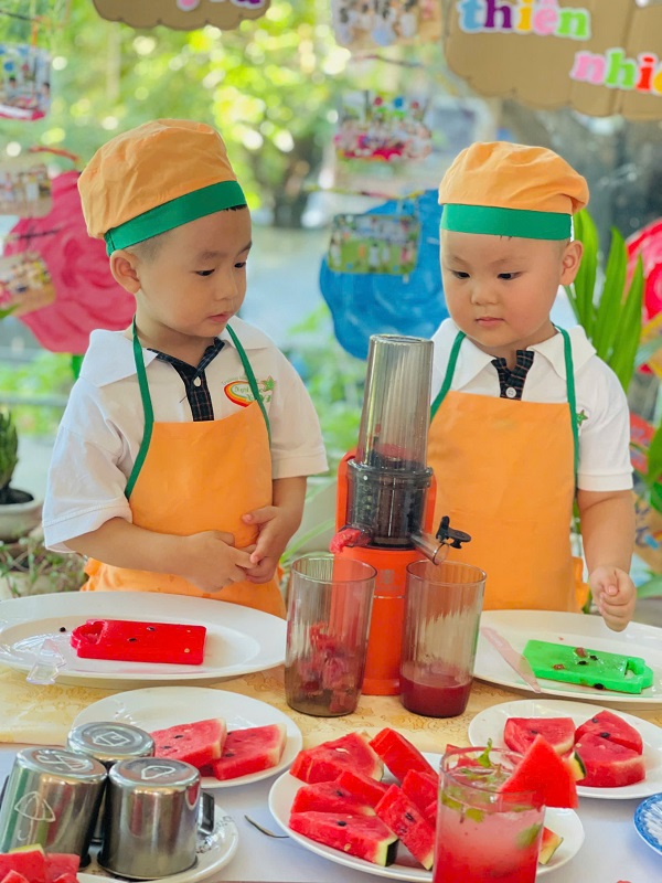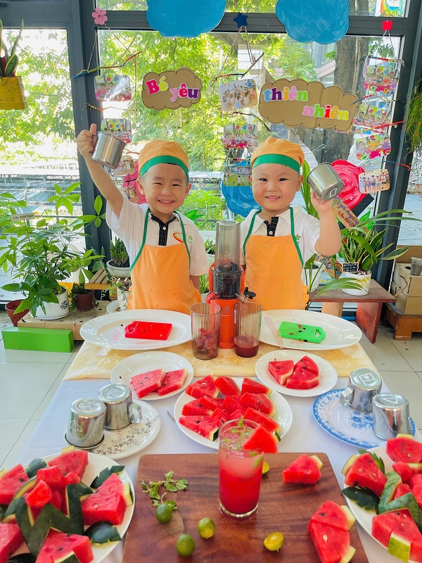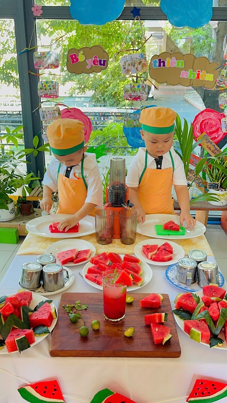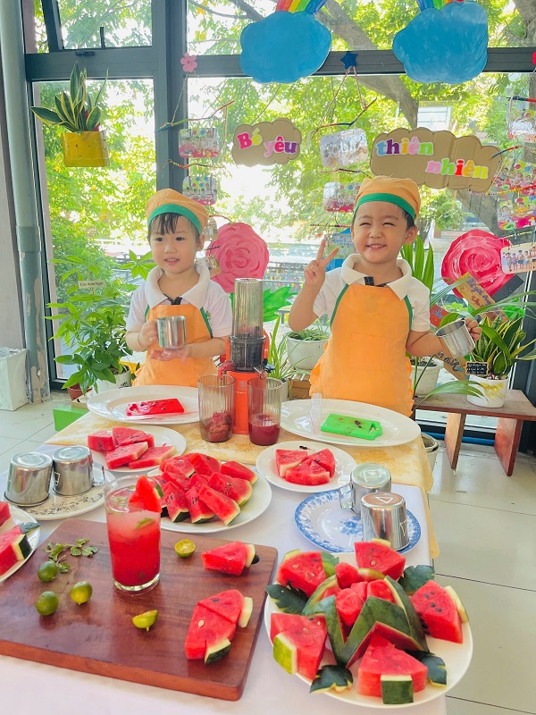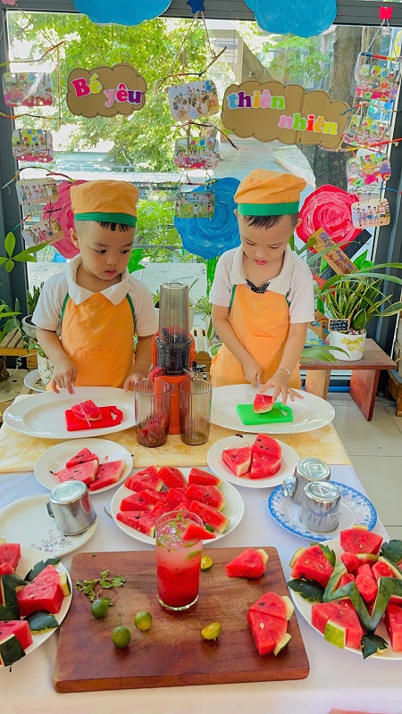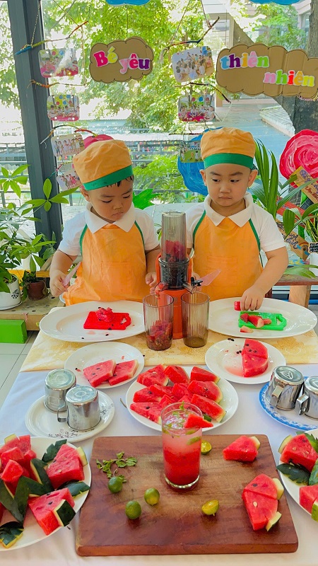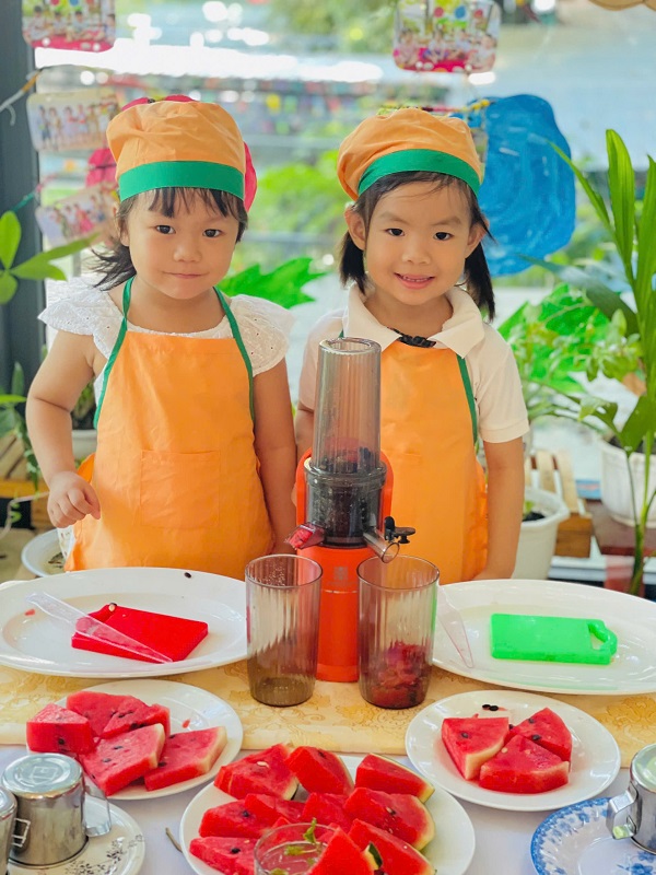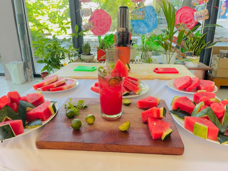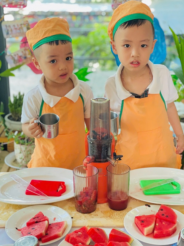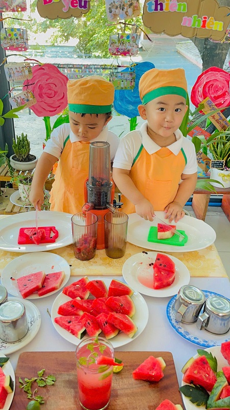 Ba mẹ cùng xem các con làm "Nước ép dưa hấu".