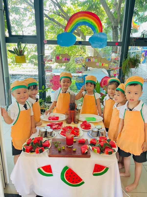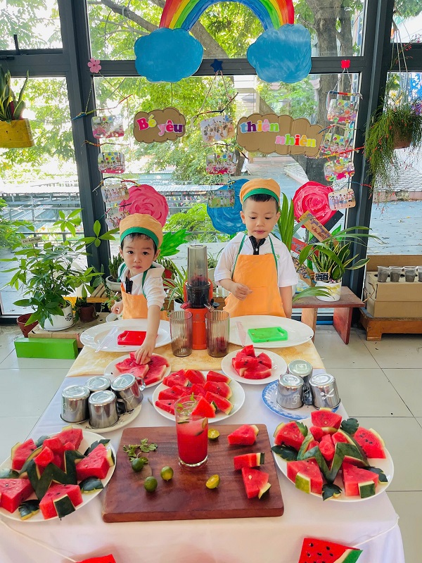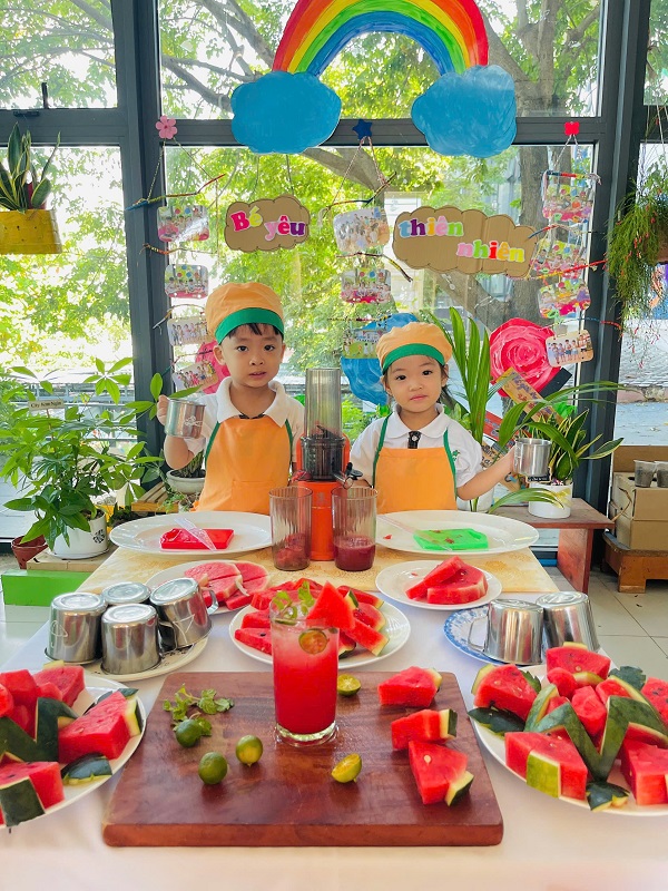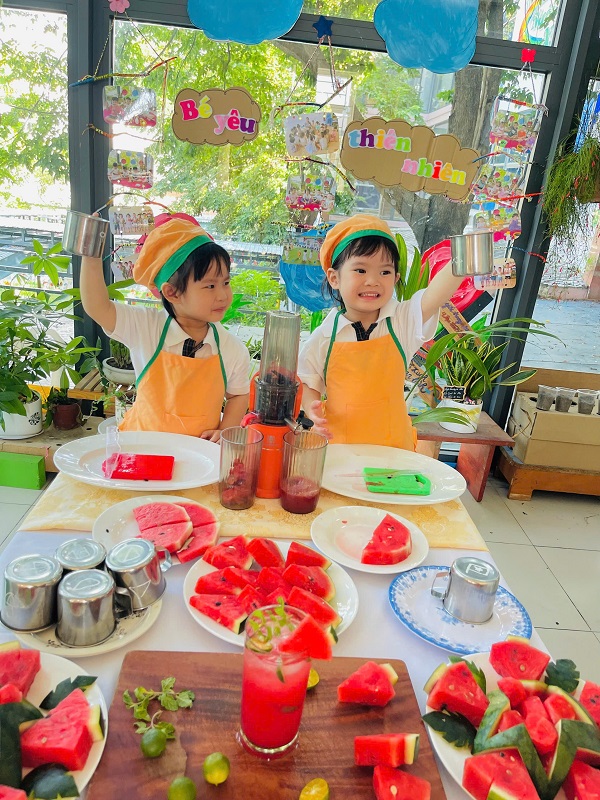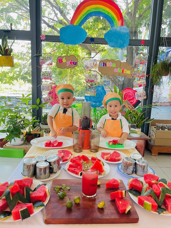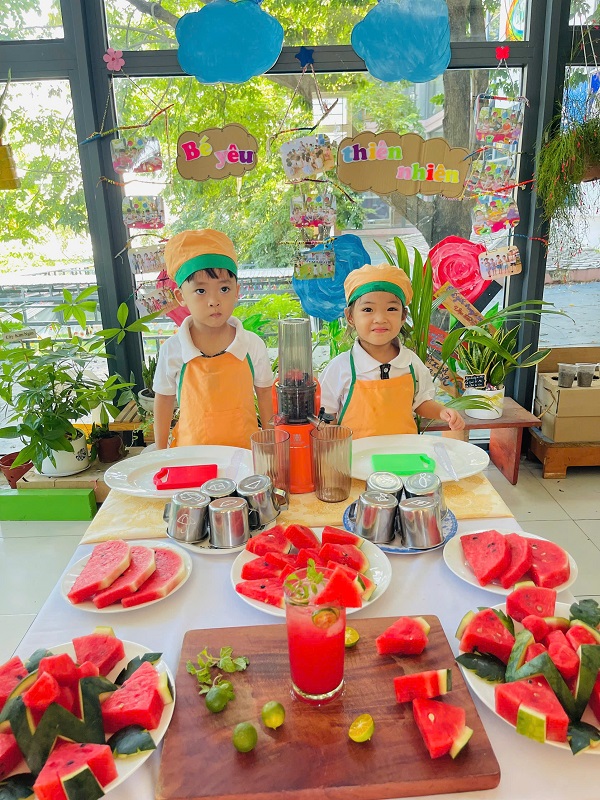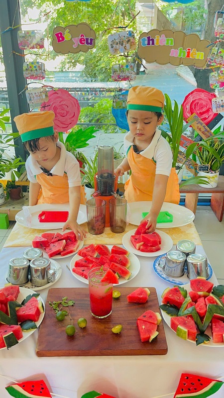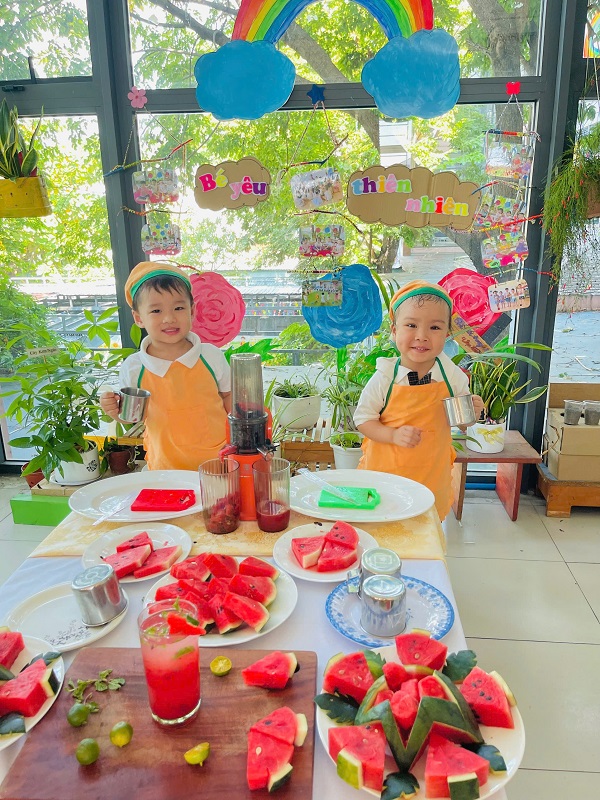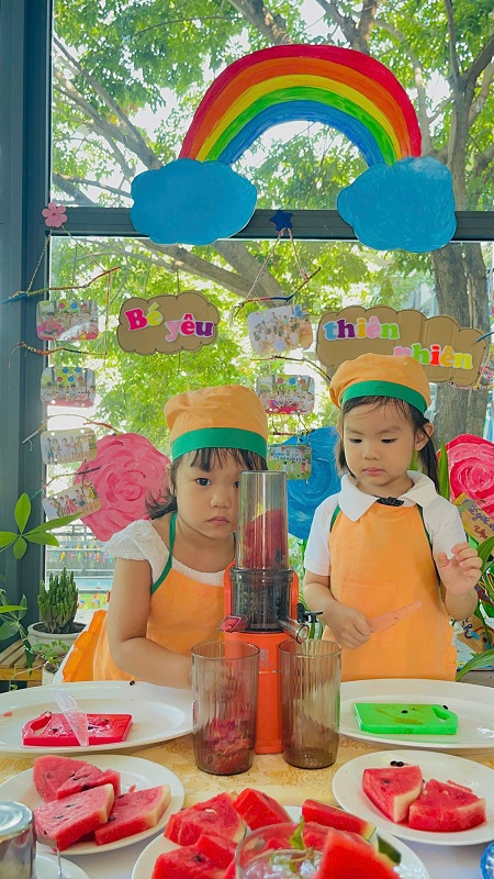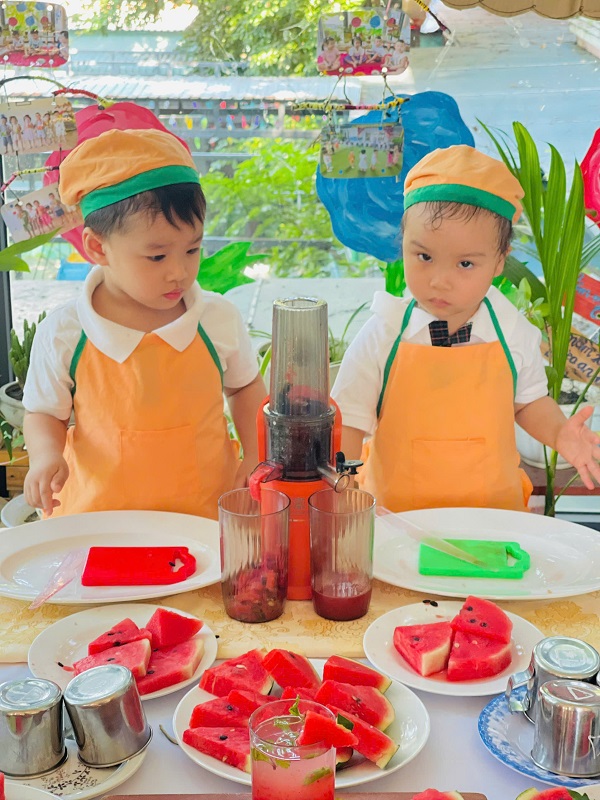 Ba mẹ cùng xem các con làm "Nước ép dưa hấu".