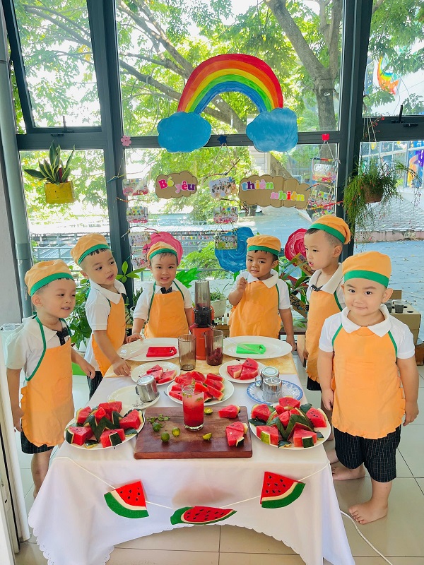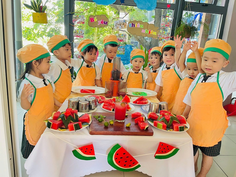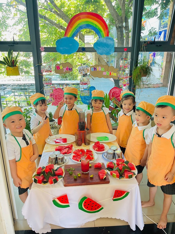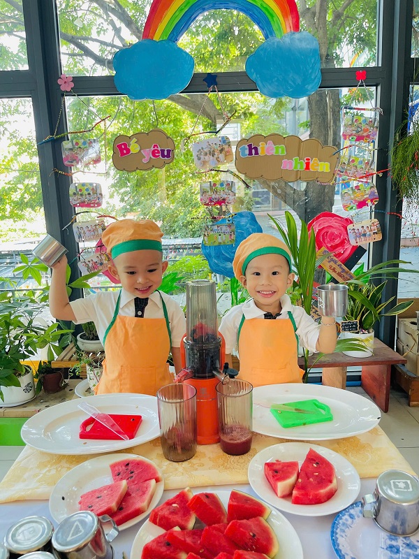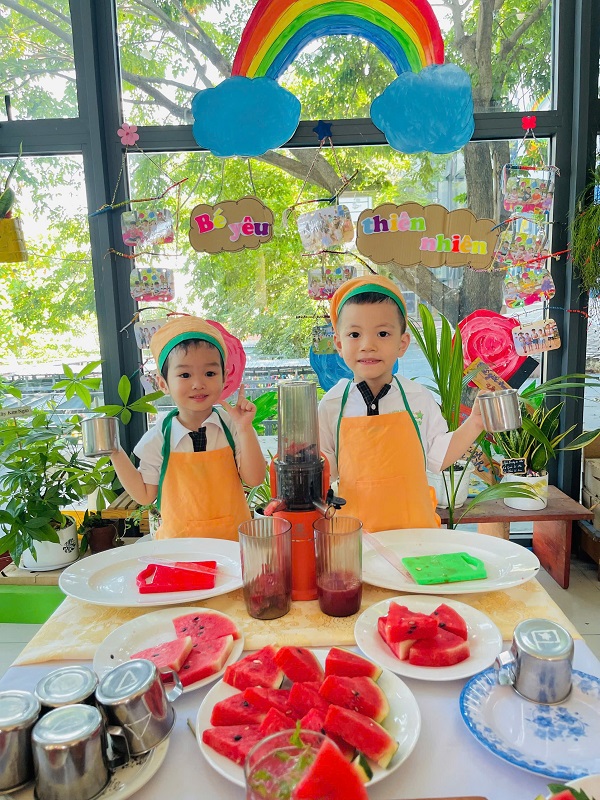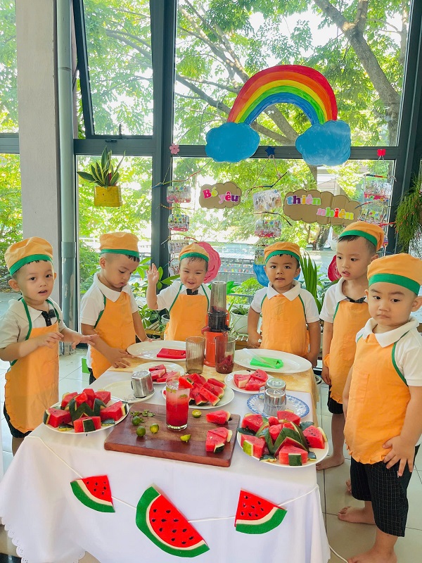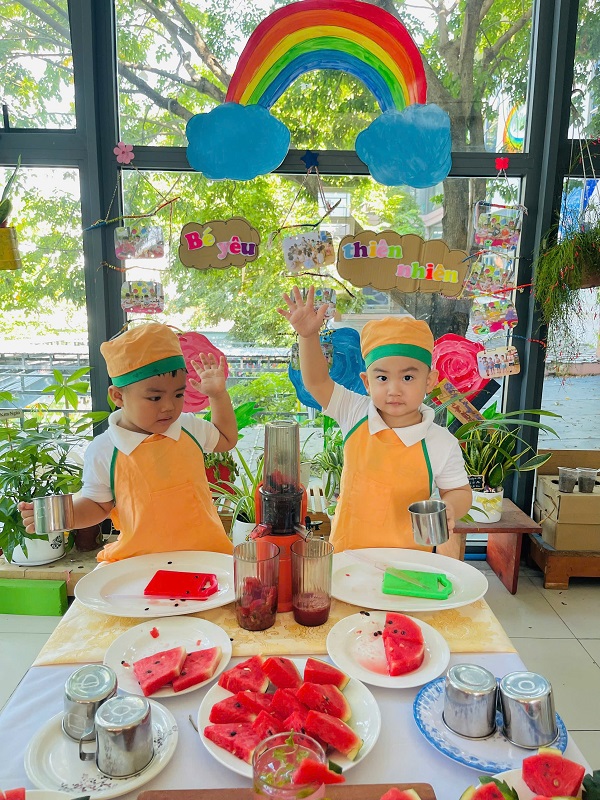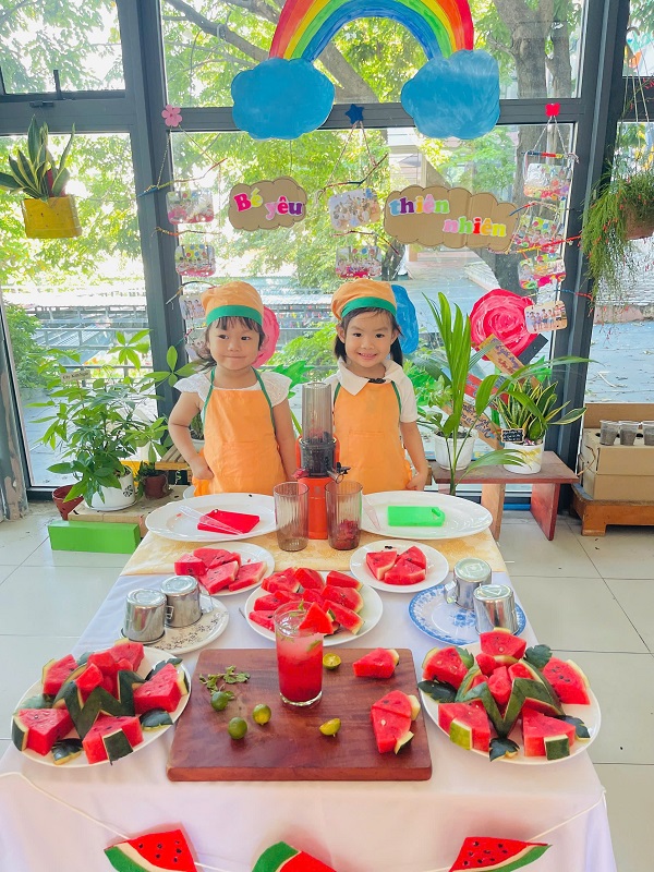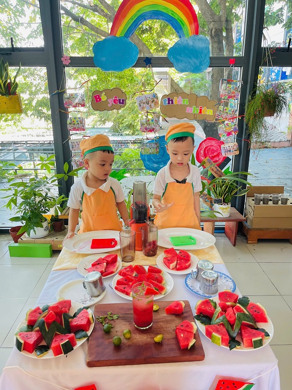 Ba mẹ cùng xem các con làm "Nước ép dưa hấu".