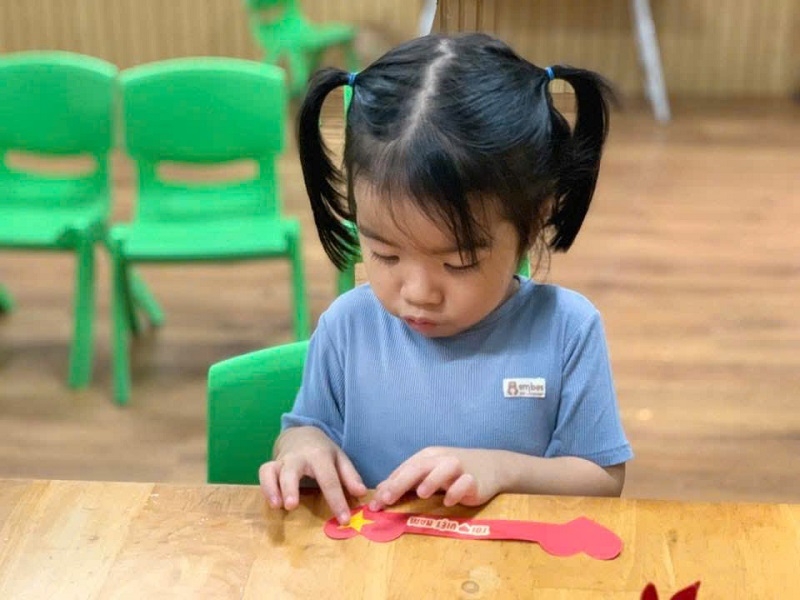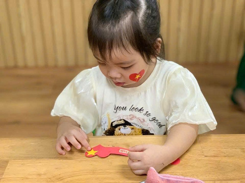 Hoạt động "Dán trang trí vòng tay hưởng ứng Kỷ niệm 80 năm ngày Quốc khánh 2/9
