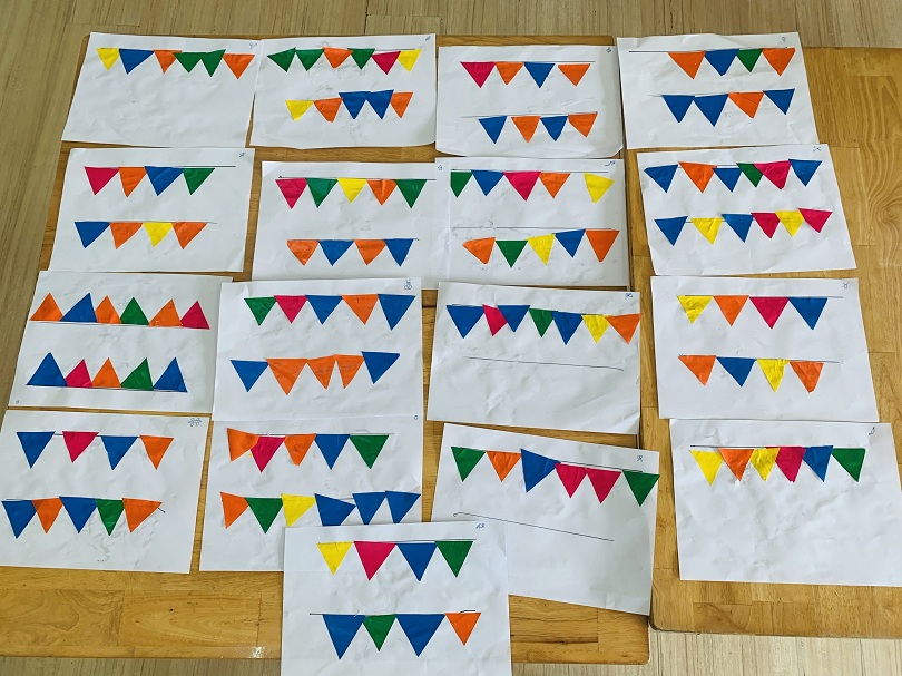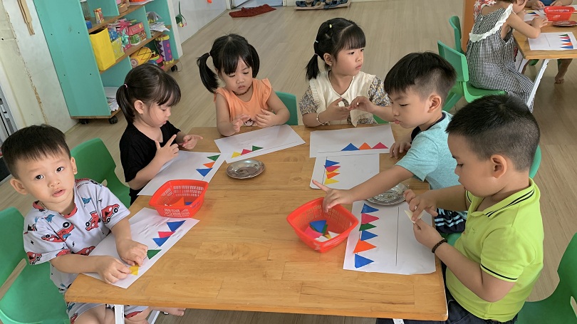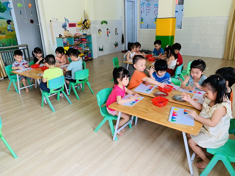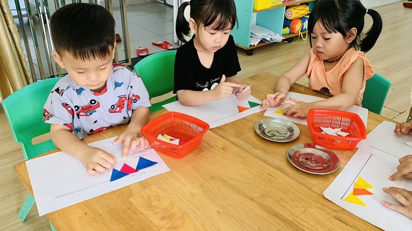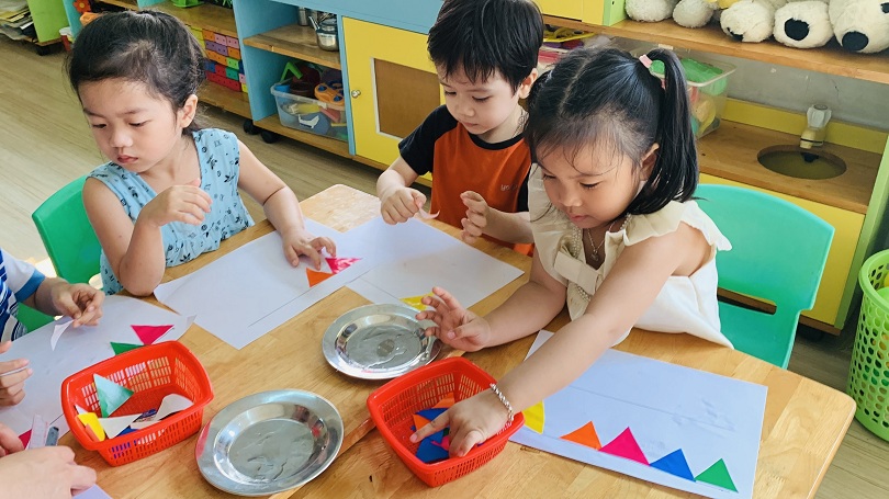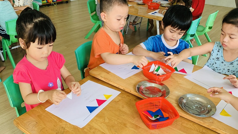 HOẠT ĐỘNG TẠO HÌNH CỦA CÁC BÉ LỚP MOON 1: BÉ DÁN DÂY CỜ