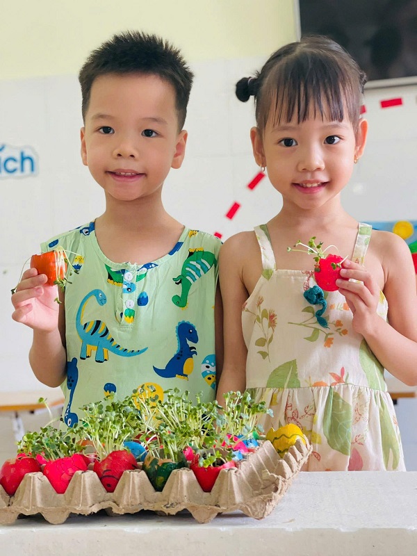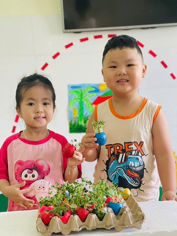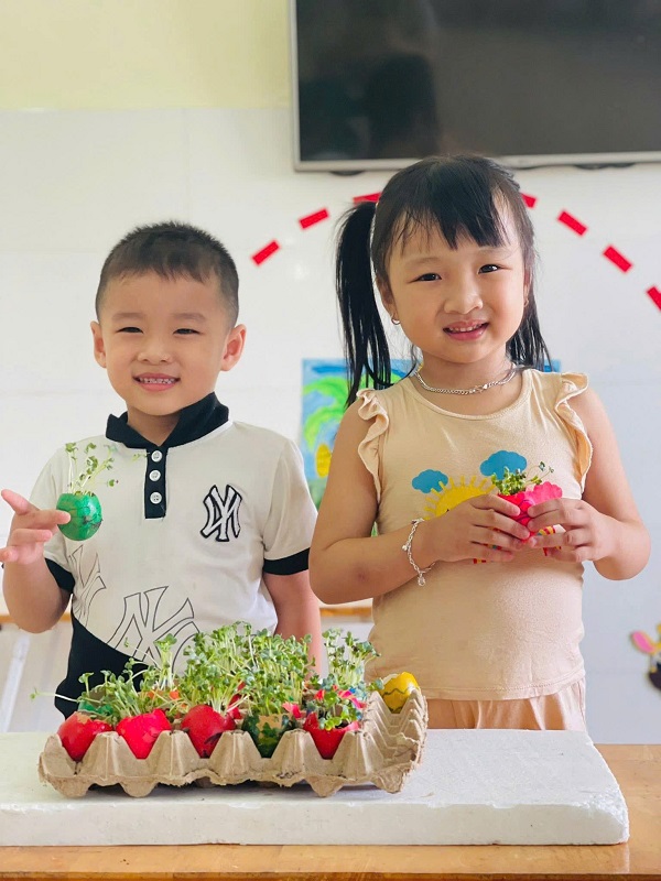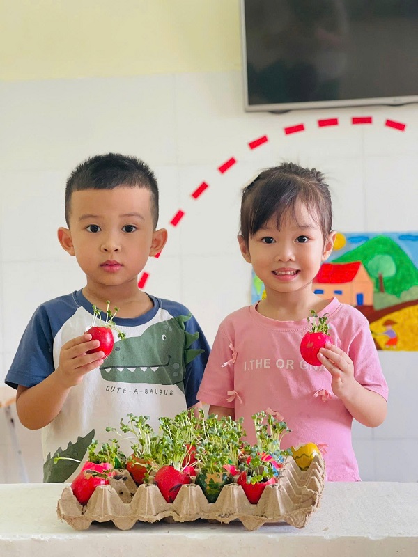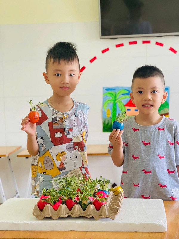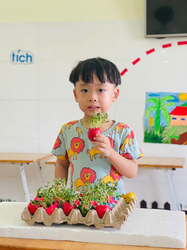 Được tự tay gieo trồng những hạt cải mầm và giờ đây những cây cải mầm đang vươn lên cao.