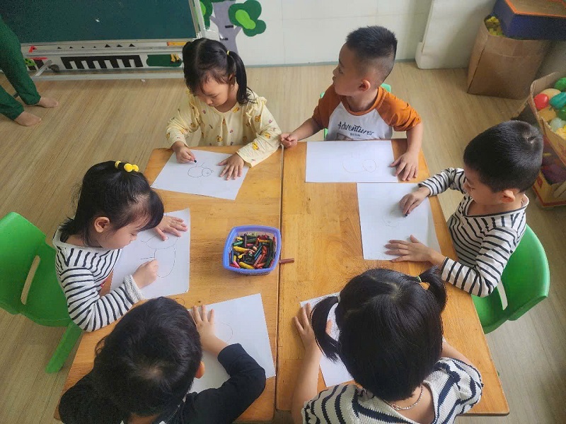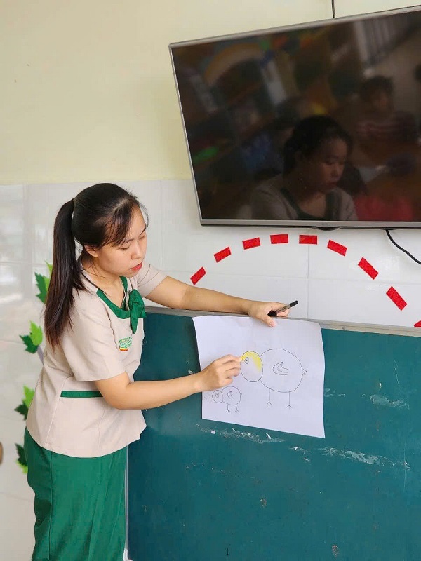 Các bạn lớp Nhỡ 2 học tạo gình: Vẽ chú gà con.Ba mẹ cùng xem một số hình ảnh của các con nhé!
