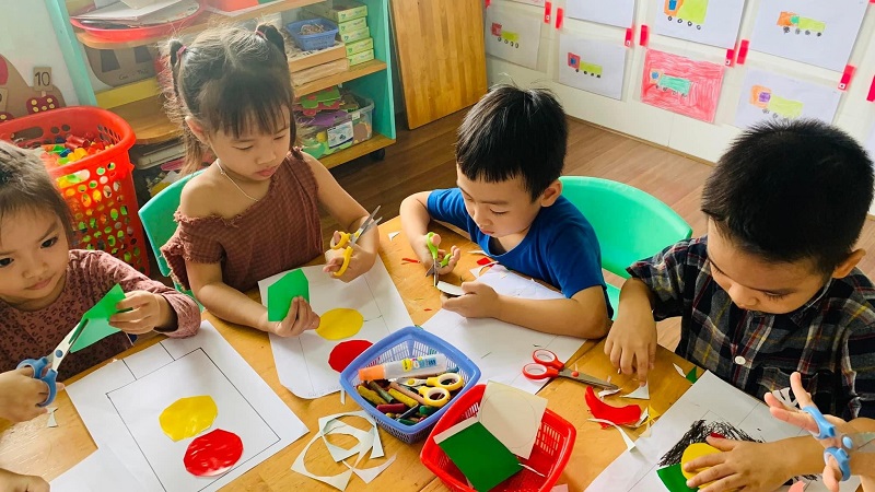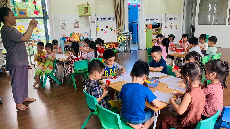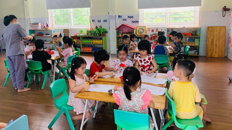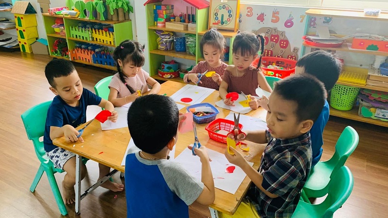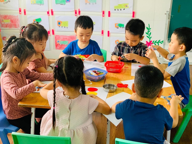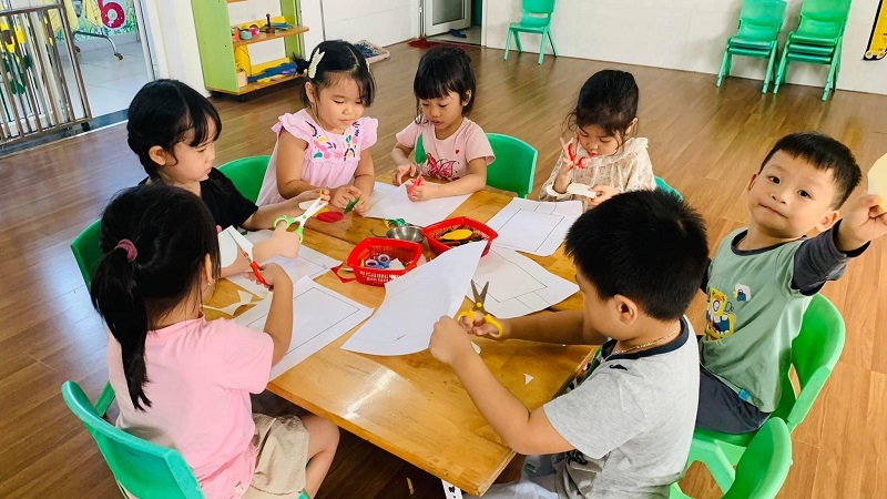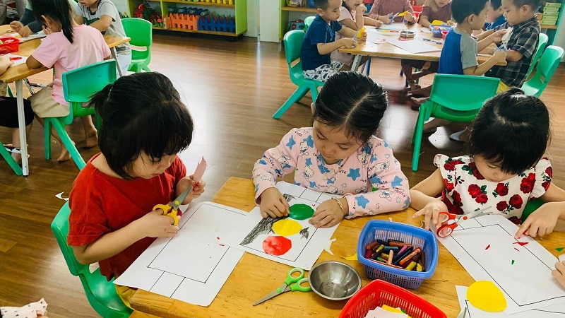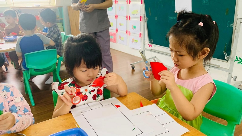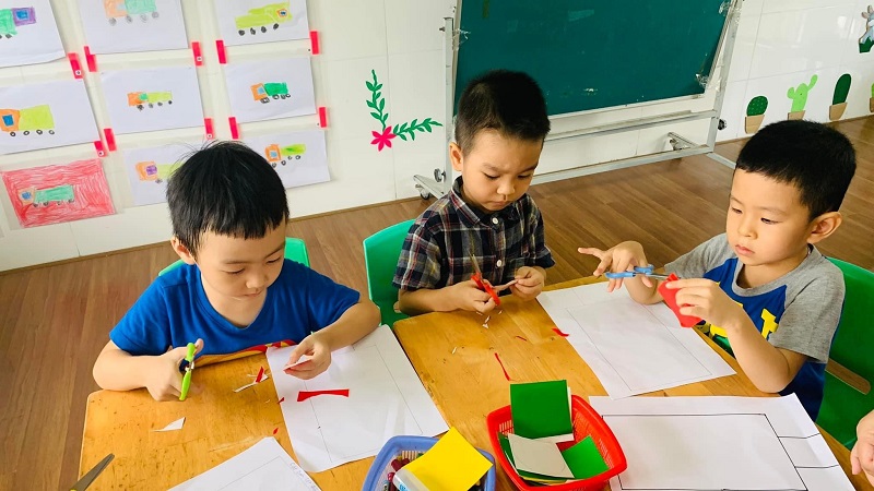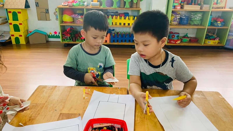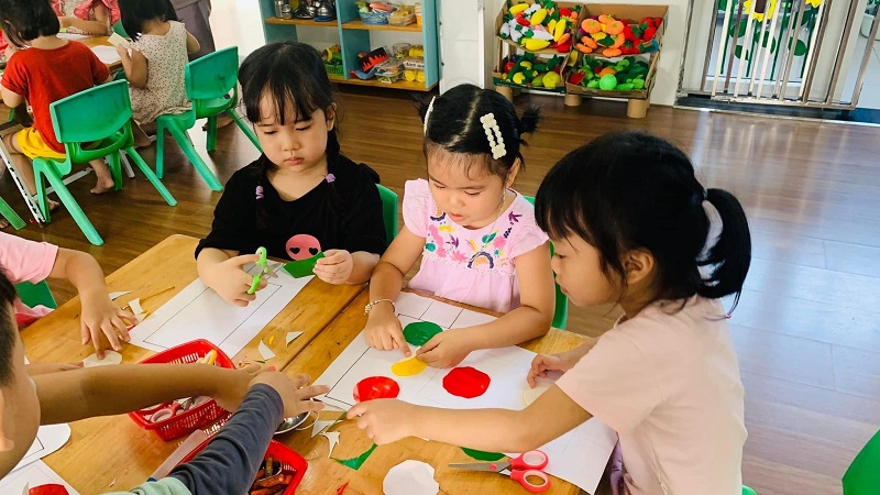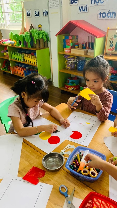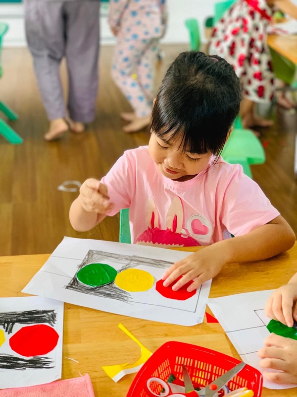 Sau đây là một số hình ảnh của các con qua hoạt động Hoạt động cắt dán đèn tín hiệu giao thông, ba mẹ cùng xem nhé!
