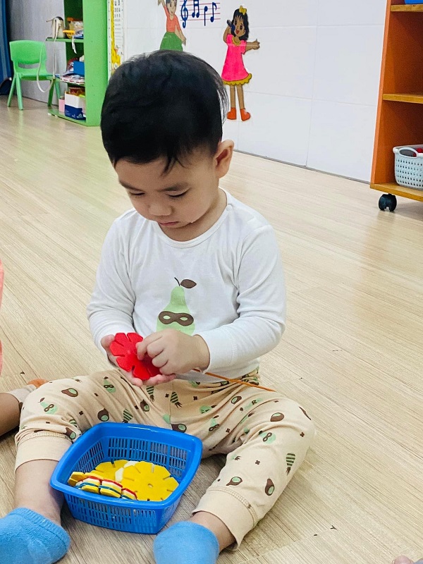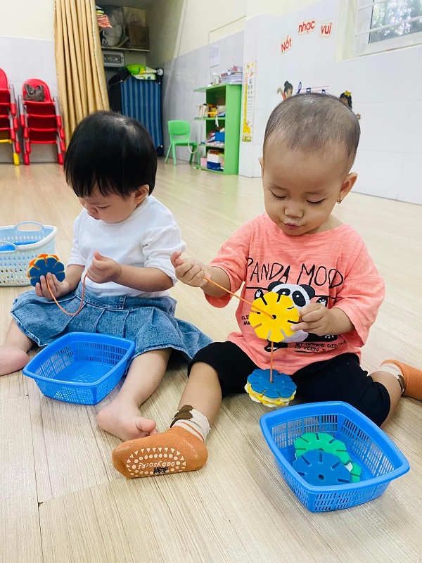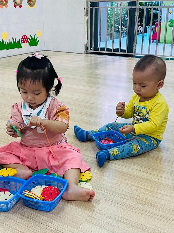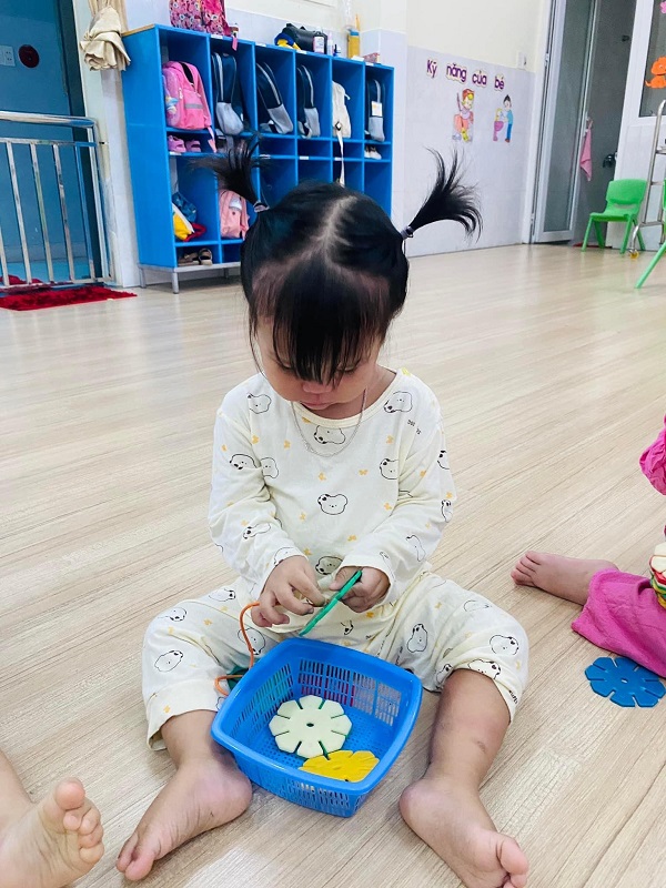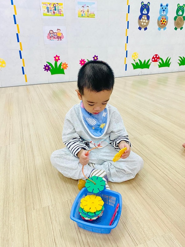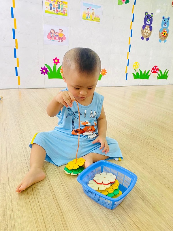 Các bé lớp Trẻ 2 tập xâu hoa. Các ba mẹ cùng xem một số hình ảnh của các con nhé