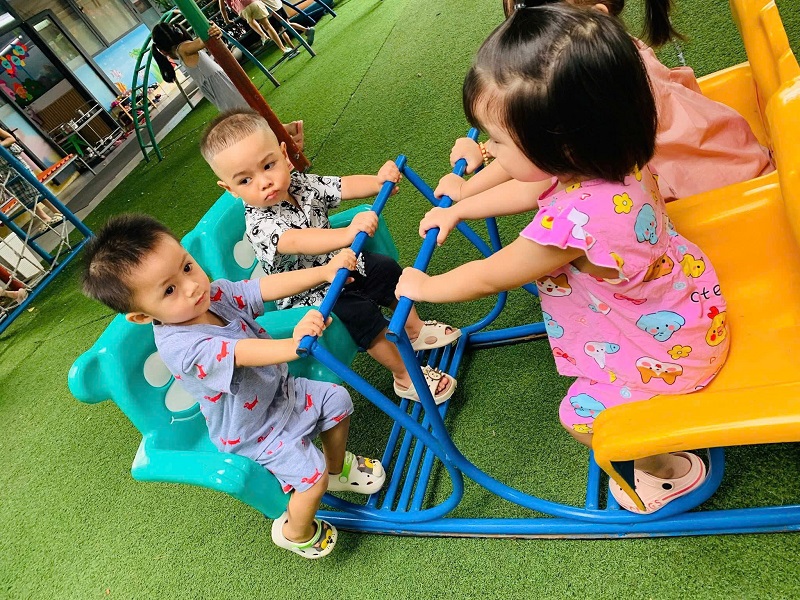 Các bé Nhóm trẻ 2 vui chơi tại sân trường