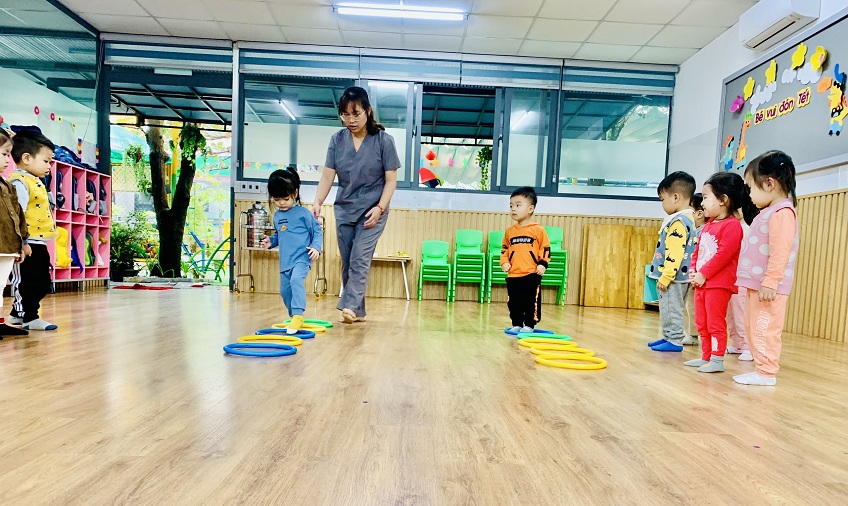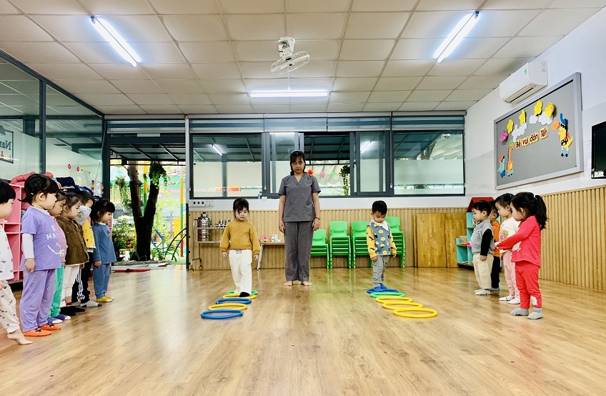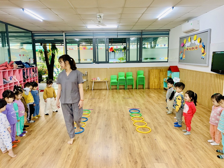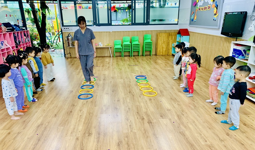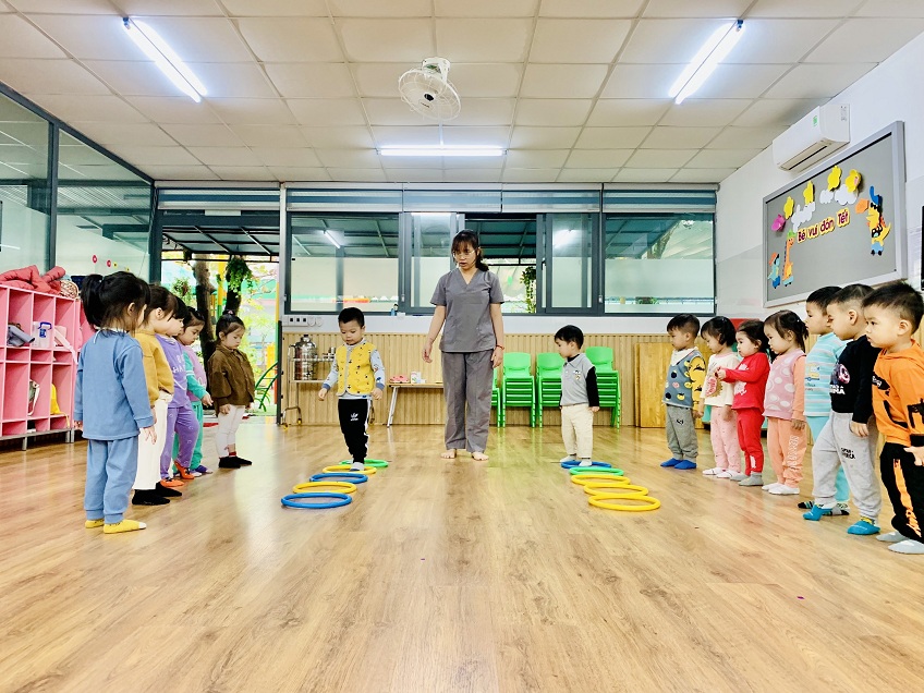 Hoạt động GD thế chất có ý nghĩa bảo vệ, tăng cường sức khỏe, có tác động tích cực vào hoạt động thần kinh - tâm lý của trẻ, tăng cường quá trình trao đổi chất và tuần hoàn trong cơ thể, giúp các khớp dây chằng được mềm dẻo, linh hoạt. Ở mỗi độ tuổi trẻ có những bài tập riêng biệt phù hợp để trẻ được vận động với độ tuổi. Nắm được đặc điểm tâm lý của trẻ, các cô giáo lớp Star 1 đã tổ chức cho trẻ tham gia các bài tập phù hợp với độ tuổi, mục tiêu yêu cầu đưa ra.