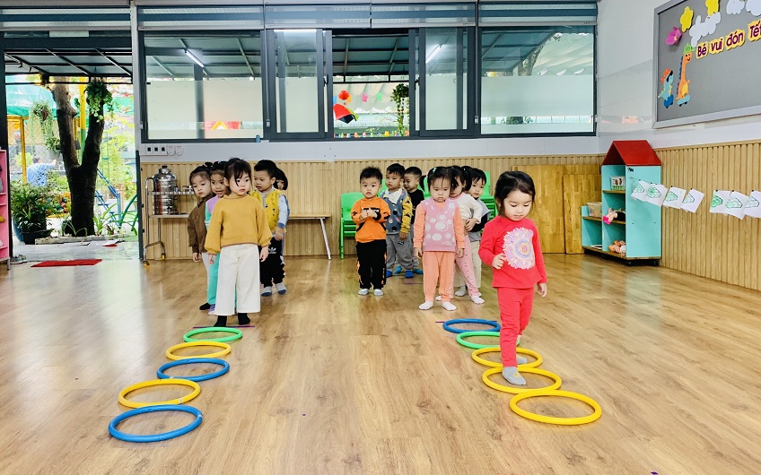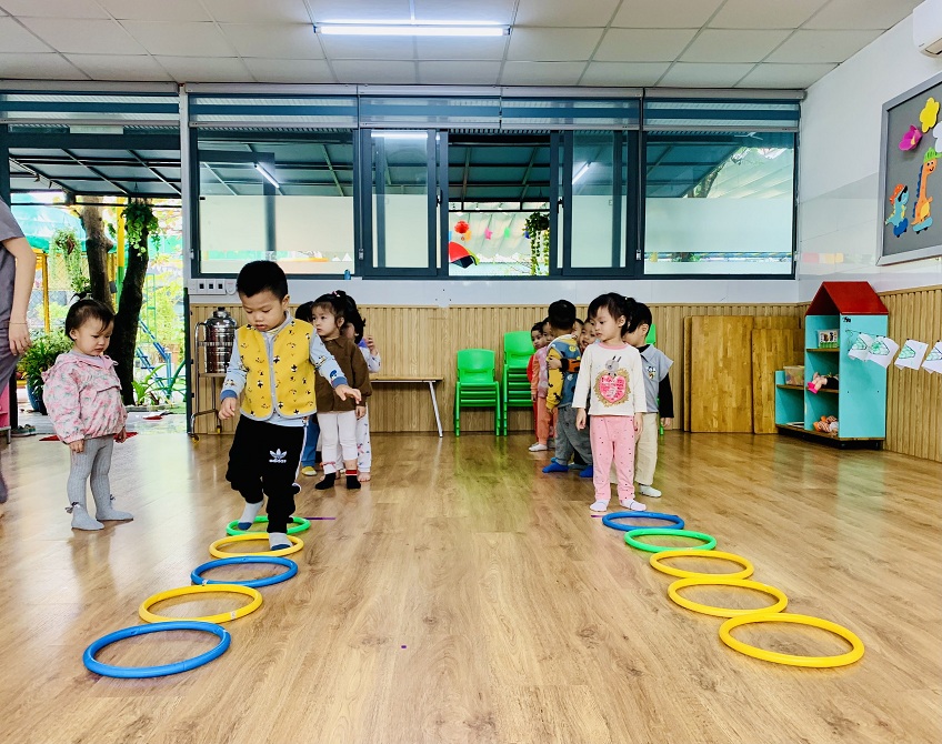 Sau đây là một số hình ảnh hoạt động đi bước vào các ô của các bé nhà trẻ Star 1 (24 – 36 tháng) của trường MN Ngôi Sao Xanh: