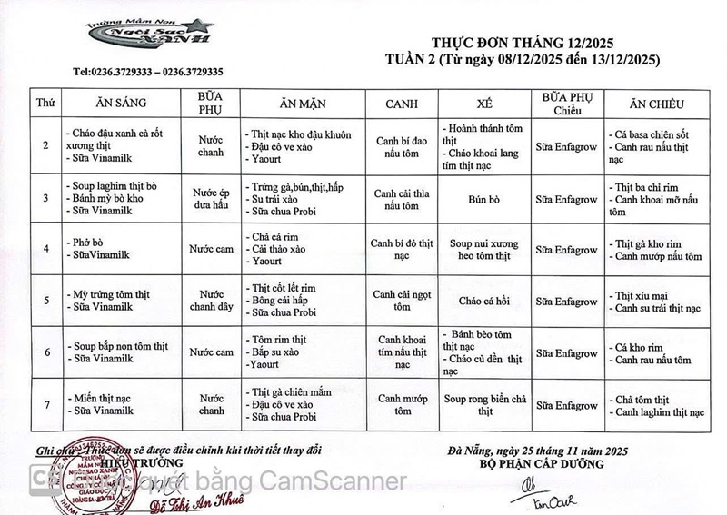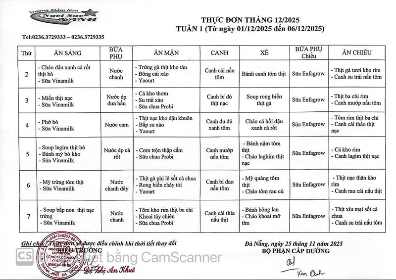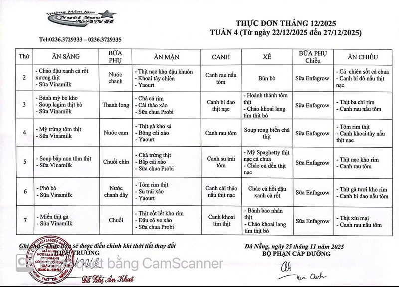 THỰC ĐƠN THÁNG 12 NĂM 2025 CỦA CÁC BÉ