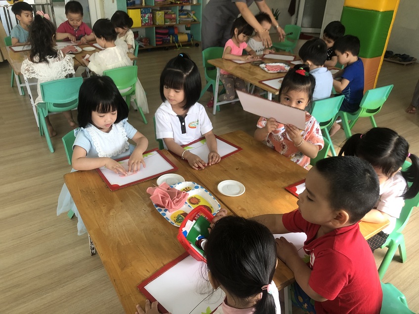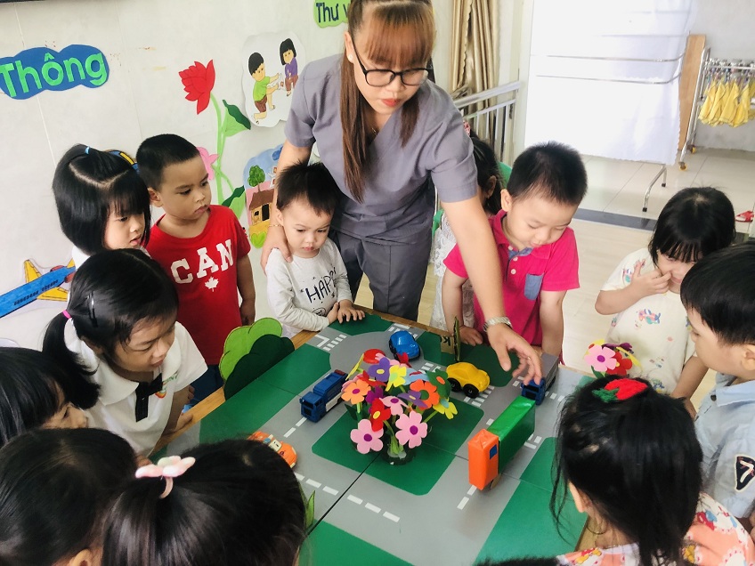 Với giờ hoạt động tạo hình không chỉ đơn giản là dạy trẻ vẽ, nặn, cắt, xé dán,... mà trọng tâm vẫn là khơi gợi sự hứng thú ở trẻ, giúp trẻ ham thích hoạt động đồng thời sáng tạo ra những sản phẩm phong phú và đầy màu sắc theo ánh nhìn của tuổi thơ. Hiểu được điều đó, các cô giáo đã tổ chức hoạt động dán xe ô tô tải cho các bé. Hoạt động tạo hình mang thật nhiều ý nghĩa tưởng chừng như đơn giản nhưng mang lại rất nhiều điều bổ ích.