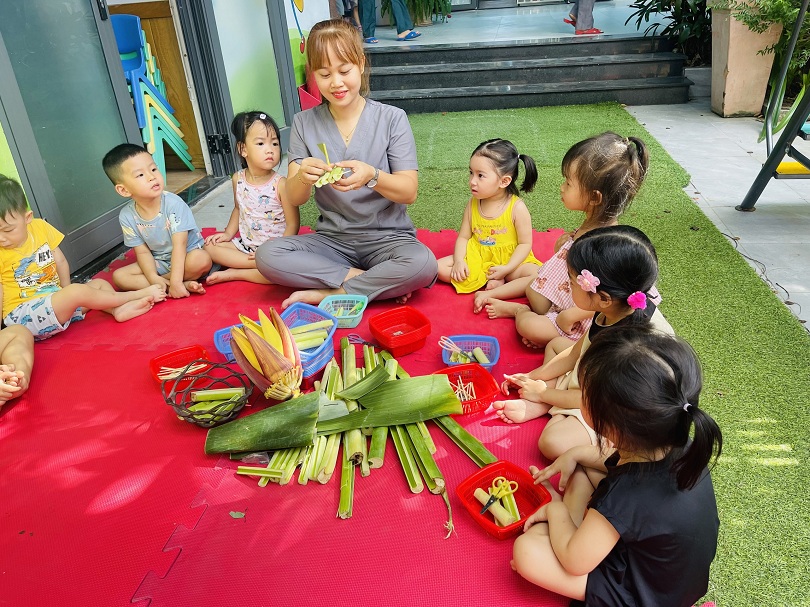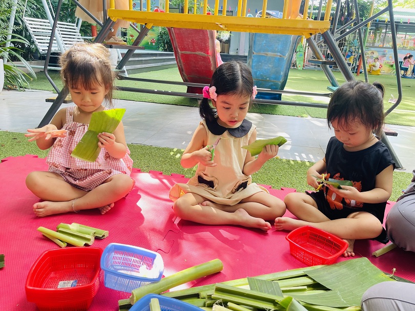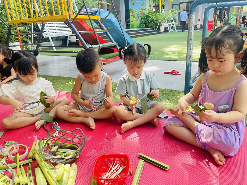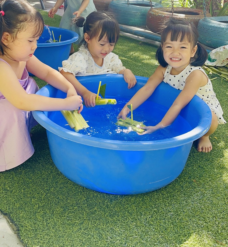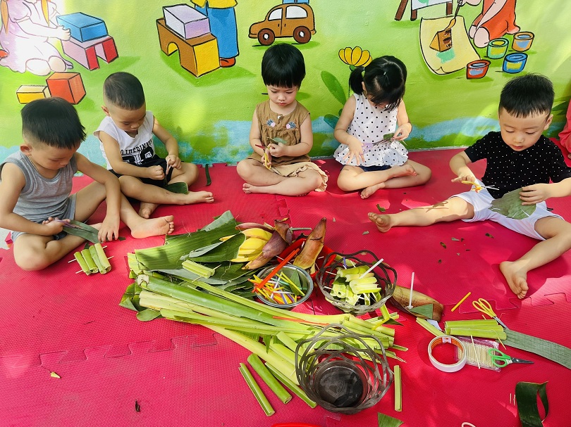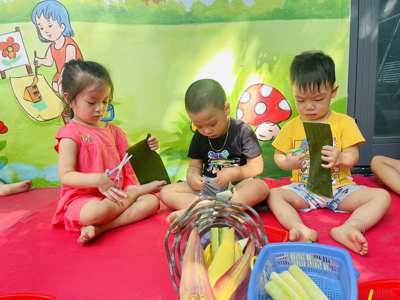 Trẻ mầm non luôn có nhu cầu với đồ chơi mới, trẻ thích được tự tay tạo ra đồ chơi cho mình. Hôm nay các bạn lớp Bé1 đã cùng cô thiết kế đồ chơi từ các nguyên liệu: Lá chuối,bẹ chuối,tăm tre,ống hút,… Tưởng chừng các bạn sẽ gặp khó khăn trong việc thực hiện hoạt động này, nhưng qua sự hướng dẫn và trợ giúp của cô giáo, các bé đều rất khéo léo tạo ra được những chiếc thuyền - bè thật xinh xắn. Vẻ mặt vui tươi, niềm thích thú được thể hiện trên khuôn mặt của các bé khi thả được chiếc thuyền của mình trôi trên mặt nước,điều đó khiến cho các cô thấy thật hạnh phúc và ý nghĩa. Chỉ bằng vật dụng, nguyên vật liệu đơn giản mà các bé có thể tạo được ra đồ chơi cho riêng mình rồi. Ba mẹ hãy cùng các bé tận dụng những nguyên liệu sẵn có trong vườn, sử dụng để bé được thỏa sức phát minh sáng tạo ra những đồ chơi đáng yêu và dễ thương.
