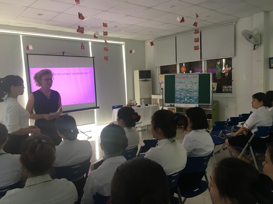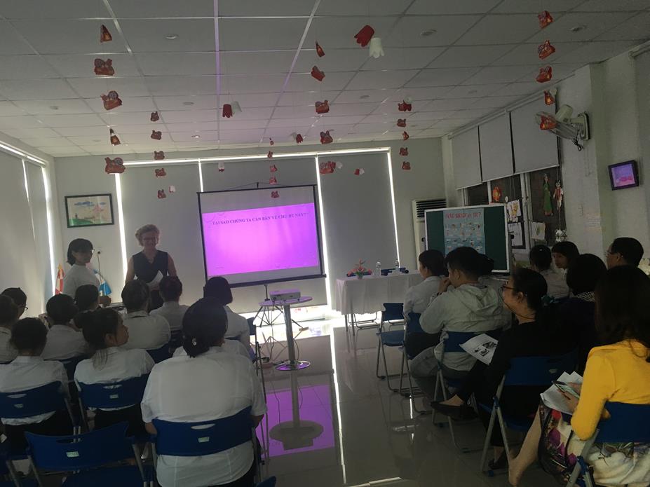 Thứ Ba ngày 28/3/2017 trường MN Ngôi Sao Xanh có tổ chức chương trình Hội thảo về "Văn hóa Ẩm Thực và Dinh dưỡng cho trẻ mầm non" được chủ trì bởi cô Morten Bodil Pristed là Giáo sư - Tiến sĩ ngành giáo dục MN đến từ trường Đại học UCC Đan Mạch.