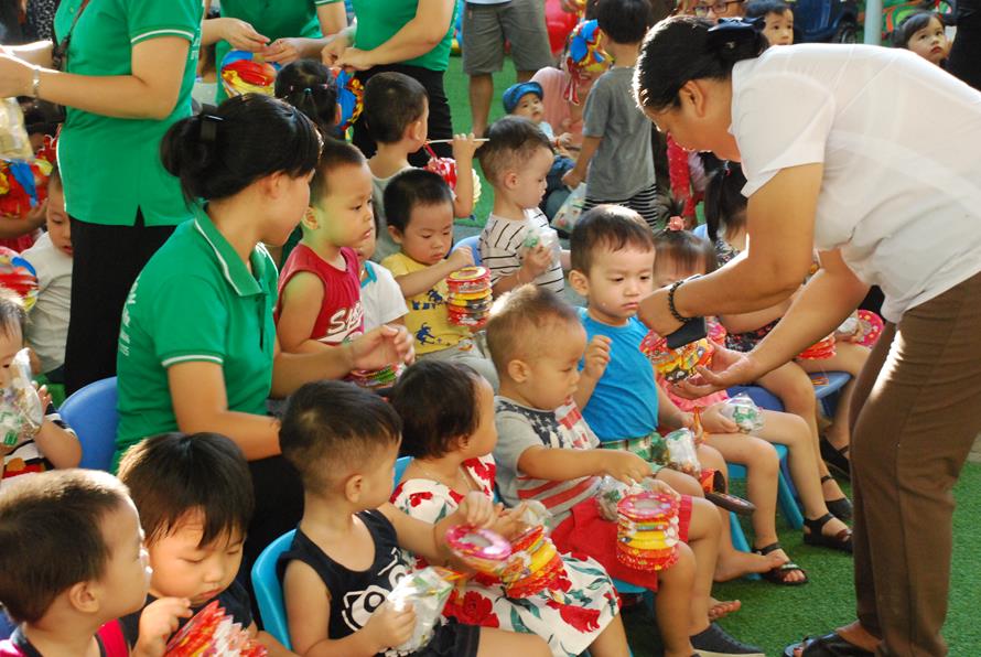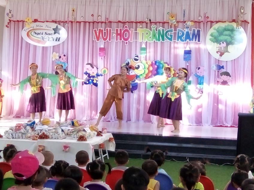 (Phá cỗ trung thu thôi nào các bé Ngôi Sao Xanh ơi)