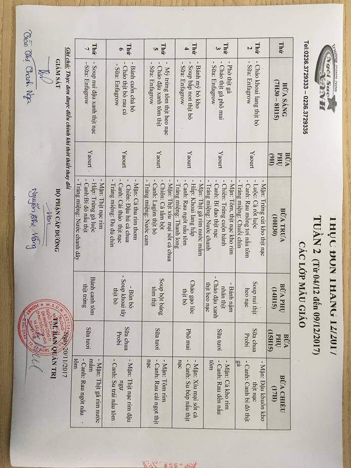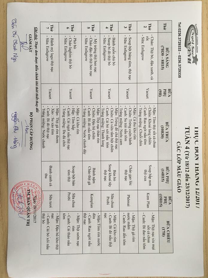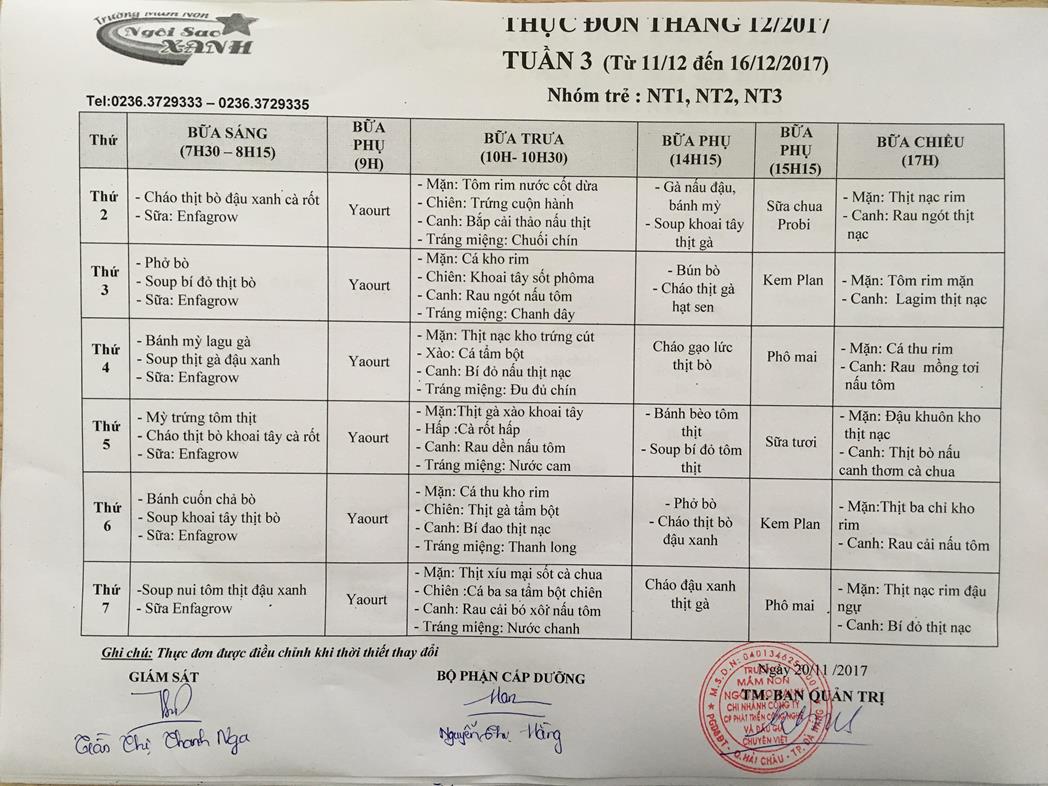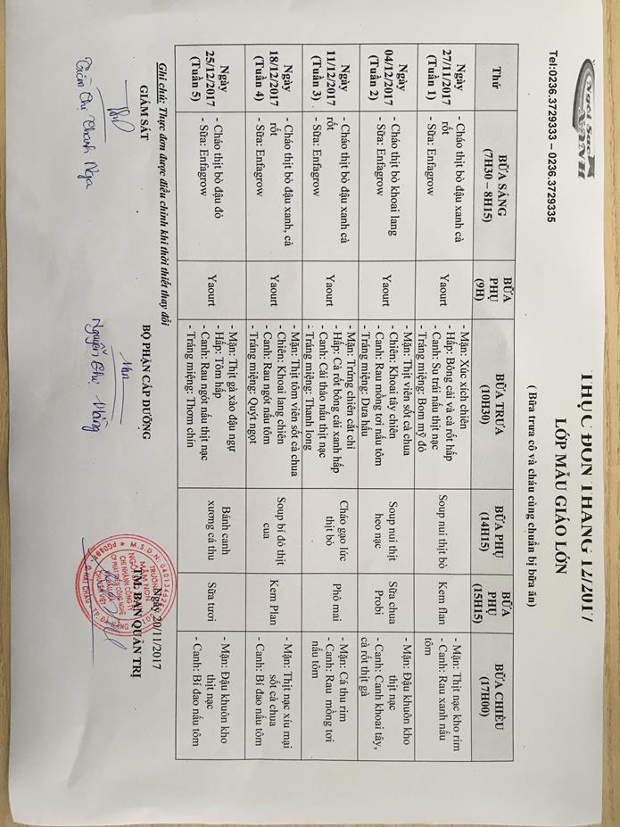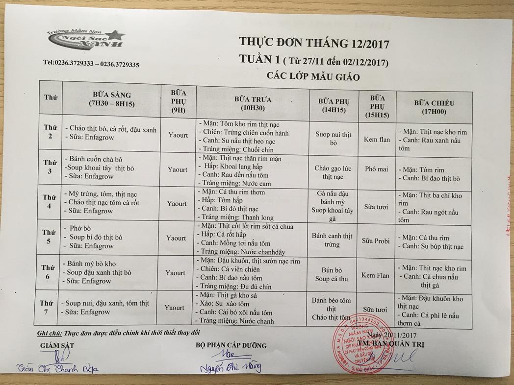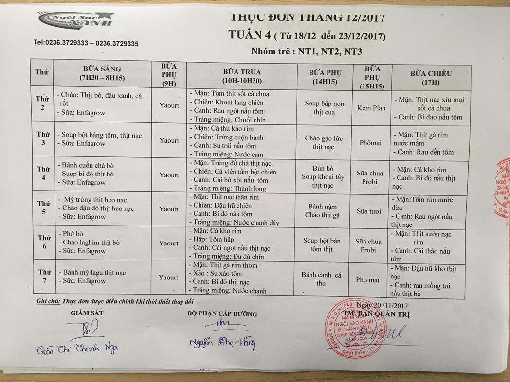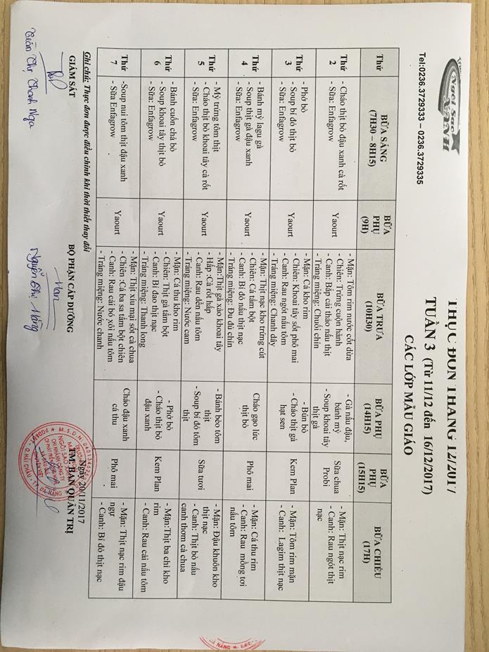 THỰC ĐƠN THÁNG 12 NĂM 2017 CỦA CÁC BÉ