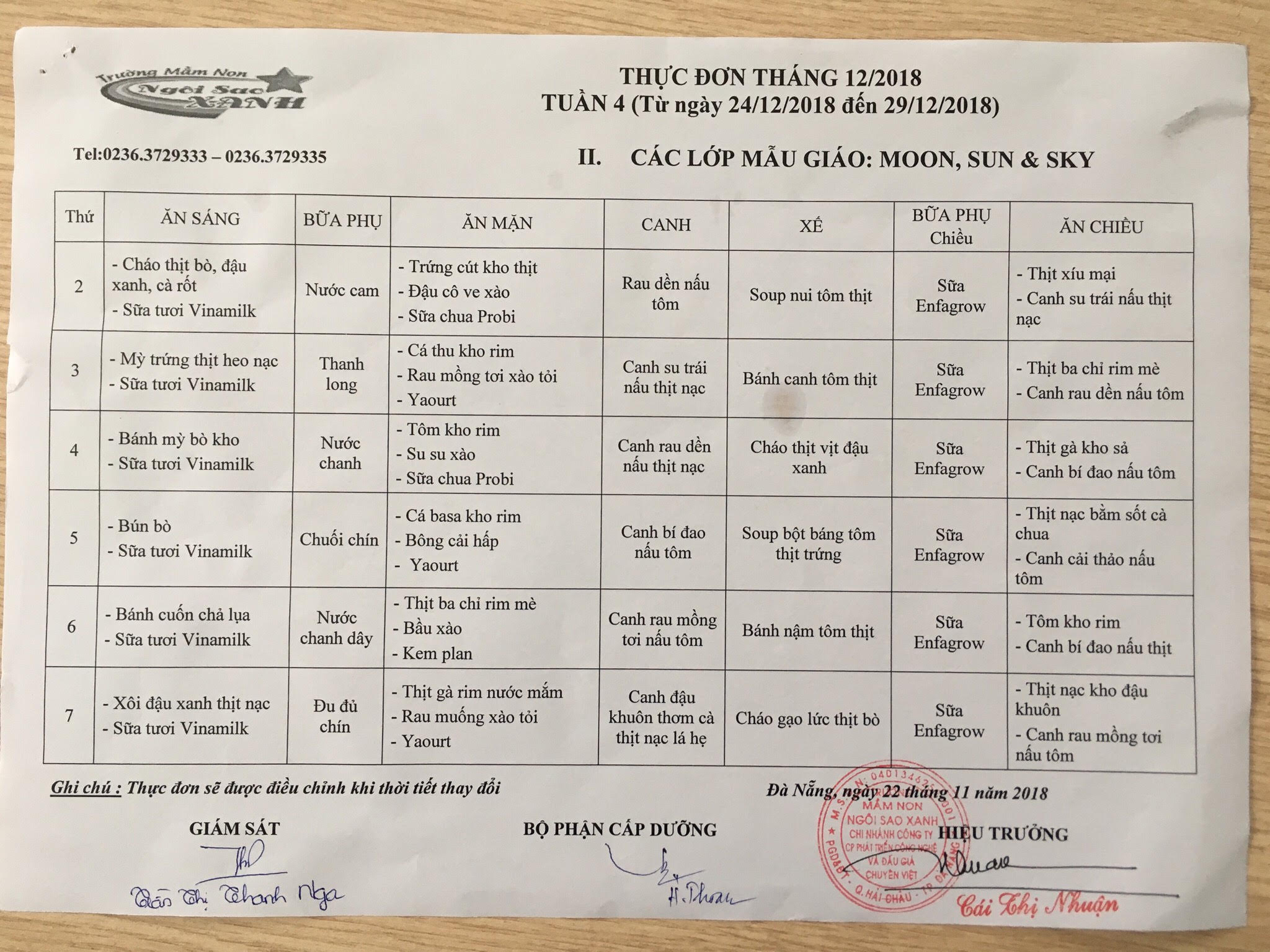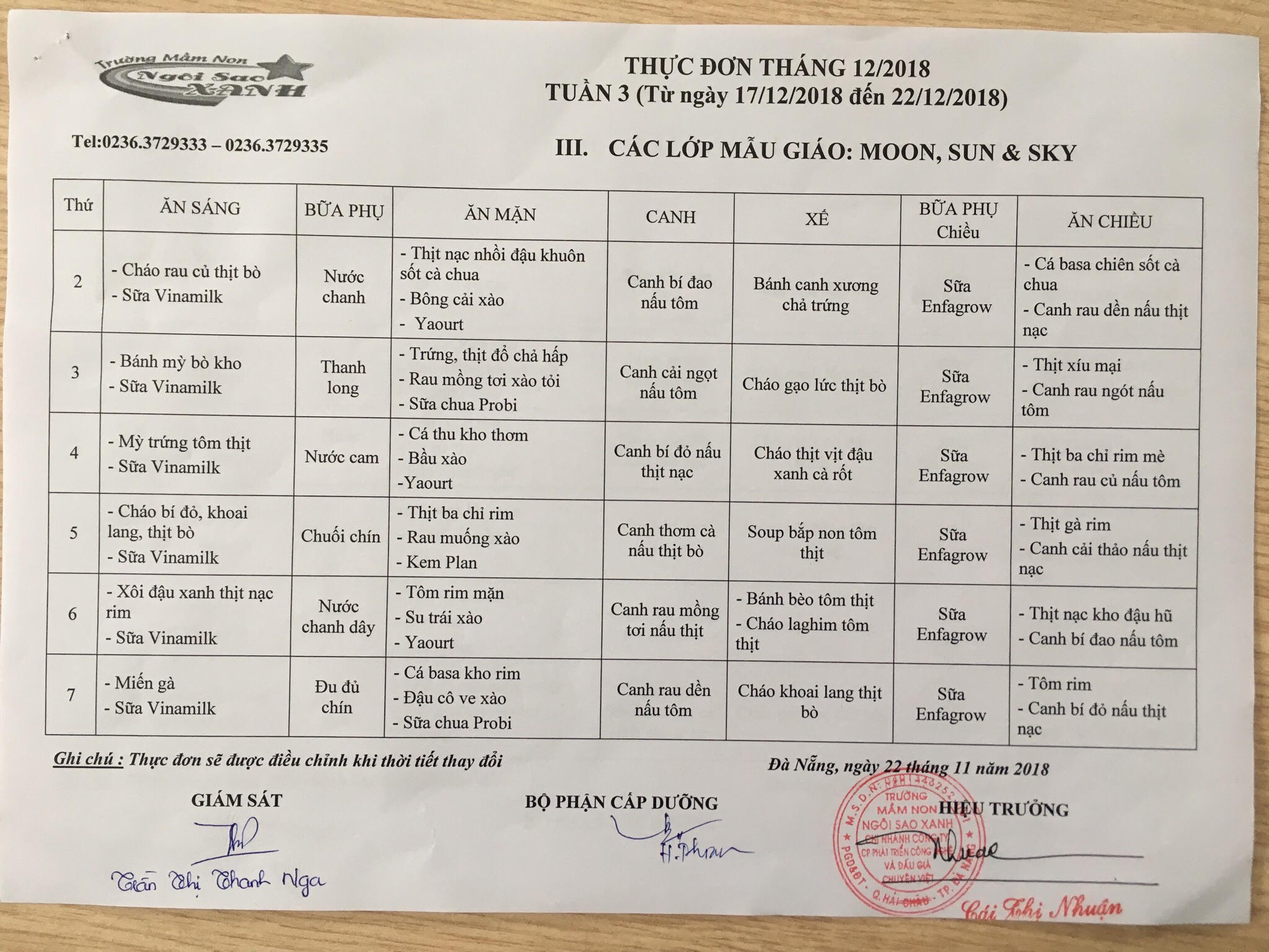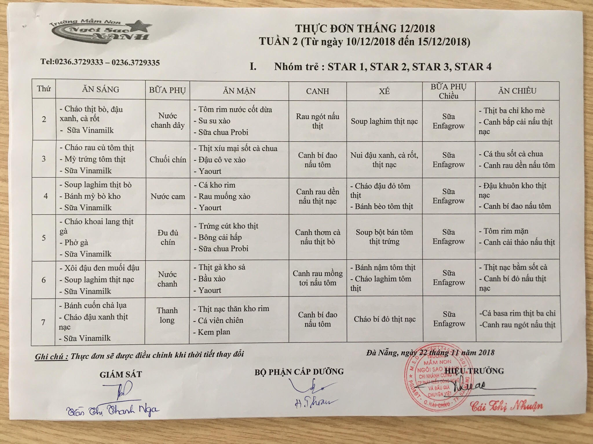 THỰC ĐƠN THÁNG 12 NĂM 2018 CỦA CÁC BÉ