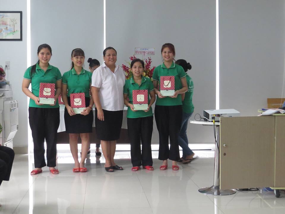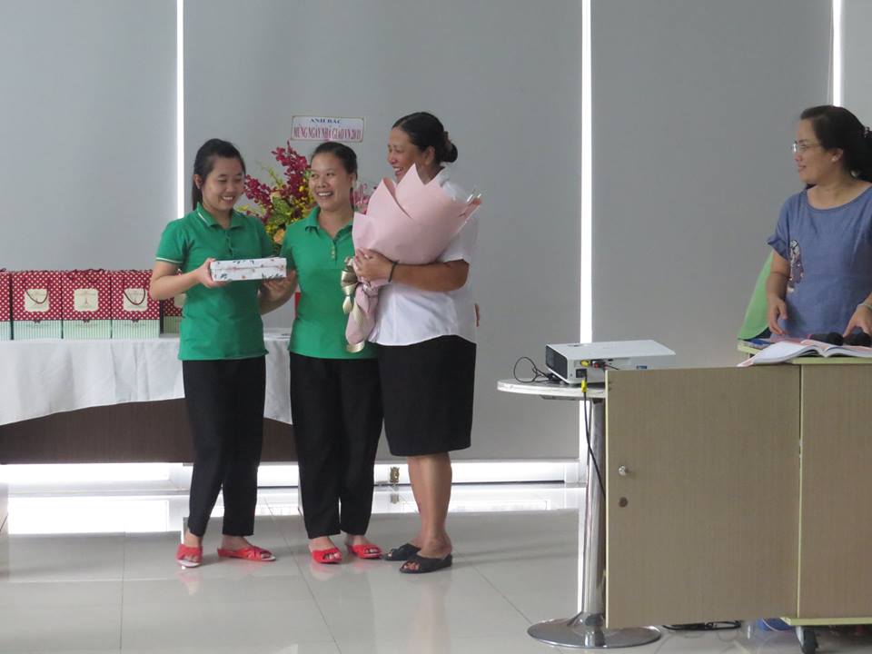 Cô Khuê tặng quà cho bộ phận văn phòng nhân ngày 20/11