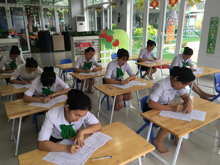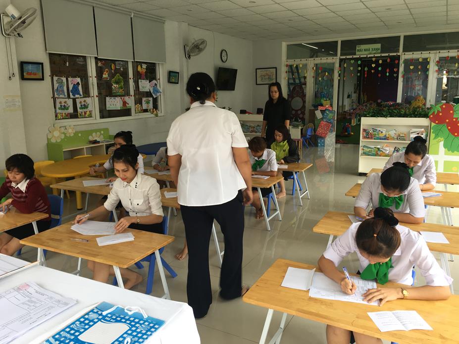 Sau những buổi tập huấn bổ sung kiến thức trau dồi chuyên môn về giáo dục mầm non, hôm nay thứ 3 ngày 29/11/2016 Trường mầm non Ngôi Sao Xanh đã tổ chức kiểm tra nghiệp vụ chuyên môn "Giáo dục lấy trẻ làm trung tâm" dành cho giáo viên. Mục đích của đợt kiểm tra này giúp cho giáo viên ôn lại những kiến thức cơ bản trong việc giảng dạy tạo cơ hội cho trẻ được học tập, vui chơi nhằm phát triển toàn diện (thể chất,trí tuệ, tâm hồn, khả năng giao tiếp xã hội và thẩm mỹ)