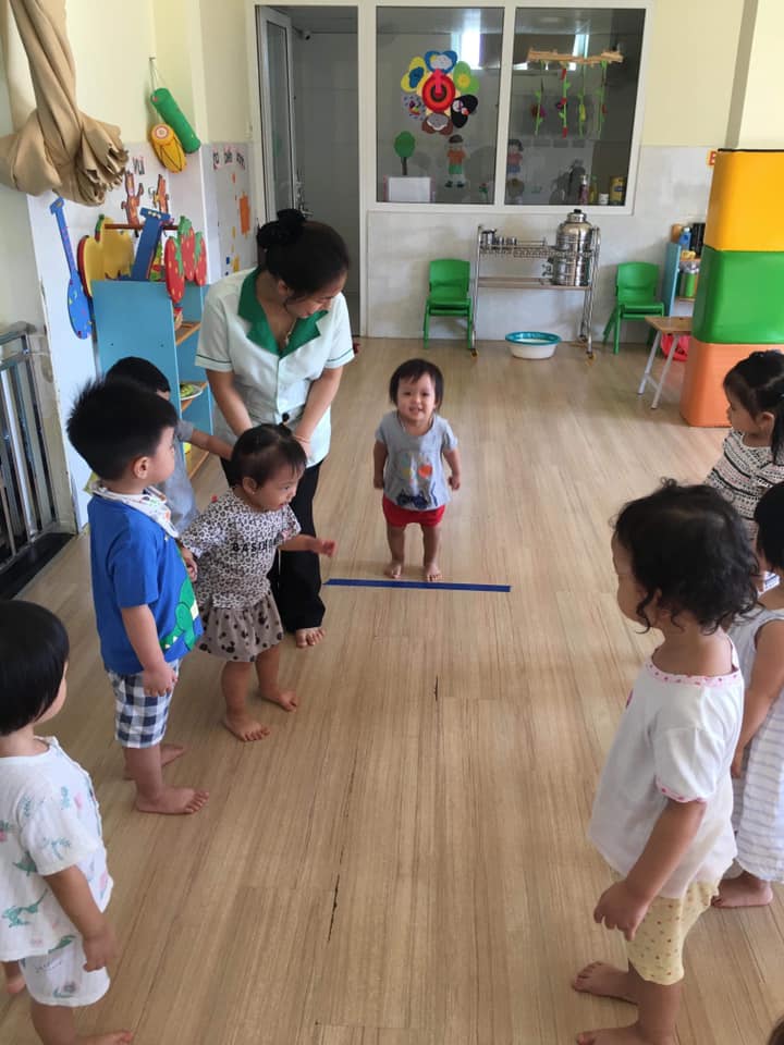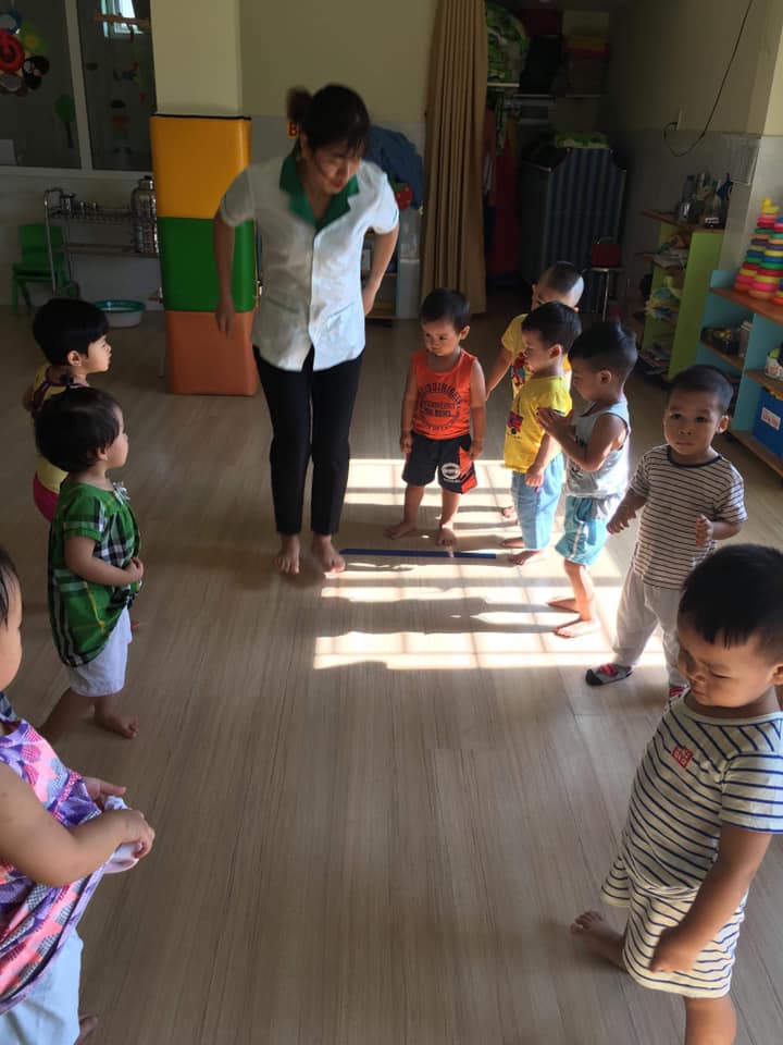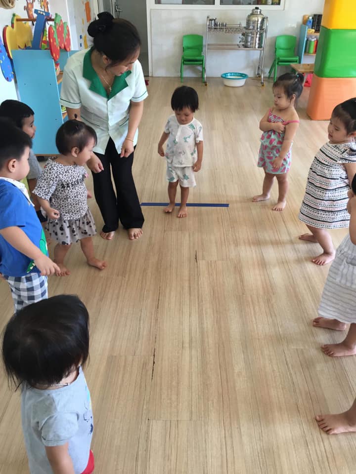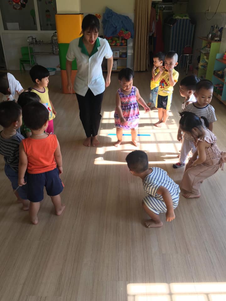 Các bé lớp Star 3 được cô giáo hướng dẫn tập bật về phía trước