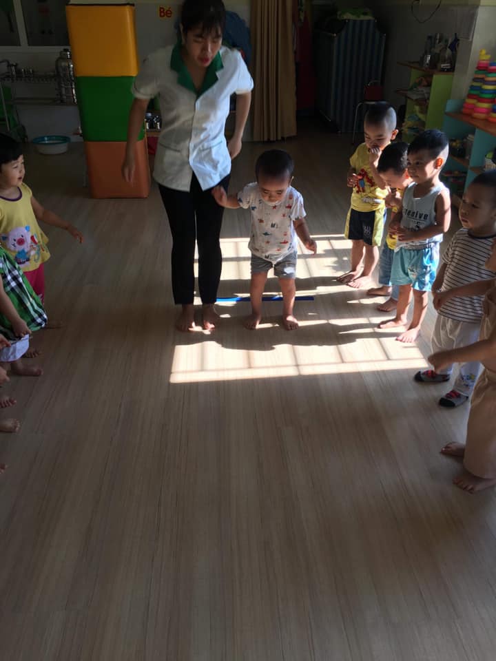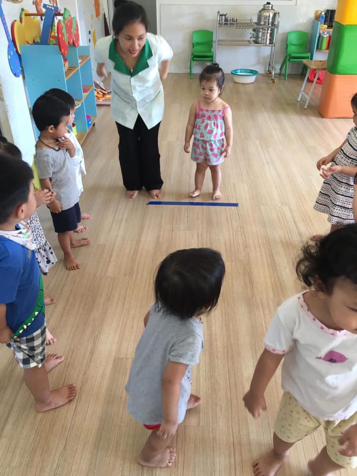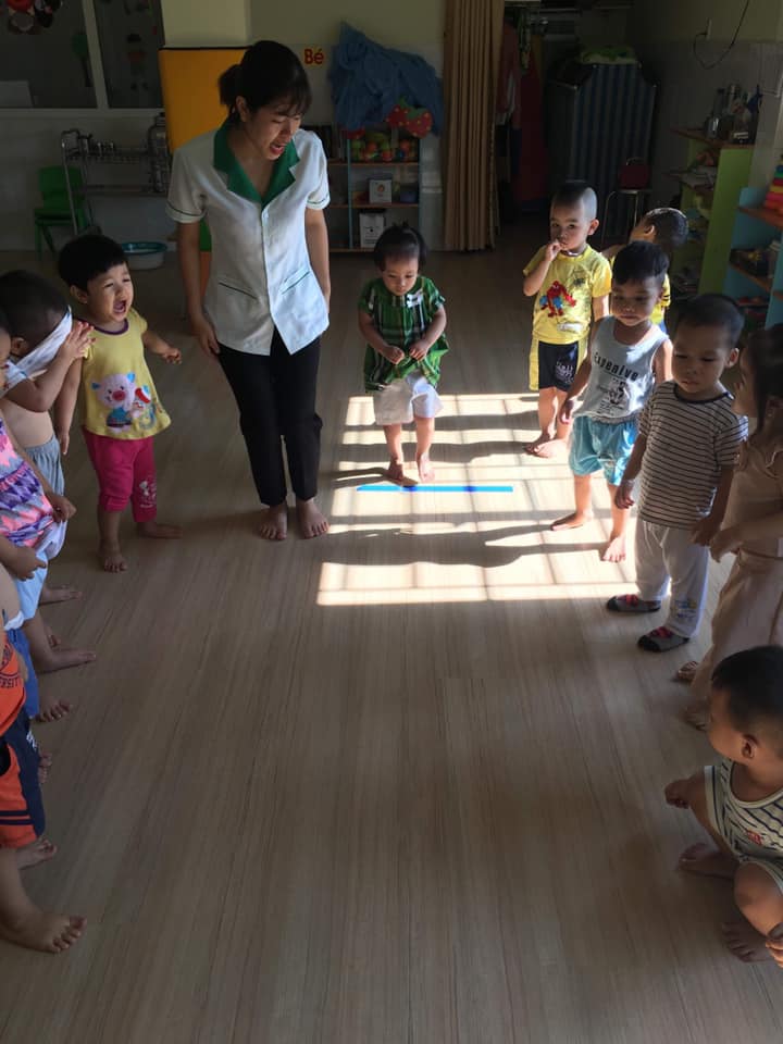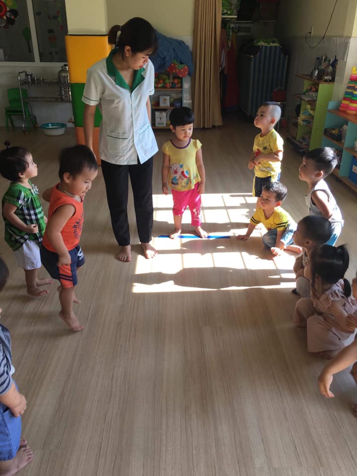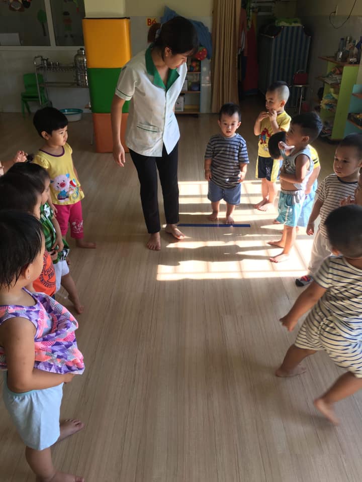 Các bé lớp Star 3 được cô giáo hướng dẫn tập bật về phía trước