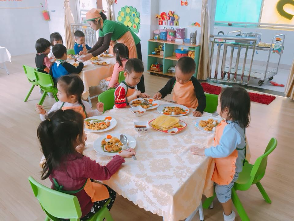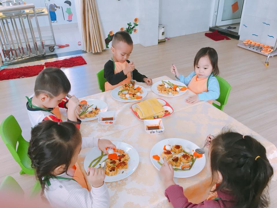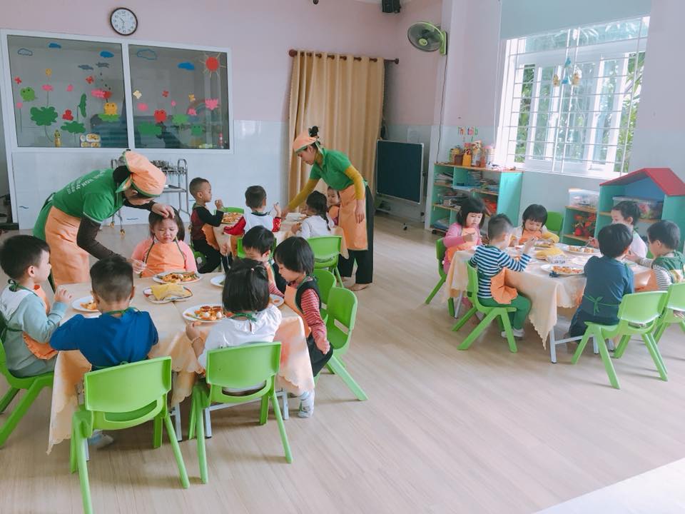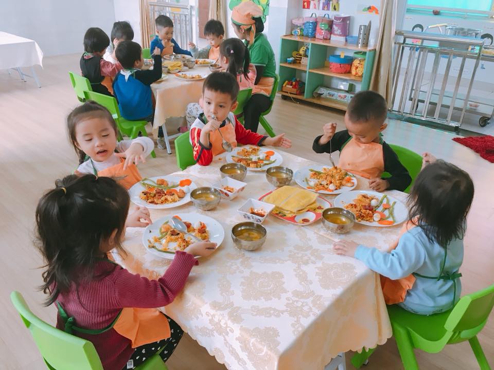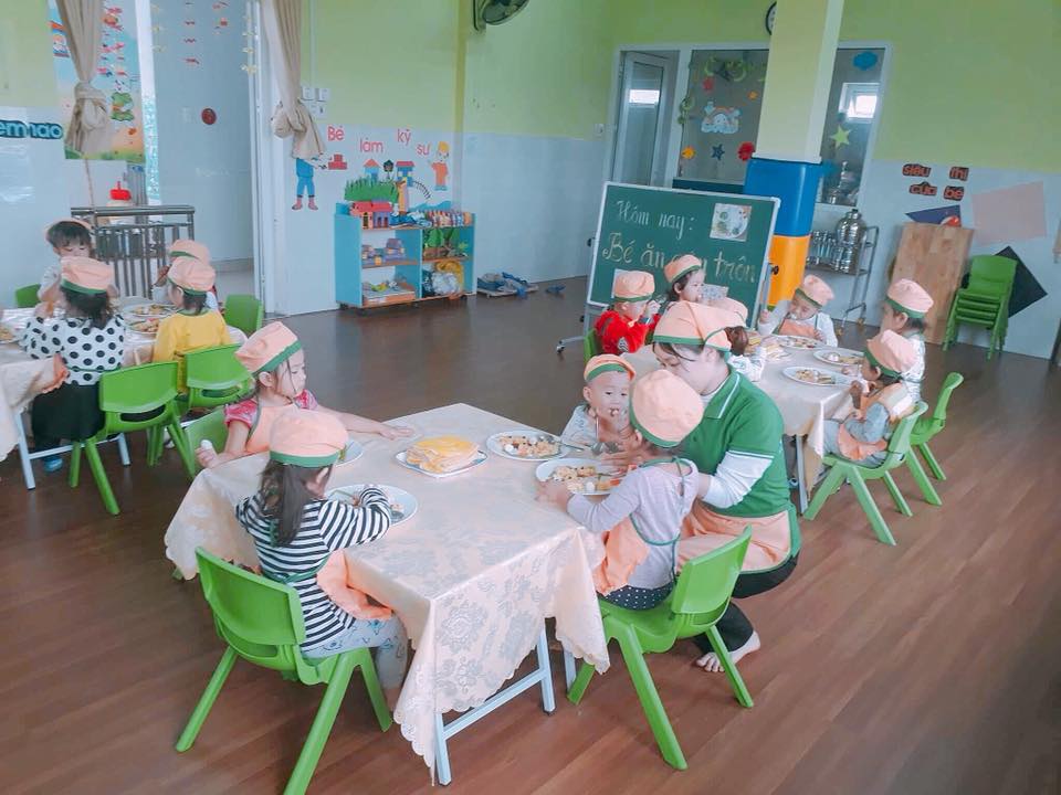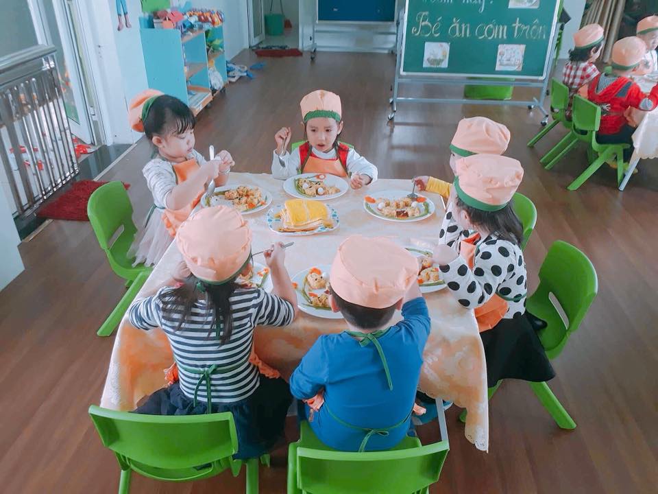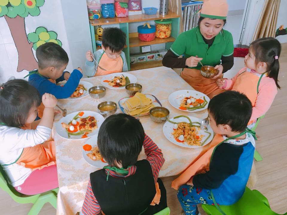 Bữa cơm trưa đầy màu sắc của các bé tại Trường Mầm non Ngôi Sao Xanh