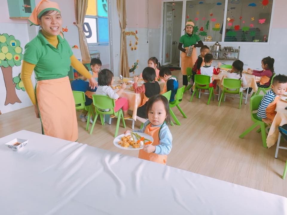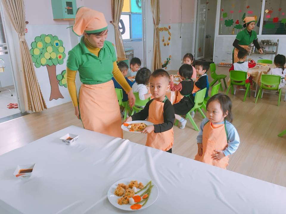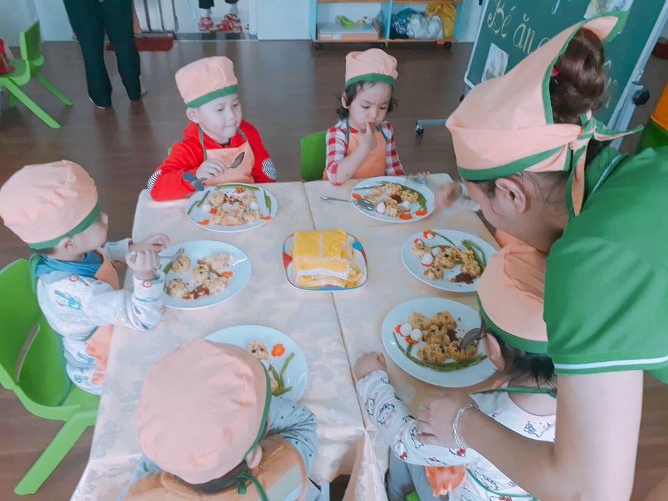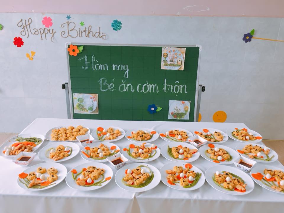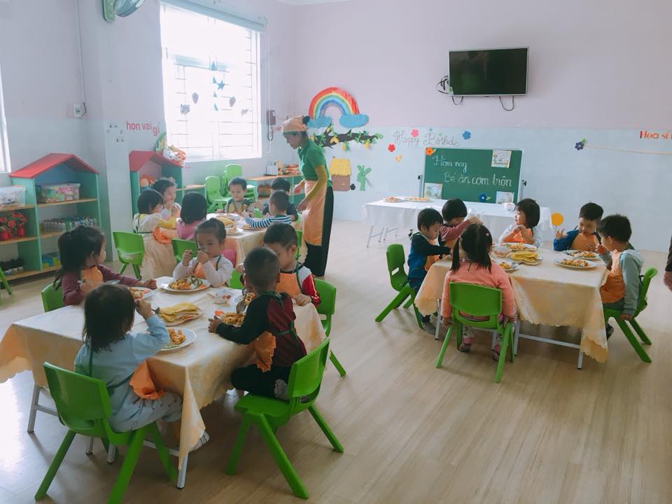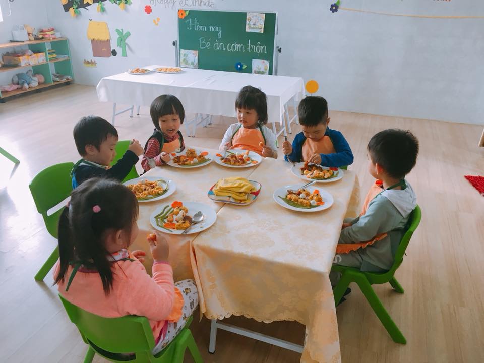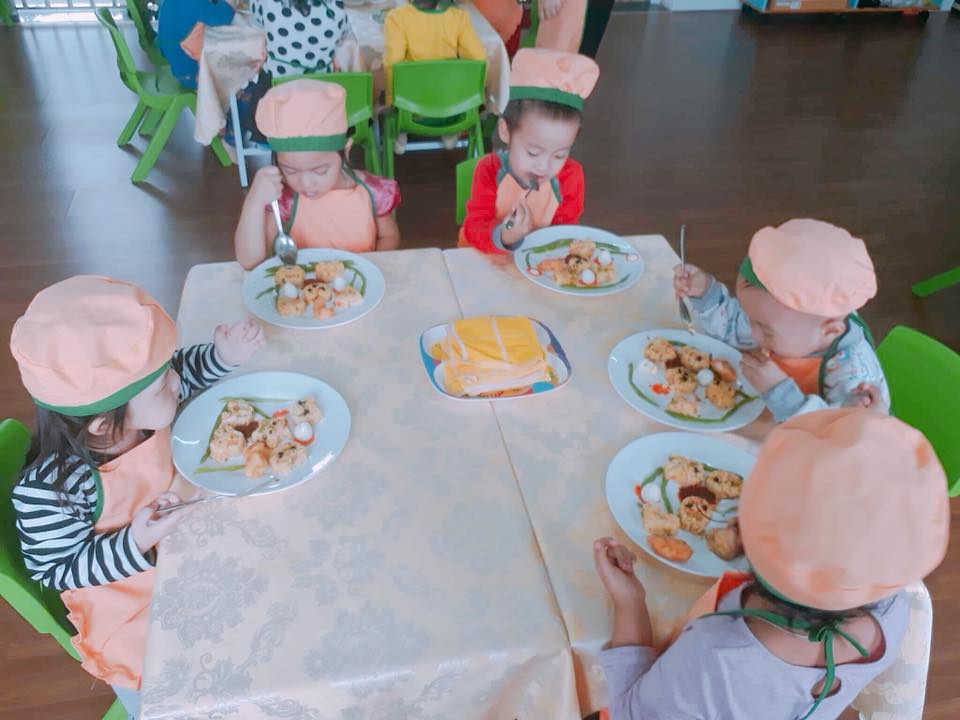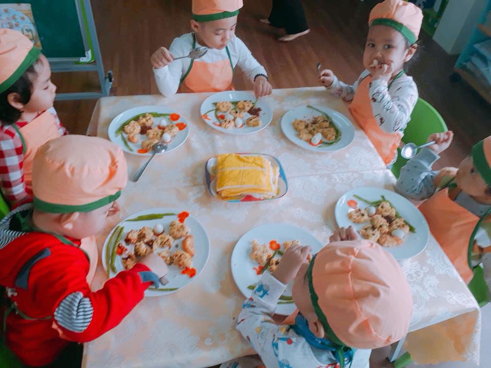 Bữa cơm trưa đầy màu sắc của các bé tại Trường Mầm non Ngôi Sao Xanh