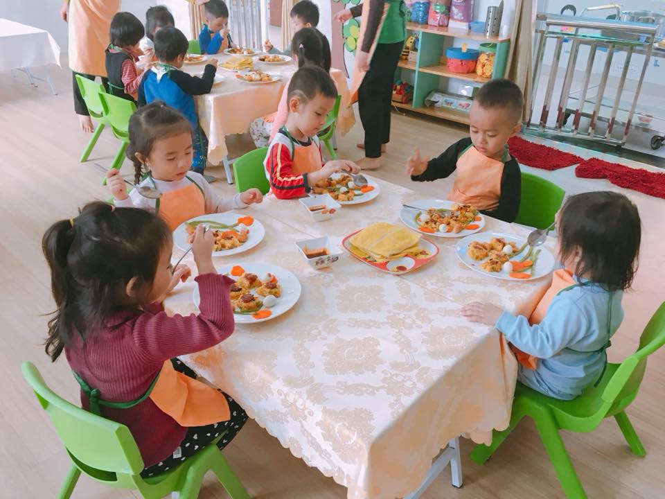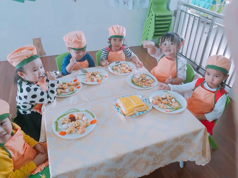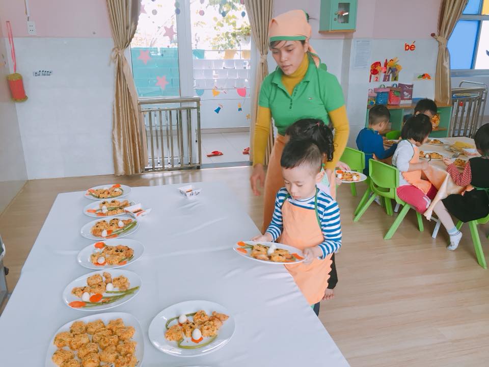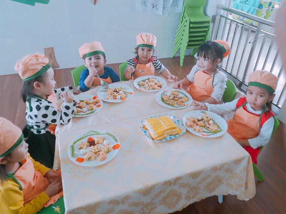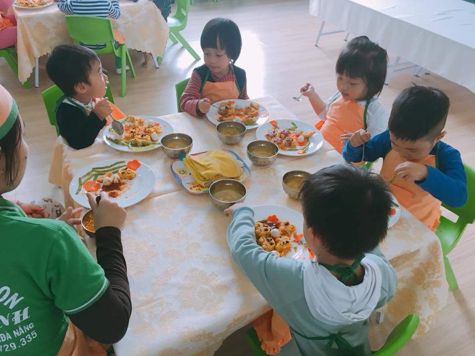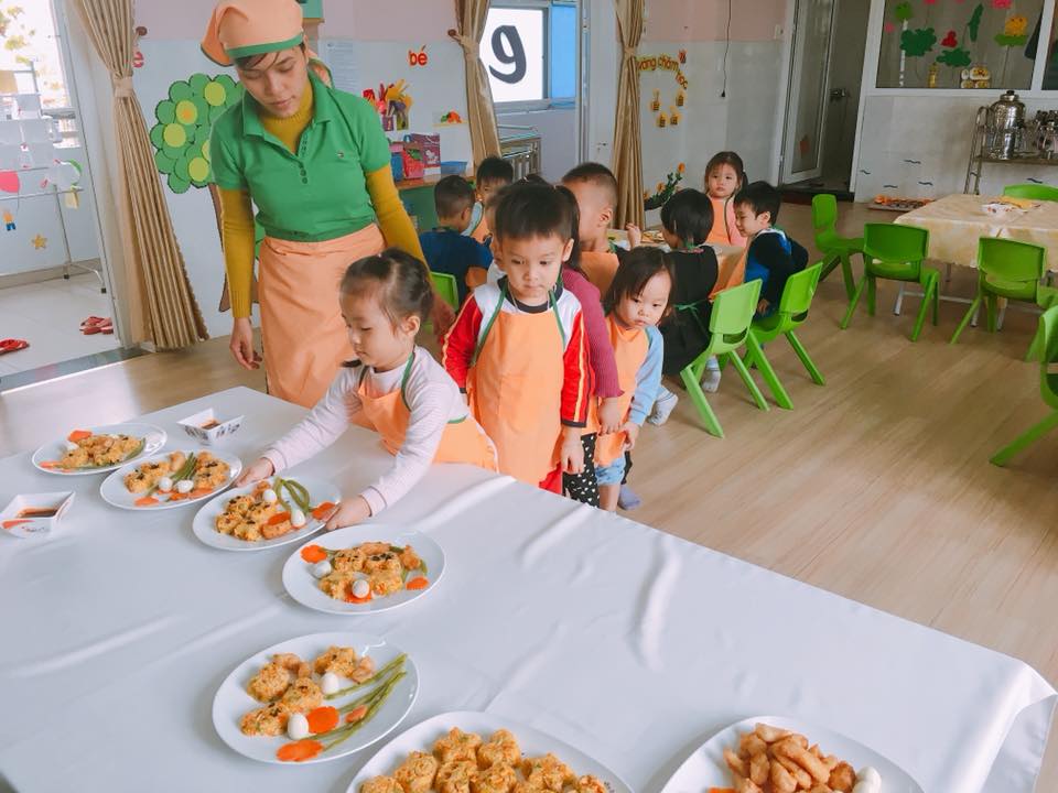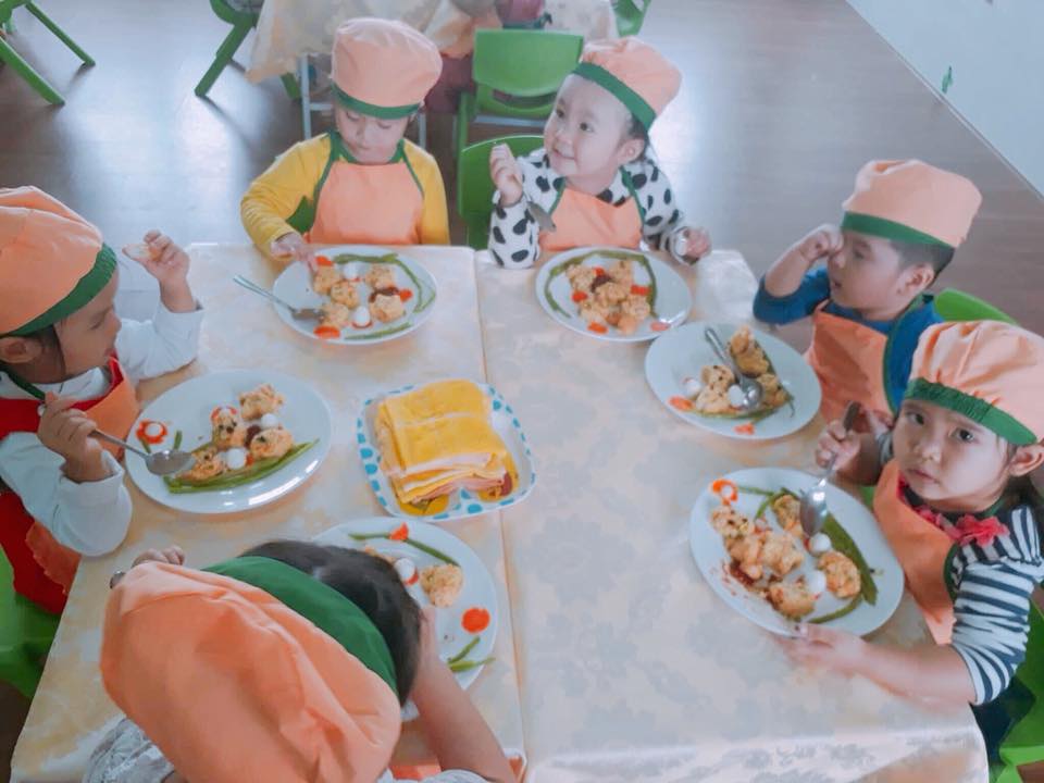 Bữa cơm trưa đầy màu sắc của các bé tại Trường Mầm non Ngôi Sao Xanh