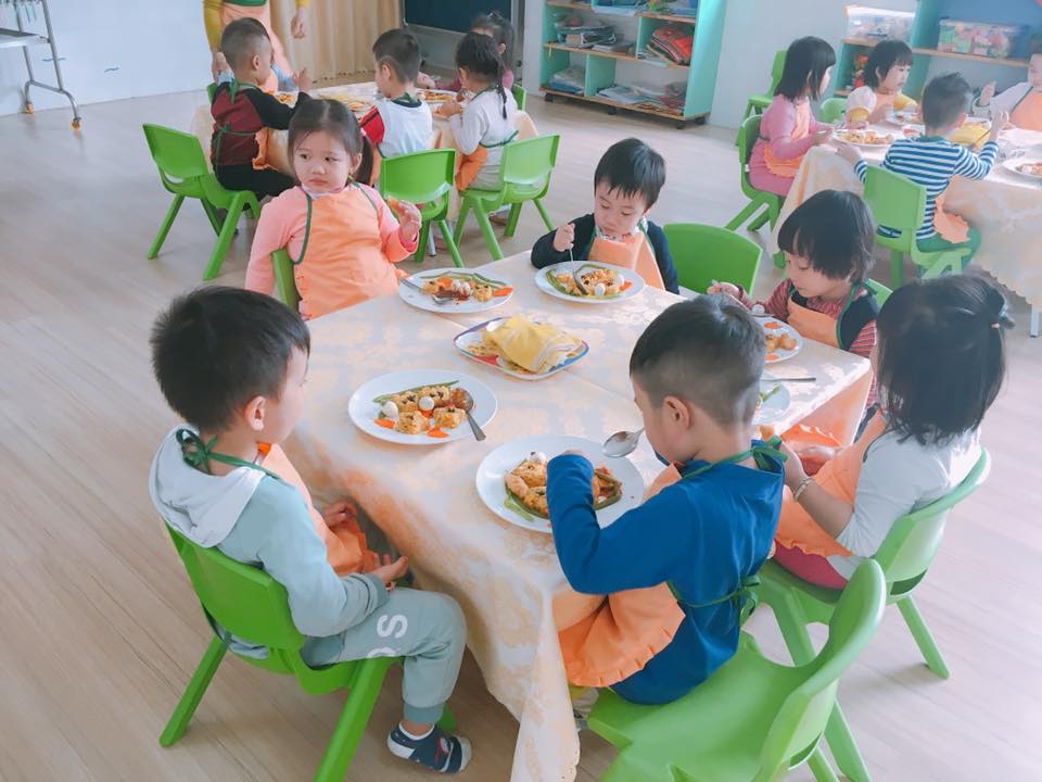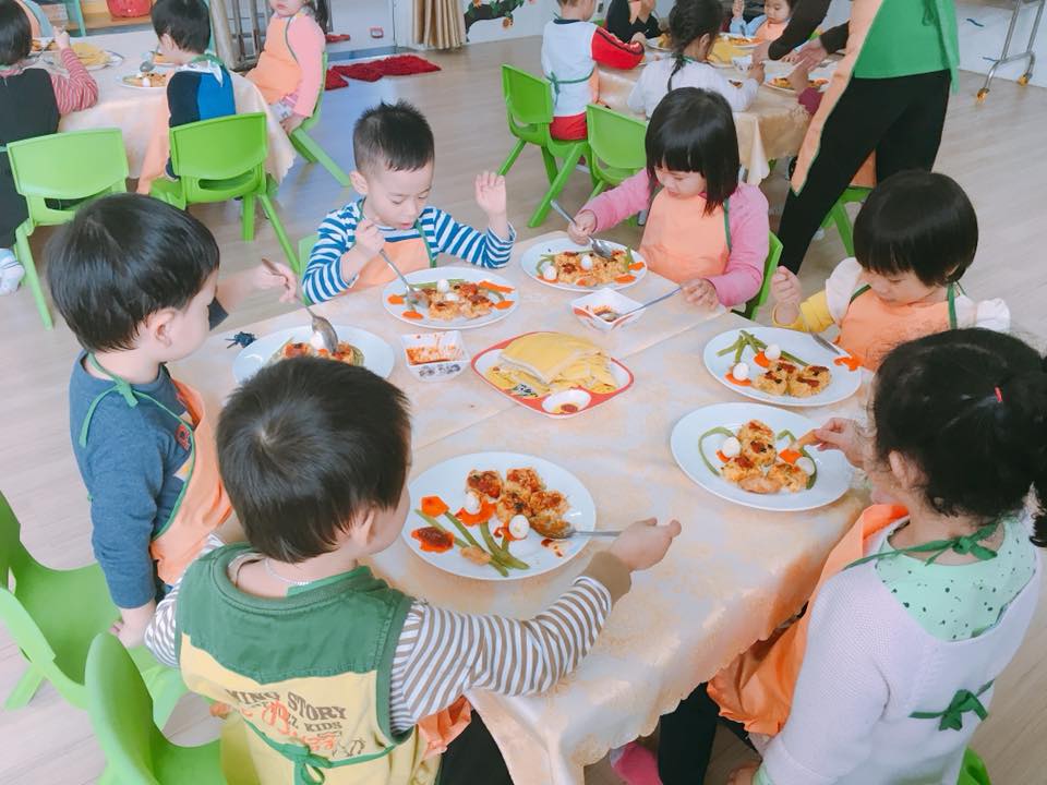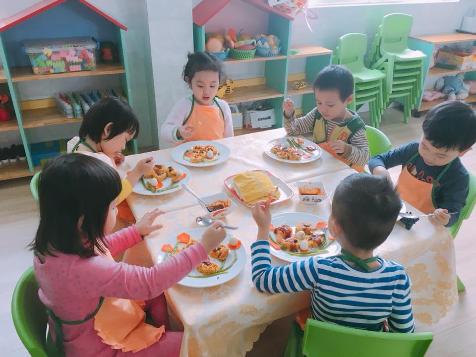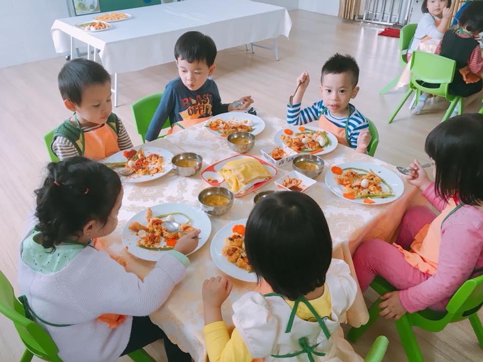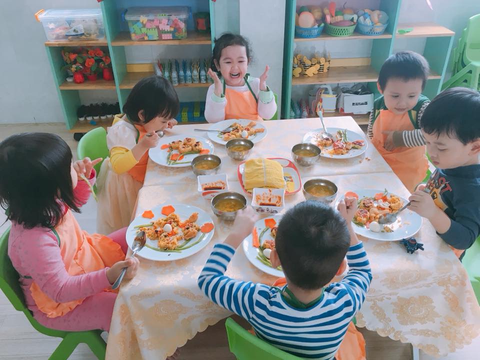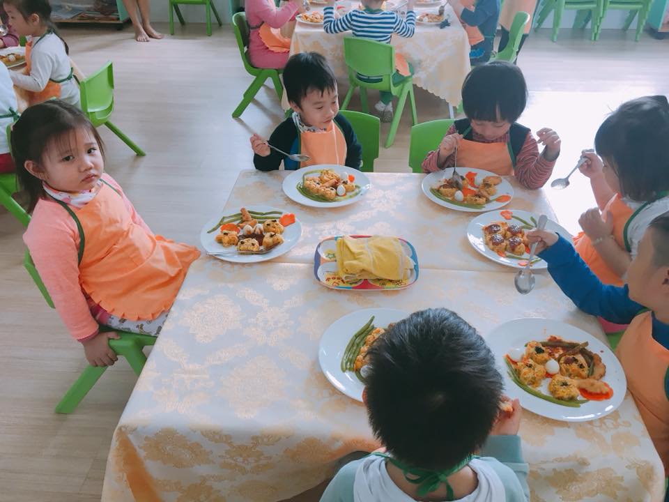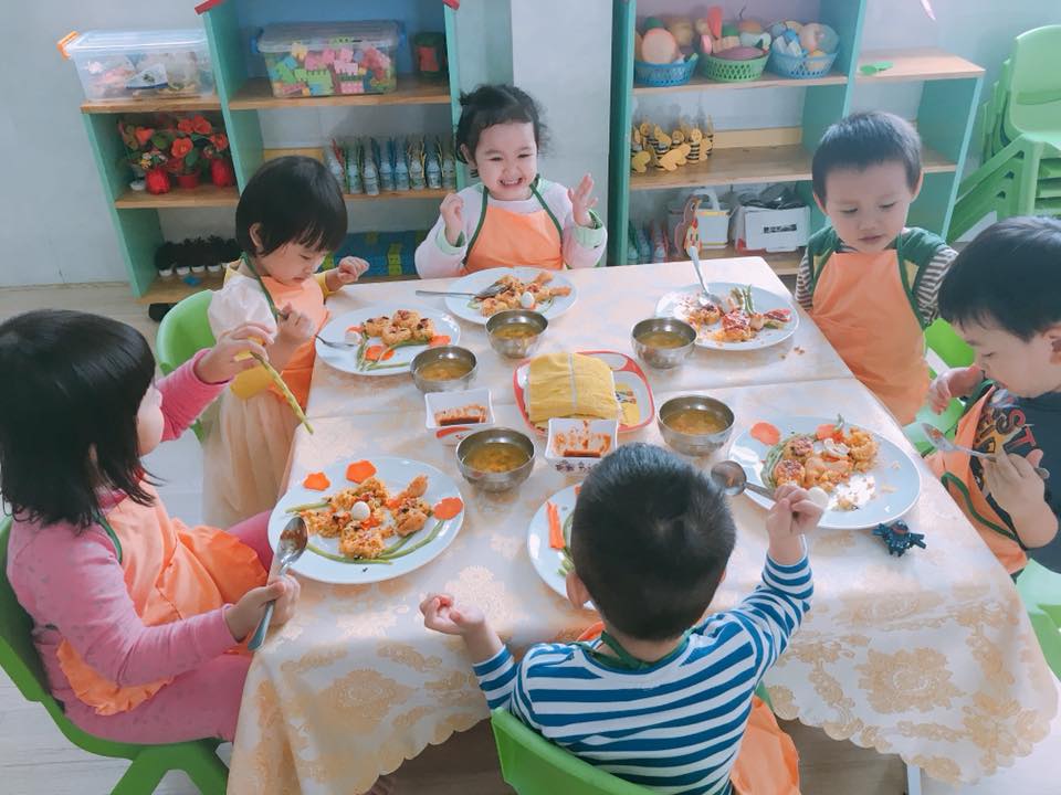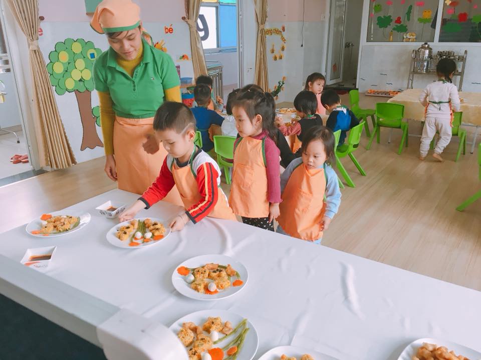 Bữa cơm trưa đầy màu sắc của các bé tại Trường Mầm non Ngôi Sao Xanh