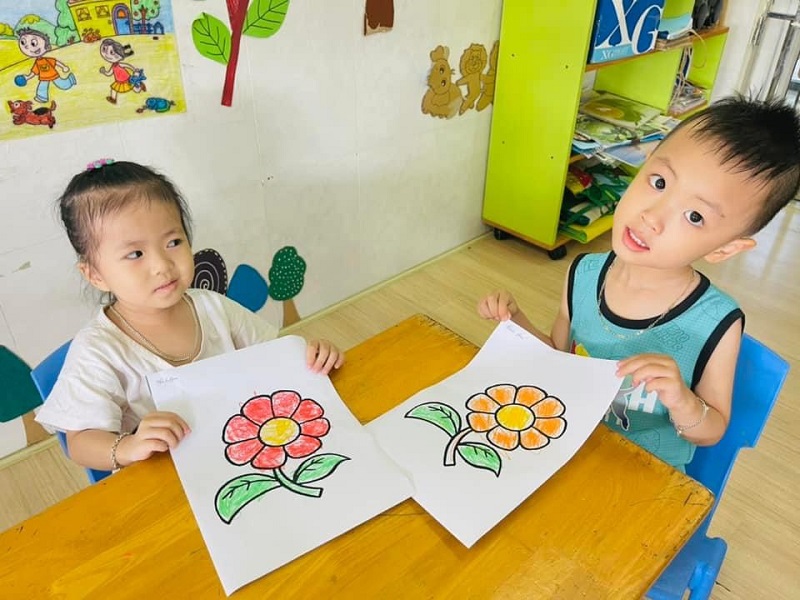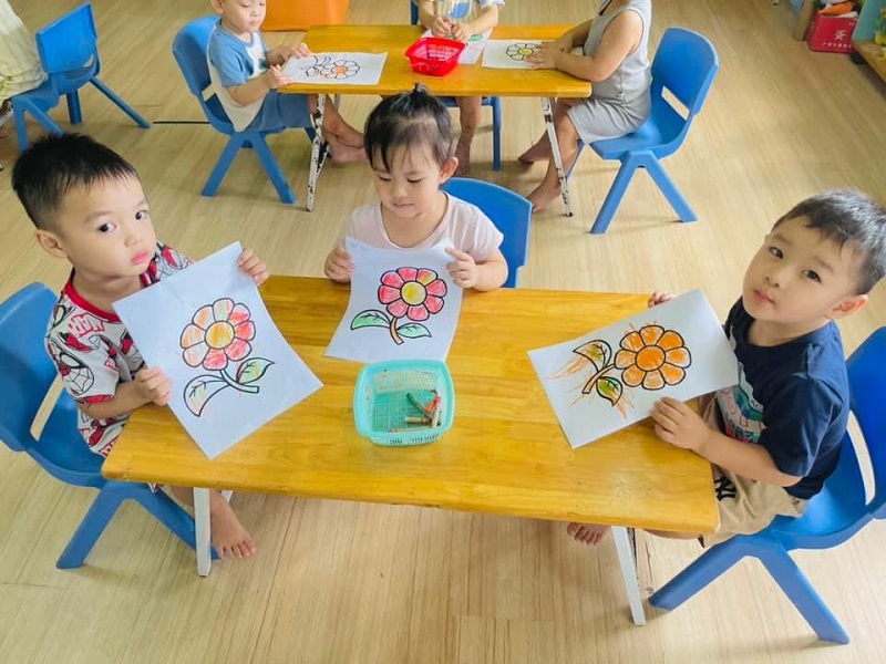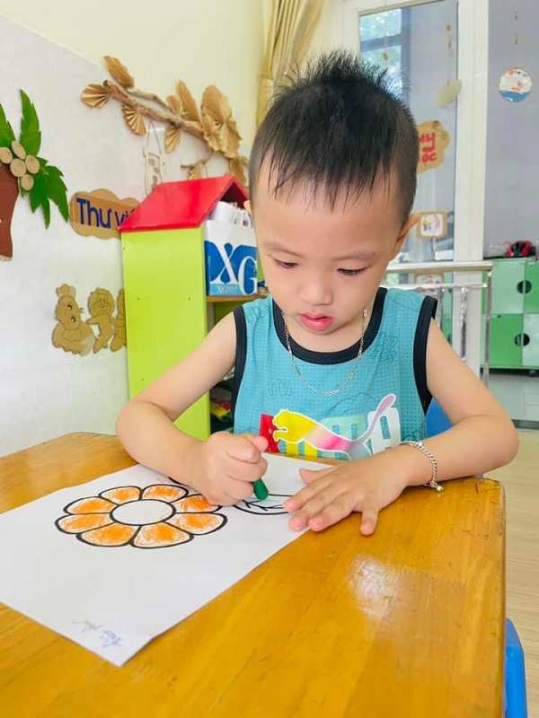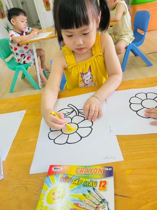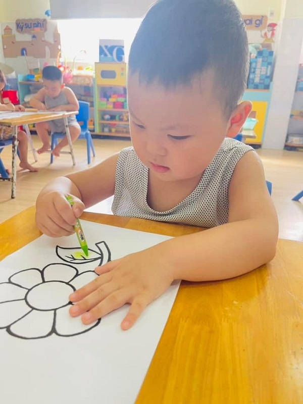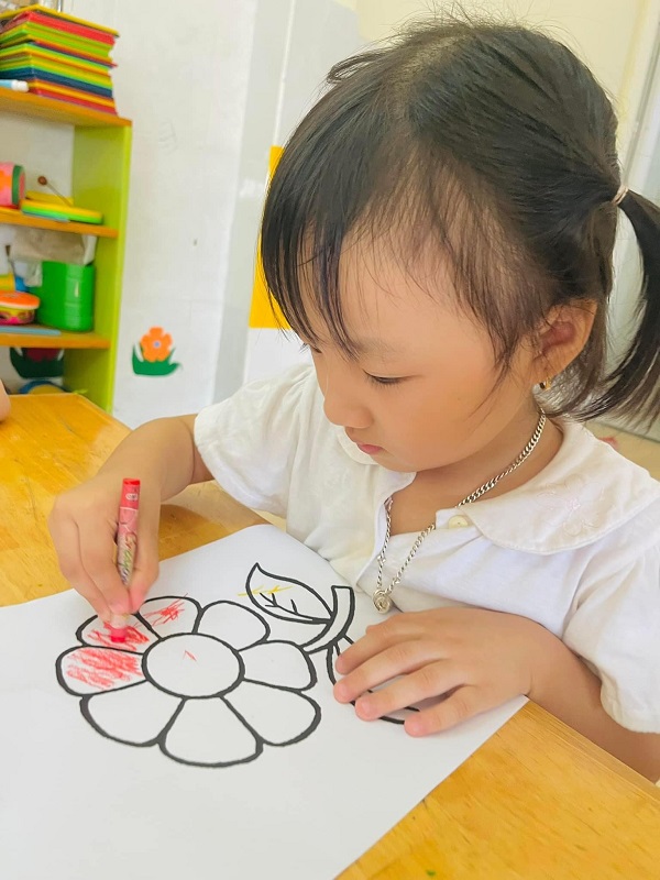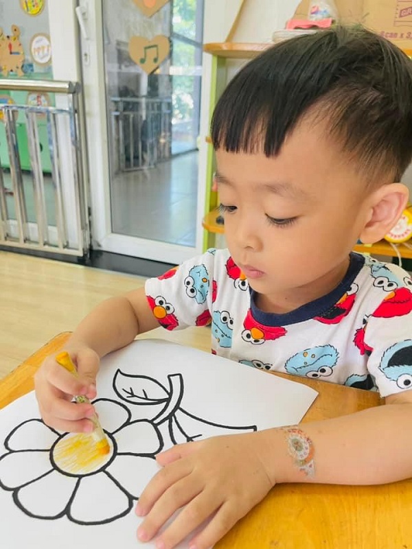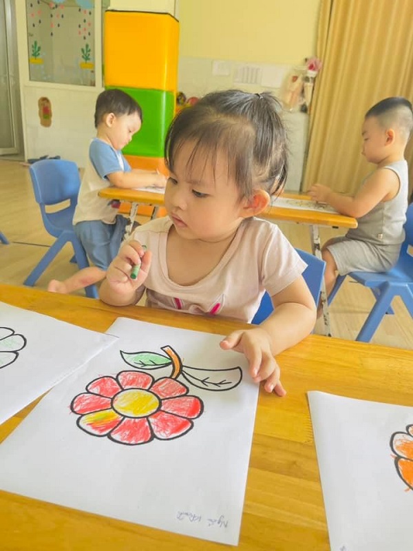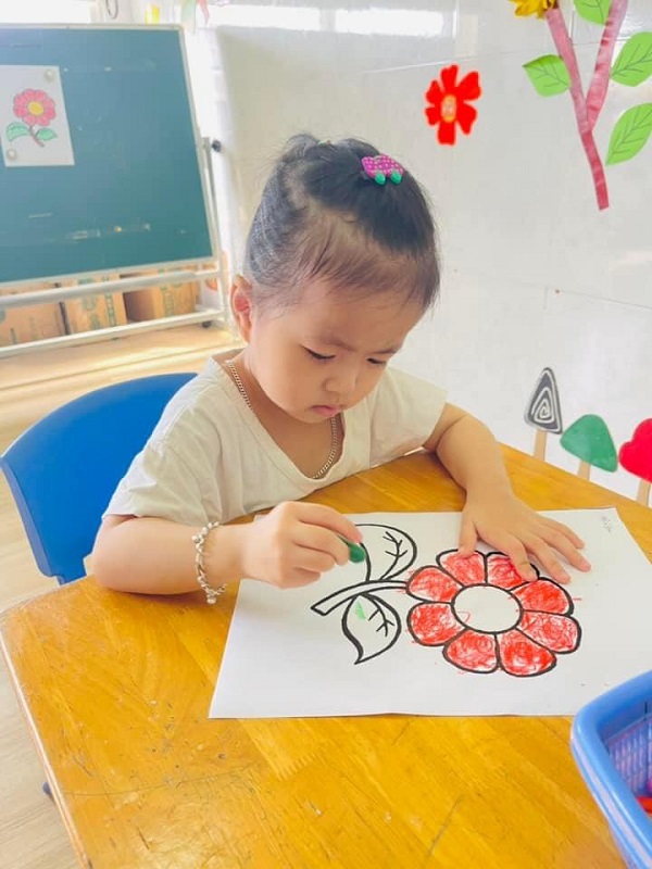 Các bạn lớp Bé 2 được cô hướng dẫn tô màu "Bông hoa xinh đẹp". Ba mẹ cùng xem một số hình ảnh của các con nhé: