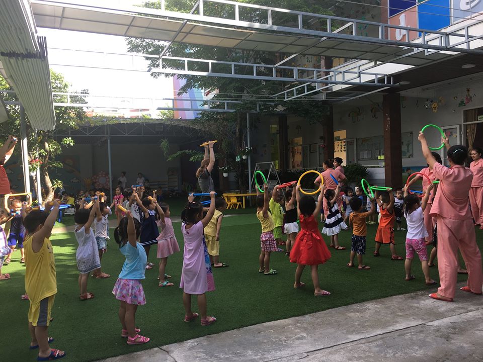 Hiểu được các lợi ích của việc tập thể dục mang lại cho bé, Ba mẹ hãy cùng bé đến trường sớm để bé tập thể dục nhé.