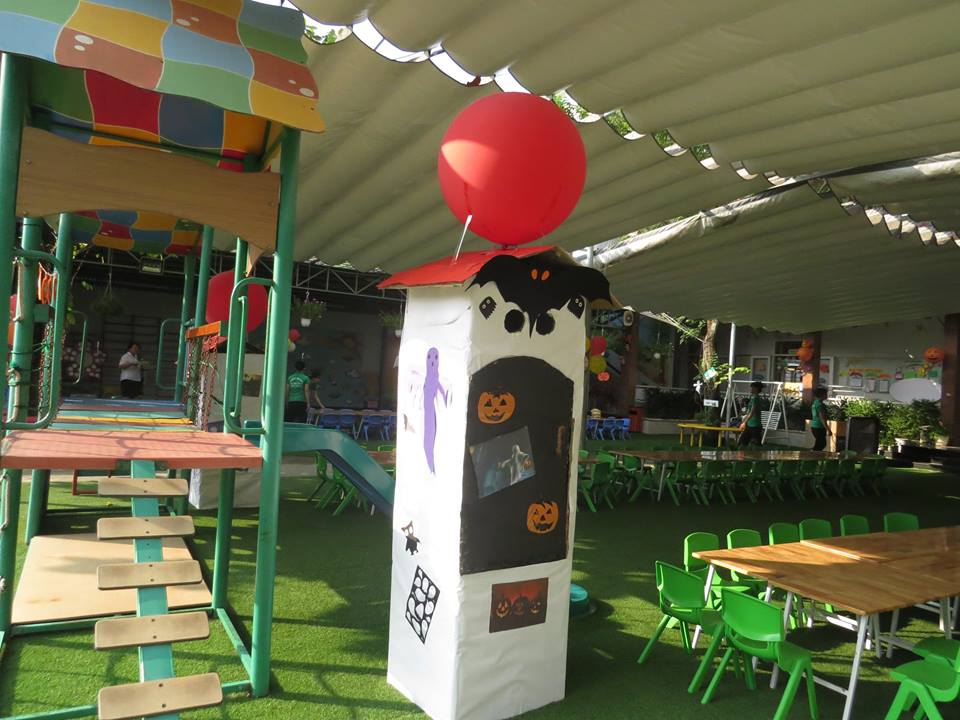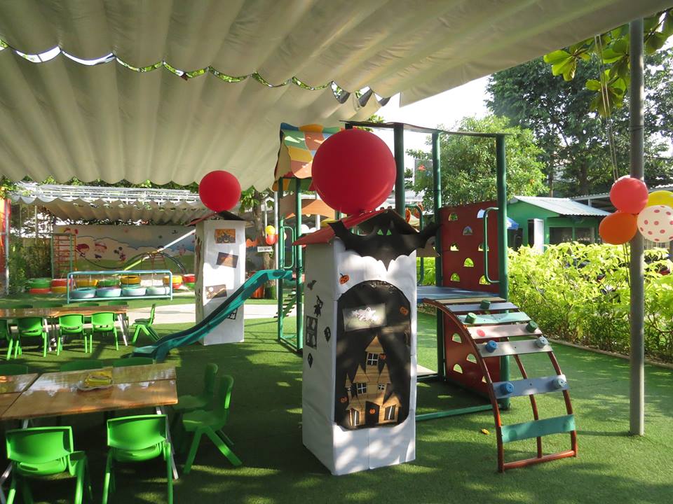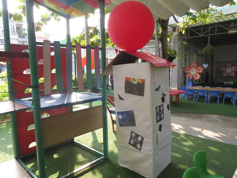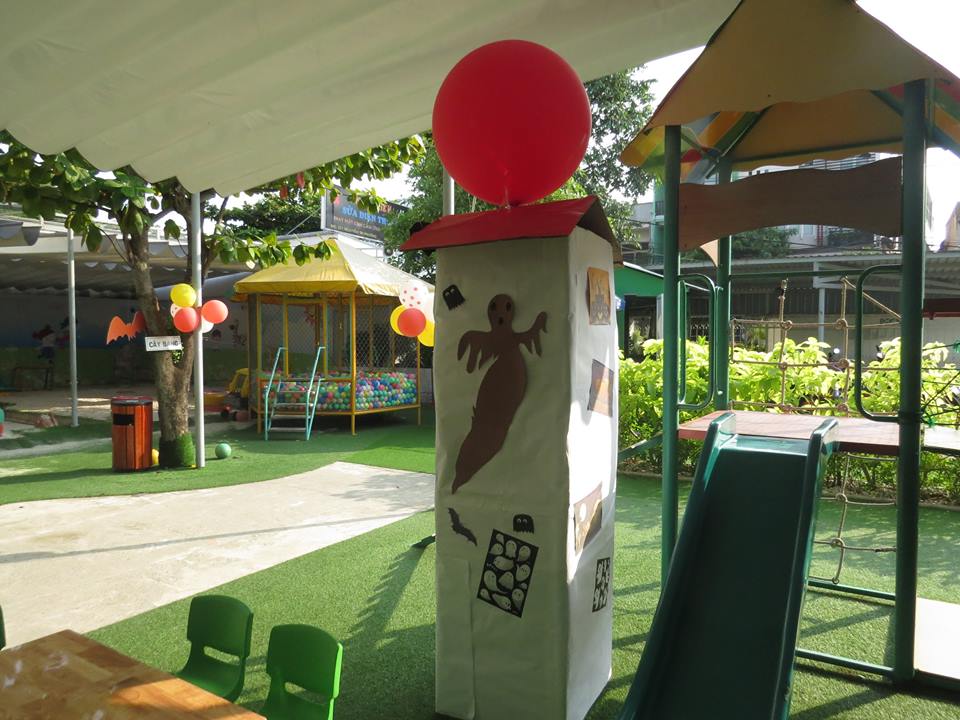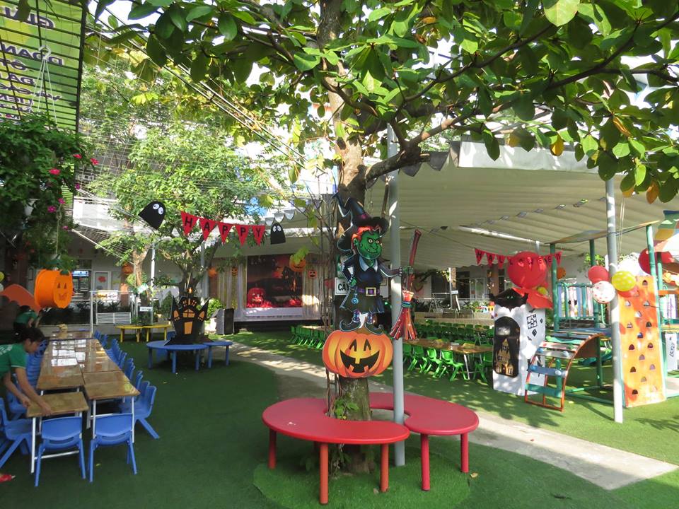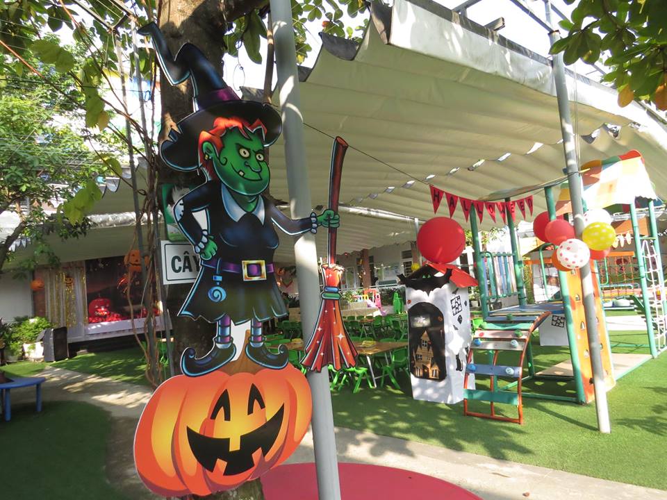 Ngoài bữa tiệc buffet ngoài trời ra, trường mầm non Ngôi Sao Xanh còn tổ chức Lễ Hội Hóa Trang Halloween để các bé được trải nghiệm và hòa nhập cùng không khí lễ hội Halloween trên toàn thế giới với chủ đề Happy Halloween nữa đấy. Với nhiều hoạt động vui vẻ và bổ ích như làm bạn và giao lưu với cô phù thủy dễ thương, cô hề vui nhộn, ngôi nhà ma quái và tham gia các trò chơi vận động…