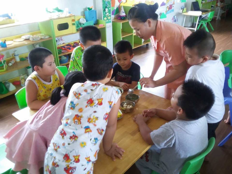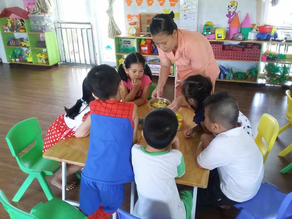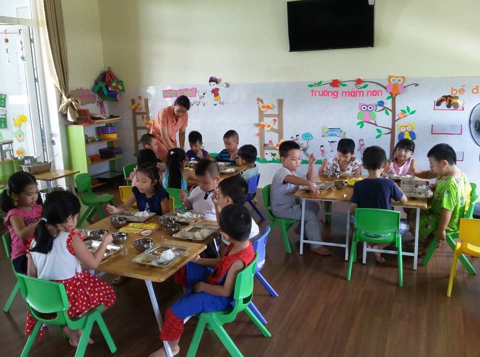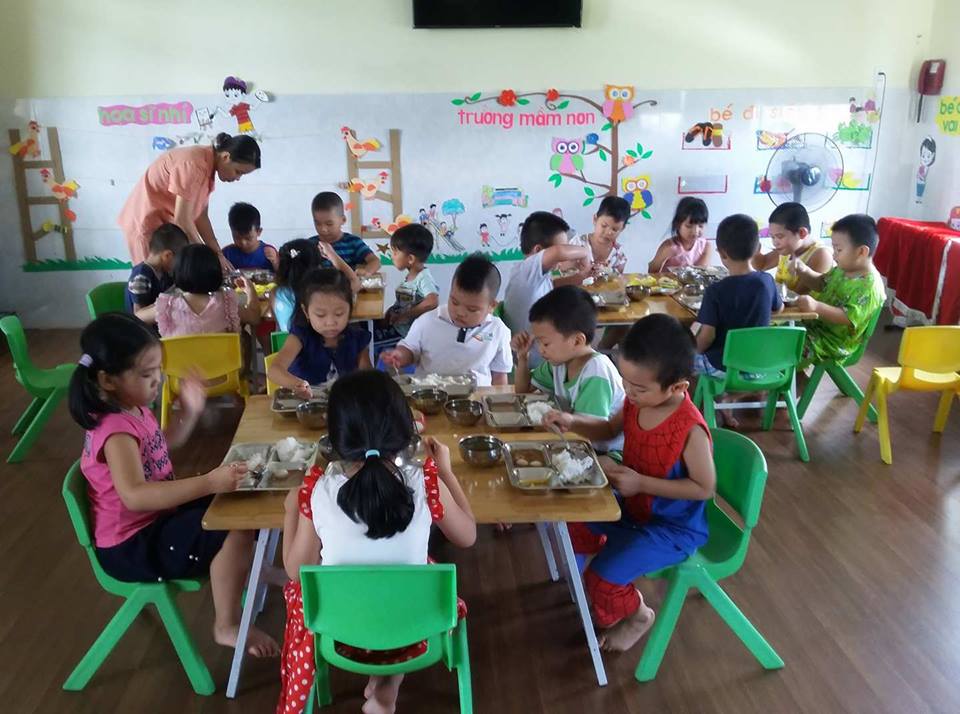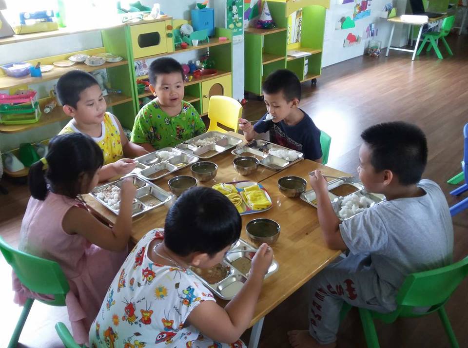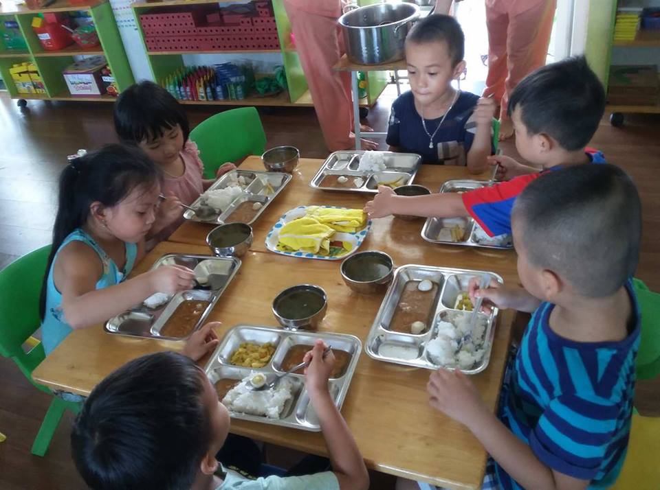 Các con cùng nhau ăn trong không khí thật vui vẻ.