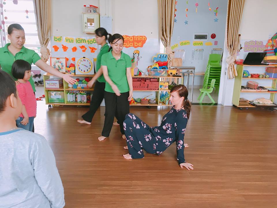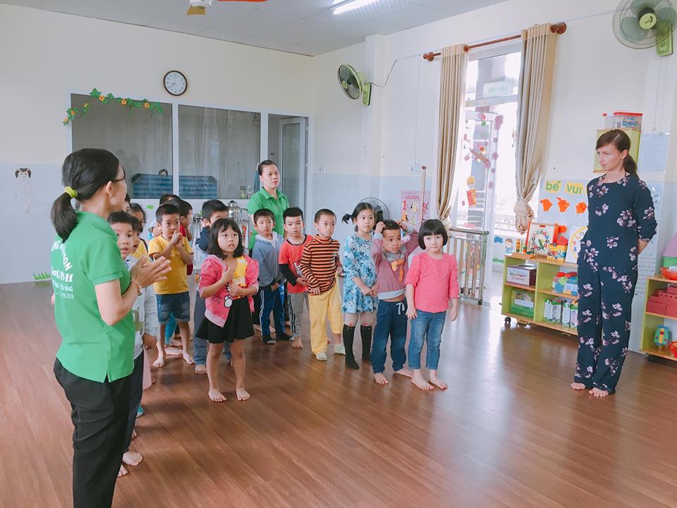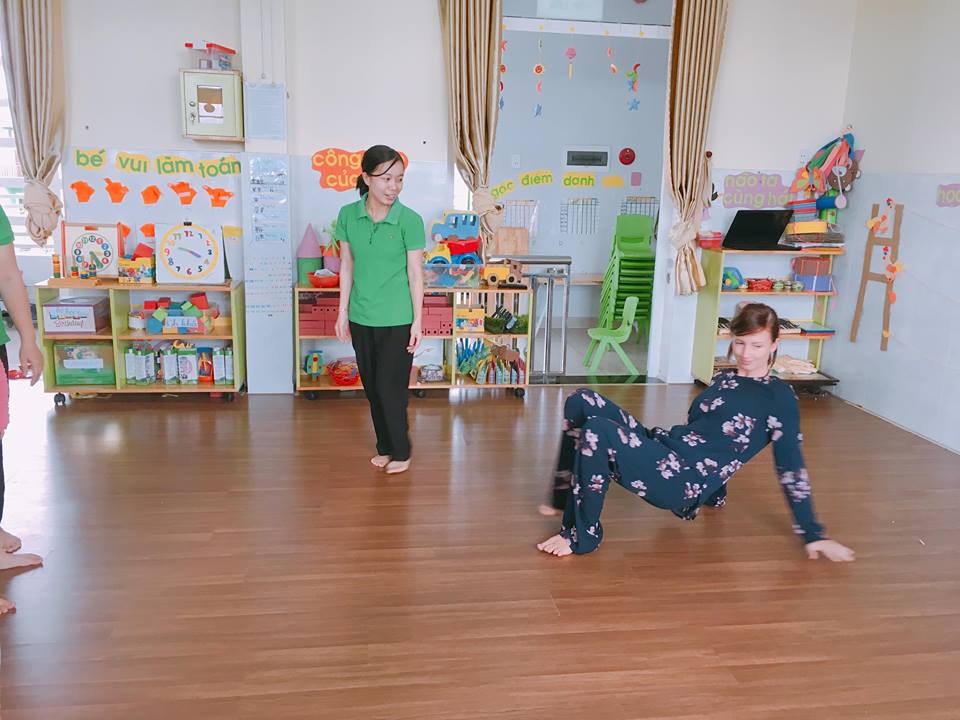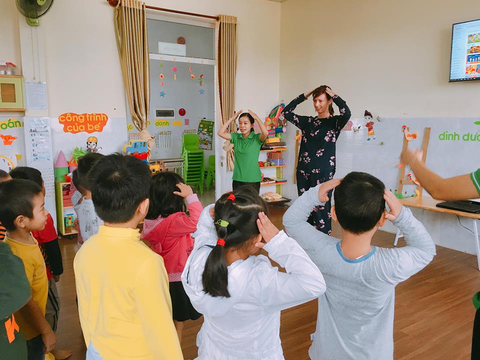 Thời tiết đã trở lạnh, cô Linette hướng dẫn các bé lớp Mẫu giáo lớn một số bài vận động để các bé hiểu hơn về hoạt động của cơ thể con người. Những bài vận động tuy đơn giản nhưng lại rất bổ ích cho sức khoẻ. Các bé đã tham gia rất nhiệt tình và vui vẻ.