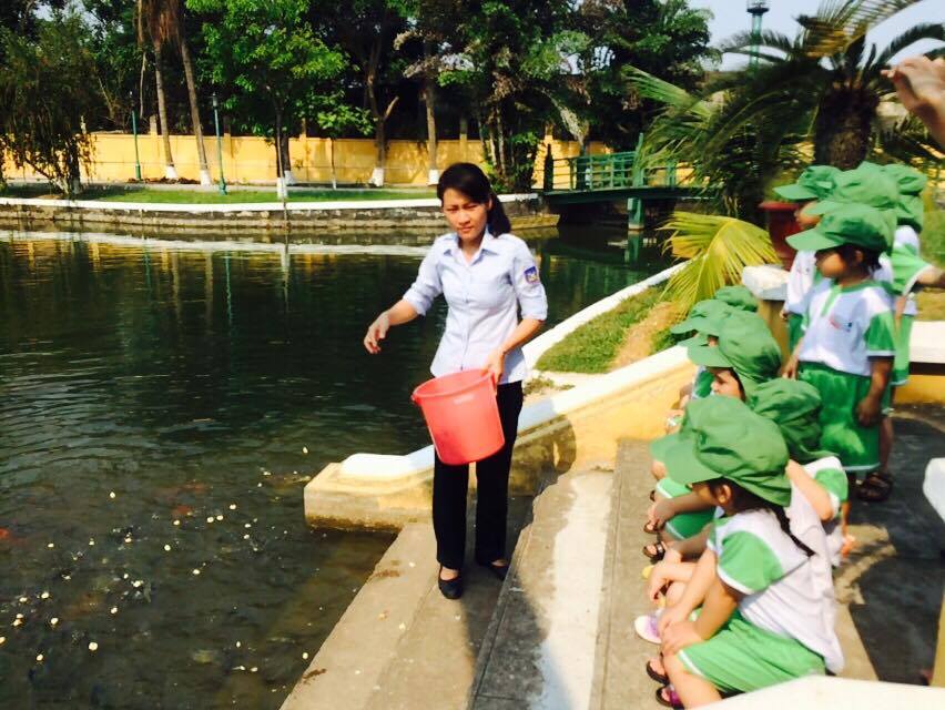 Thích thú xem cô hướng dẫn cho cá ăn tại Hồ cá của Bác.