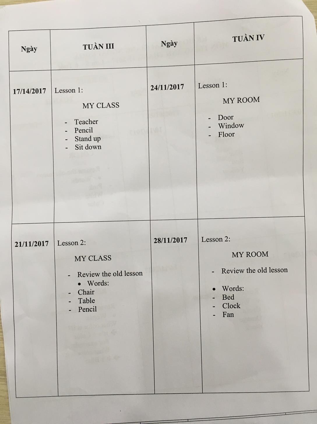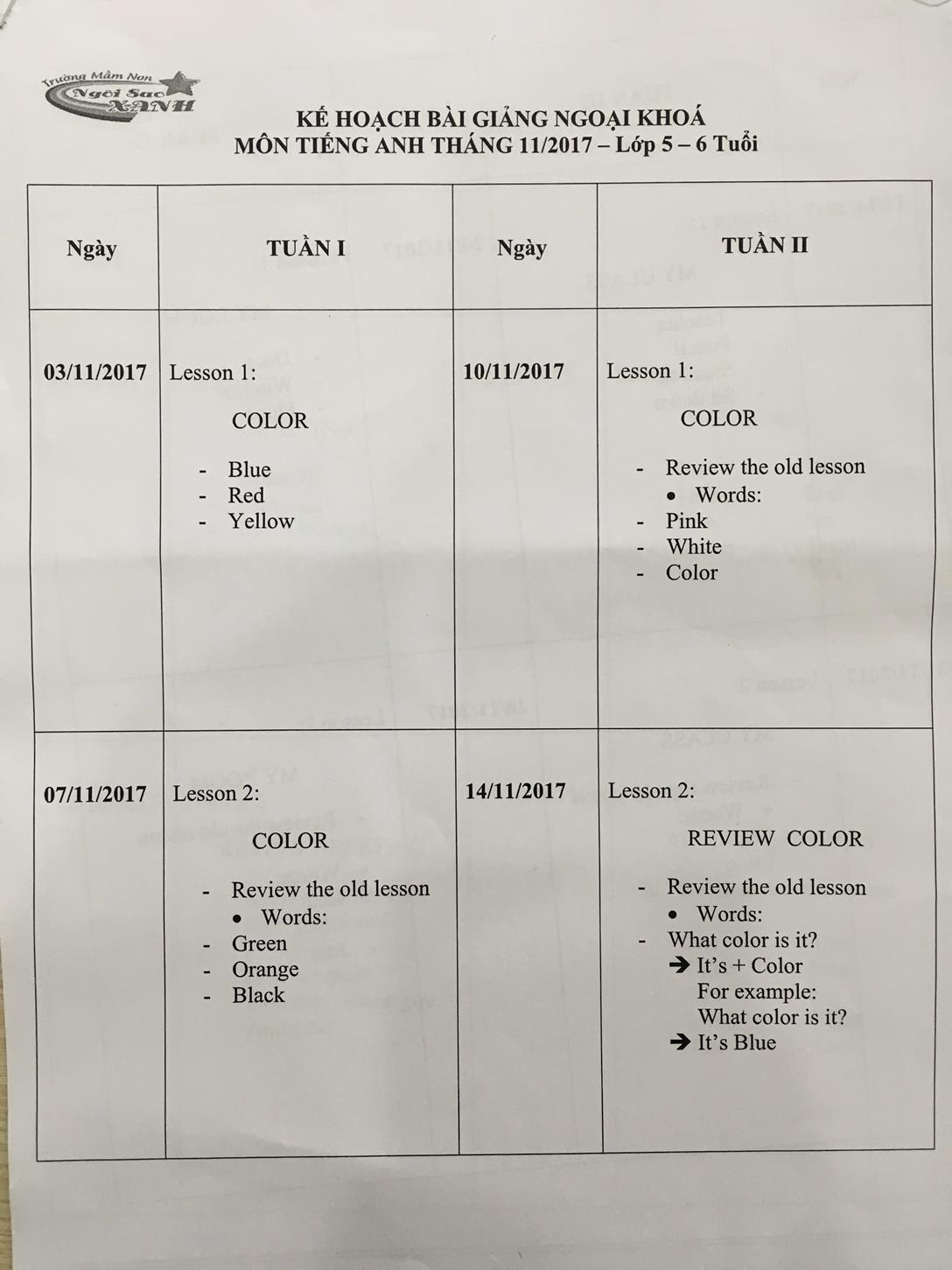 Giáo án lớp ngoại khóa Anh văn tháng 10/2017 và 11/2017 (Mẫu giáo Bé)