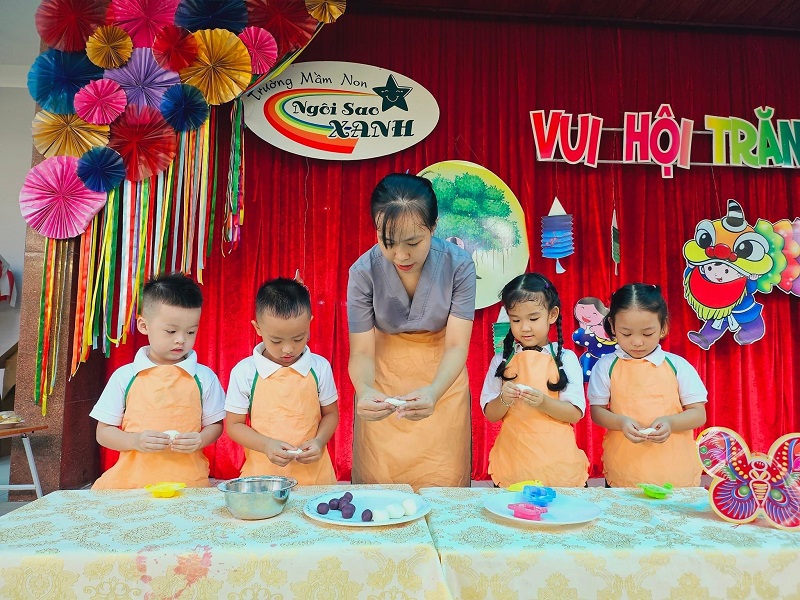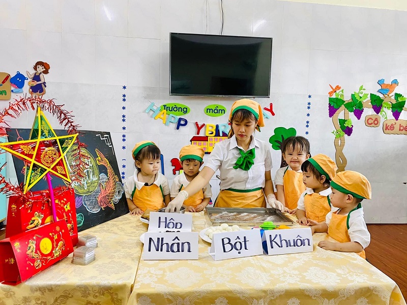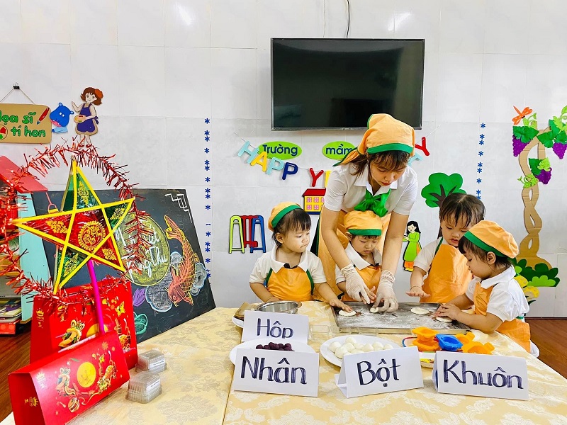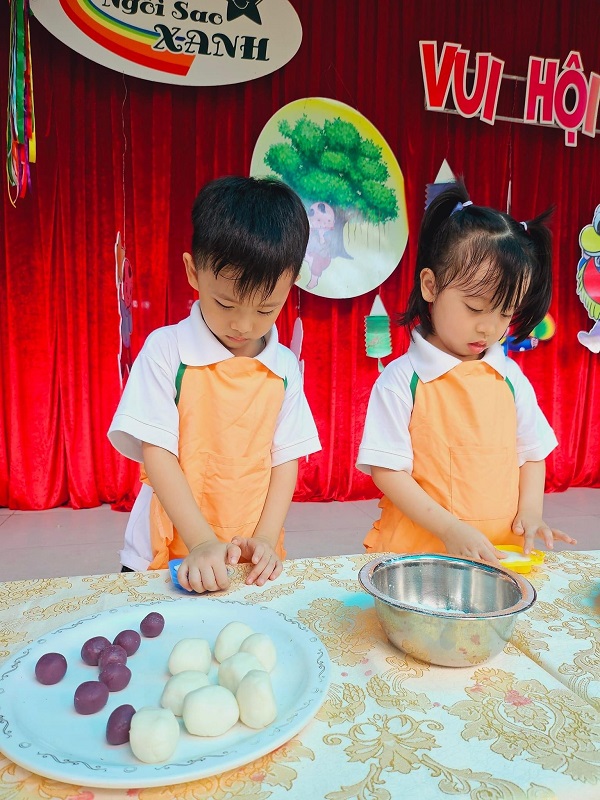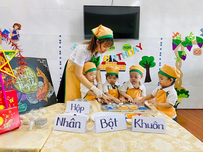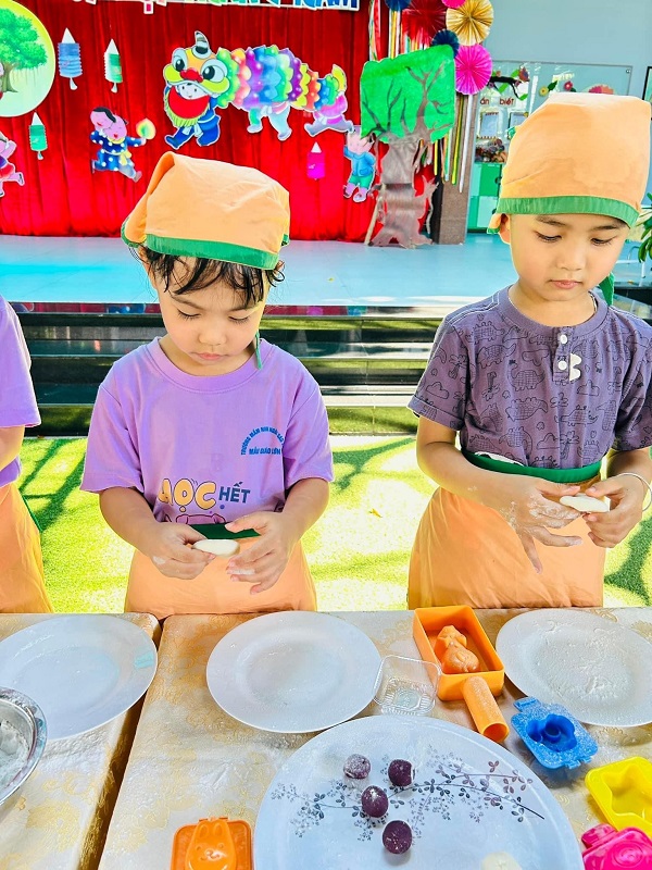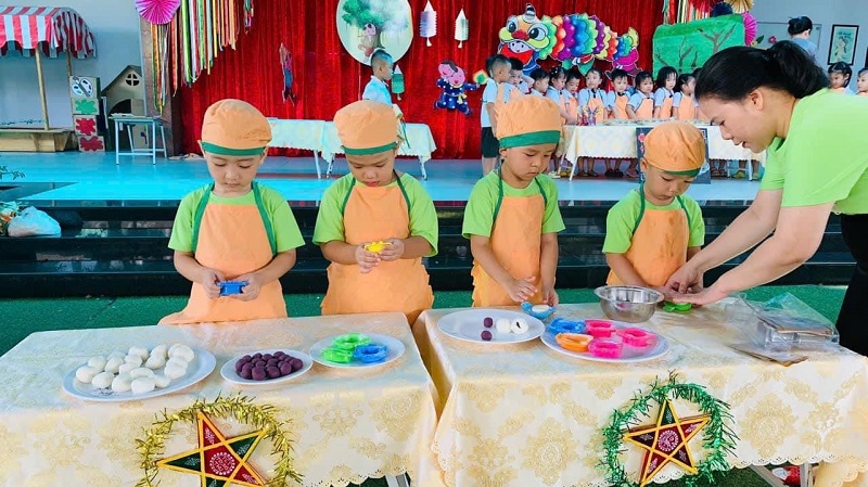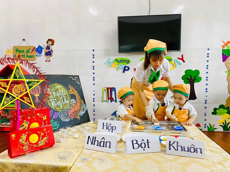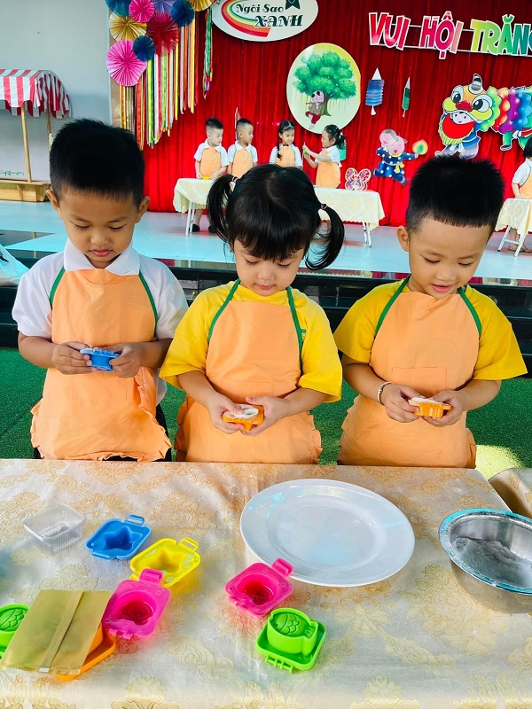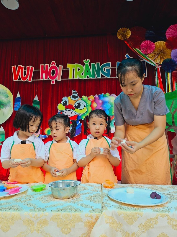 Các bạn nhỏ lớp được cô giáo hướng dẫn làm bánh trung thu. Bạn nào cũng thích thú khi tự tay tạo ra những chiếc bánh với hình dạng mà mình ưa thích. Ba mẹ cùng xem các hình ảnh đáng yêu của con nhé!