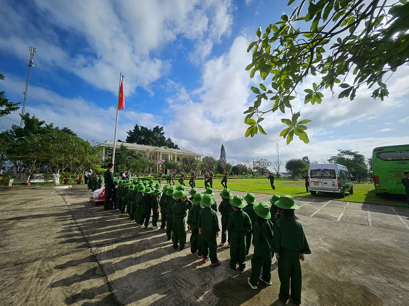 Đến đây, các bé thấy được thực tế cuộc sống, nề nếp kỷ luật chính quy của các chú bộ đội. Ngoài ra, các bé được các chú dẫn đi tham quan sân tập, khu vườn rau xanh, nhà truyền thống, hội trường của Tiểu đoàn, nơi ở và sinh hoạt hàng ngày…