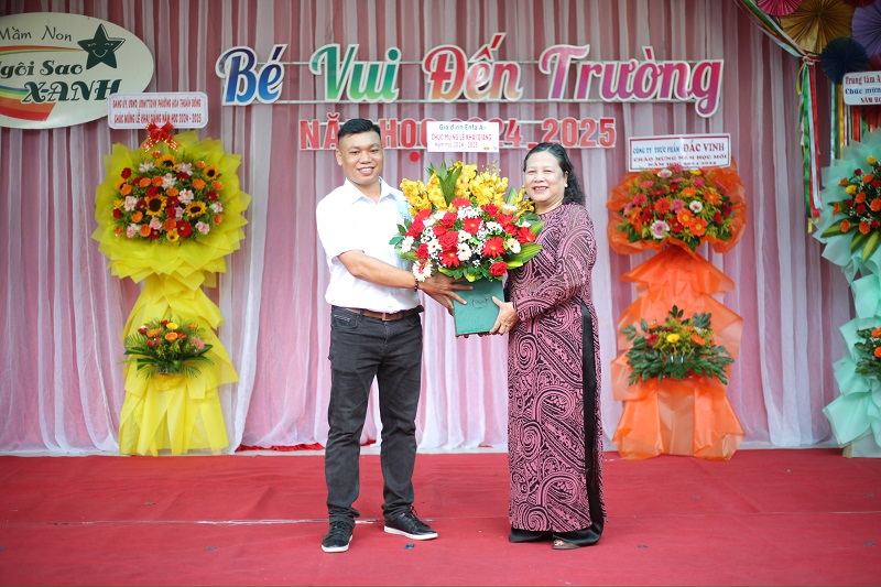 Tập thể Nhà trường xin chân thành cảm ơn đến quý Lãnh đạo Đảng ủy, UBND, UBMTTQ phường Hoà Thuận Đông; Đại diện ban chấp hành Đoàn thanh niên Phường Hoà Thuận Đông; Công ty thực phẩm Đắc Vinh, Công ty Erobic Nam Phương, Công ty sữa Enfa A+; Công ty sữa việt Minh Khuê; Trung tâm Anh Ngữ Titan; Trung tâm Anh Ngữ VIA; Đại diện Hội Cha mẹ học sinh cùng toàn thể phụ huynh nhà trường đã về tham dự và tặng hoa chúc mừng Lễ Khai giảng năm học mới cùng Nhà trường.