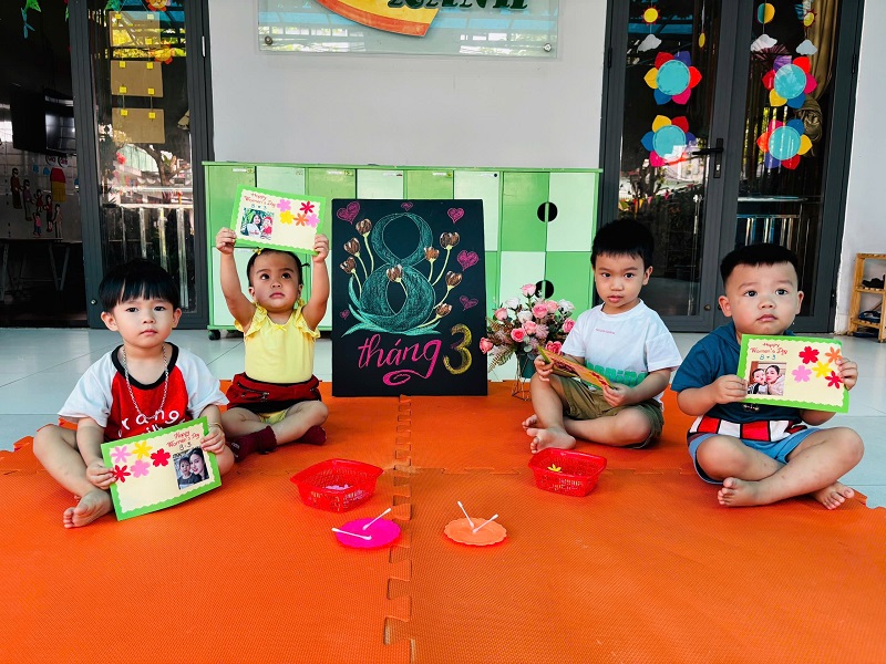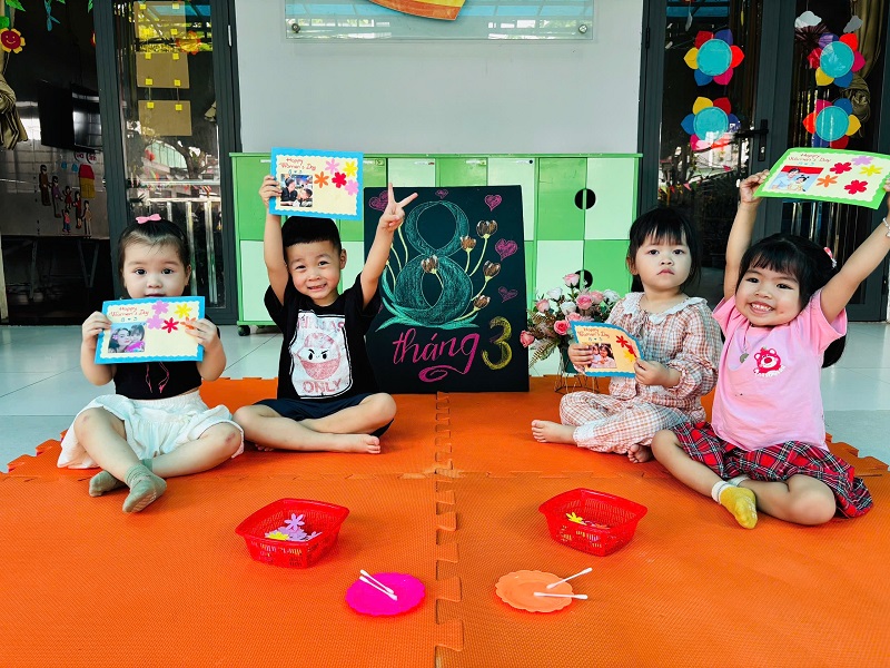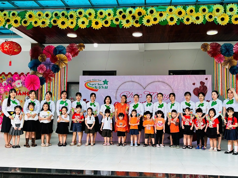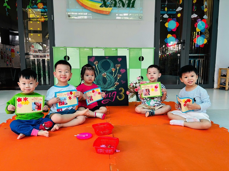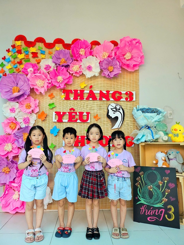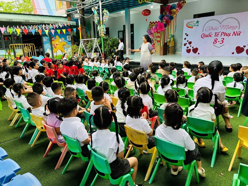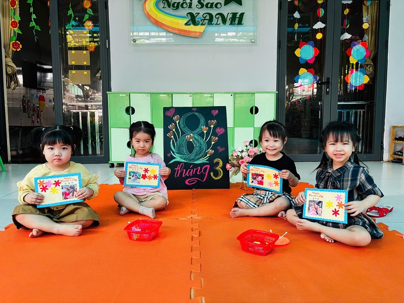 Hòa chung không khí phấn khởi kỷ niệm ngày Quốc tế Phụ nữ 8/3, Trường Mầm non Ngôi Sao Xanh đã triển khai tổ chức các hoạt động bổ ích, thú vị với sự tham gia tích cực của cô và trò ở các nhóm/ lớp. Với phương châm đổi mới phương pháp dạy học, lấy trẻ làm trung tâm nên tất cả các hoạt động đều hướng đến mục đích là tạo cho trẻ một tâm lý hào hứng, thích thú và niềm biết ơn đến những người phụ nữ như: bà, mẹ, và các cô giáo. Trong những ngày này, các cô giáo đã cho trẻ được trải nghiệm làm thiệp, làm quà, làm hoa tặng bà, tặng mẹ; chuẩn bị các bài thơ, các tiết mục văn nghệ thật hay để tham gia sinh hoạt cùng các cô giáo và các bạn. Qua hoạt động này không chỉ giúp trẻ hiểu được ý nghĩa của ngày Quốc tế phụ nữ 8/3 mà còn bồi dưỡng cảm xúc và tình cảm xã hội cho trẻ, giúp trẻ biết thể hiện sự quan tâm, yêu quý, kính trọng với bà, với mẹ, với cô giáo, và với các bạn nữ. Nhân ngày Quốc tế Phụ nữ 8/3 Trường mầm non Ngôi Sao Xanh xin kính chúc sức khỏe tới các bà, các mẹ, các cô giáo, chúc phái nữ luôn xinh đẹp, trẻ trung, thành công trong công việc và hạnh phúc trong cuộc sống. Dưới đây là một số hình ảnh của các con: