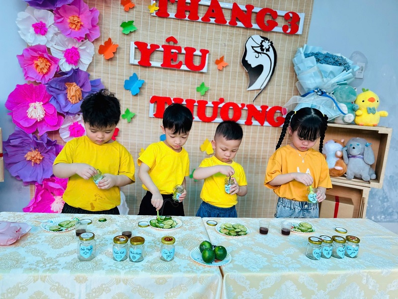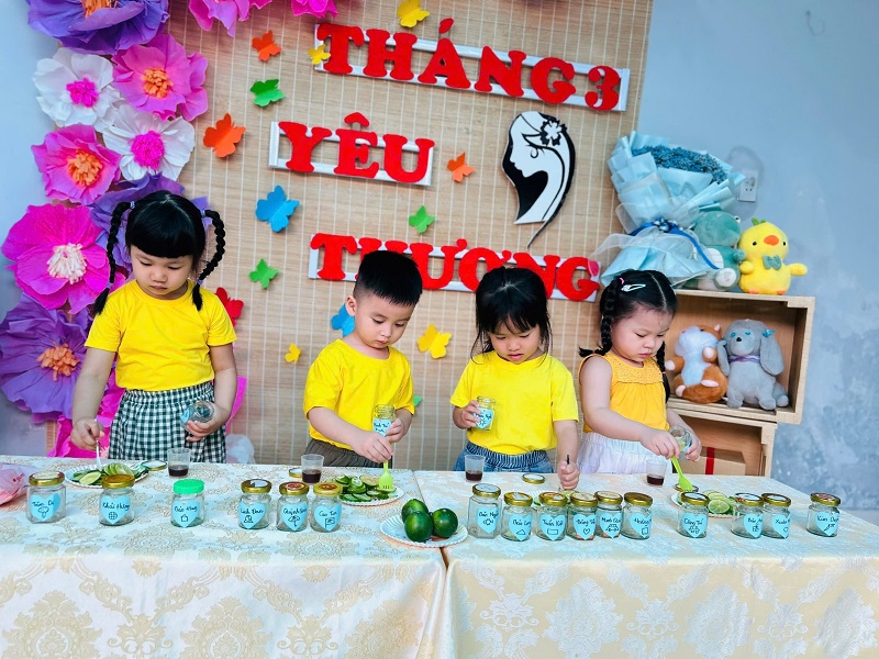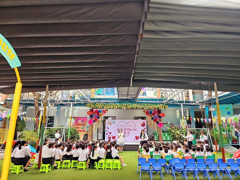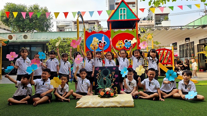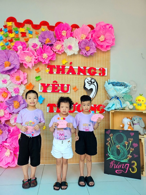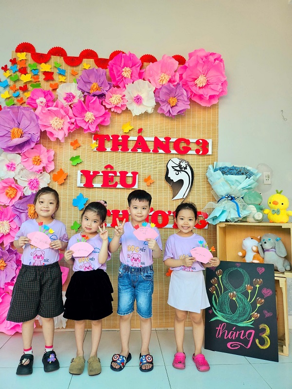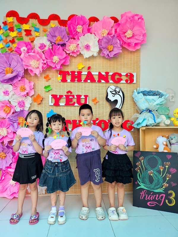 Hòa chung không khí phấn khởi kỷ niệm ngày Quốc tế Phụ nữ 8/3, Trường Mầm non Ngôi Sao Xanh đã triển khai tổ chức các hoạt động bổ ích, thú vị với sự tham gia tích cực của cô và trò ở các nhóm/ lớp. Với phương châm đổi mới phương pháp dạy học, lấy trẻ làm trung tâm nên tất cả các hoạt động đều hướng đến mục đích là tạo cho trẻ một tâm lý hào hứng, thích thú và niềm biết ơn đến những người phụ nữ như: bà, mẹ, và các cô giáo. Trong những ngày này, các cô giáo đã cho trẻ được trải nghiệm làm thiệp, làm quà, làm hoa tặng bà, tặng mẹ; chuẩn bị các bài thơ, các tiết mục văn nghệ thật hay để tham gia sinh hoạt cùng các cô giáo và các bạn. Qua hoạt động này không chỉ giúp trẻ hiểu được ý nghĩa của ngày Quốc tế phụ nữ 8/3 mà còn bồi dưỡng cảm xúc và tình cảm xã hội cho trẻ, giúp trẻ biết thể hiện sự quan tâm, yêu quý, kính trọng với bà, với mẹ, với cô giáo, và với các bạn nữ. Nhân ngày Quốc tế Phụ nữ 8/3 Trường mầm non Ngôi Sao Xanh xin kính chúc sức khỏe tới các bà, các mẹ, các cô giáo, chúc phái nữ luôn xinh đẹp, trẻ trung, thành công trong công việc và hạnh phúc trong cuộc sống. Dưới đây là một số hình ảnh của các con: