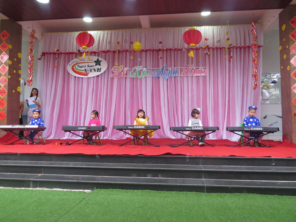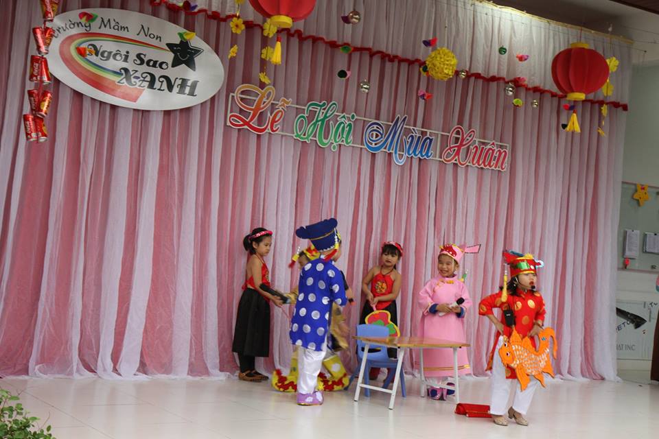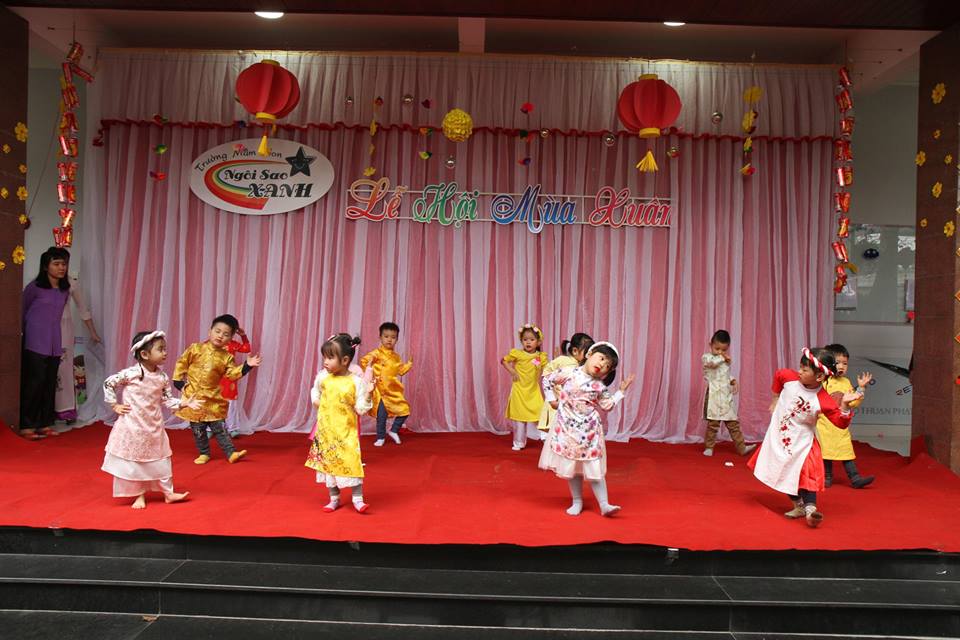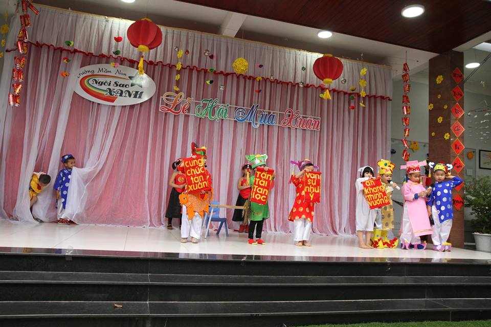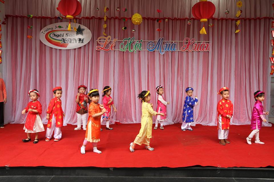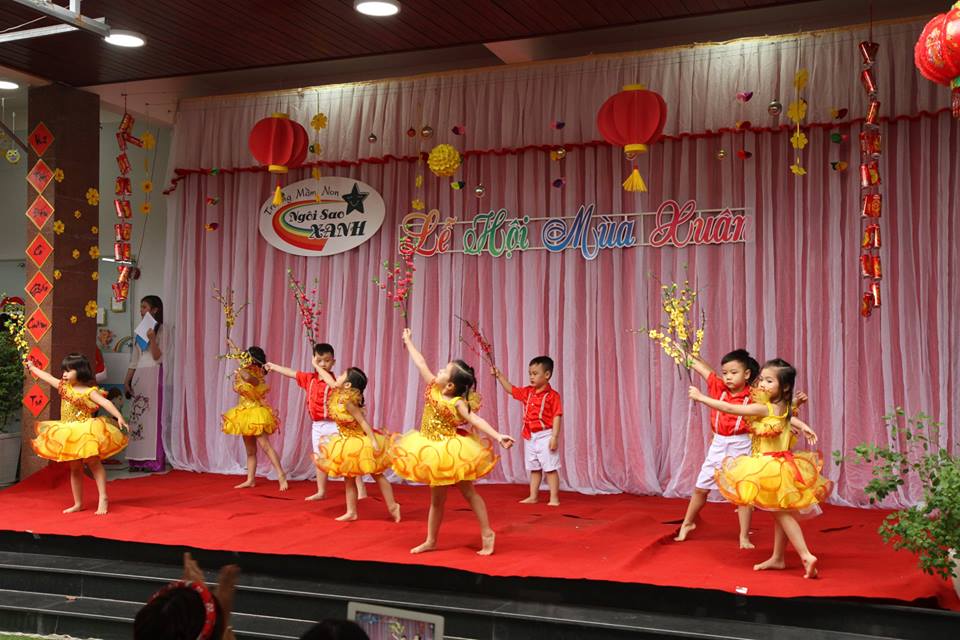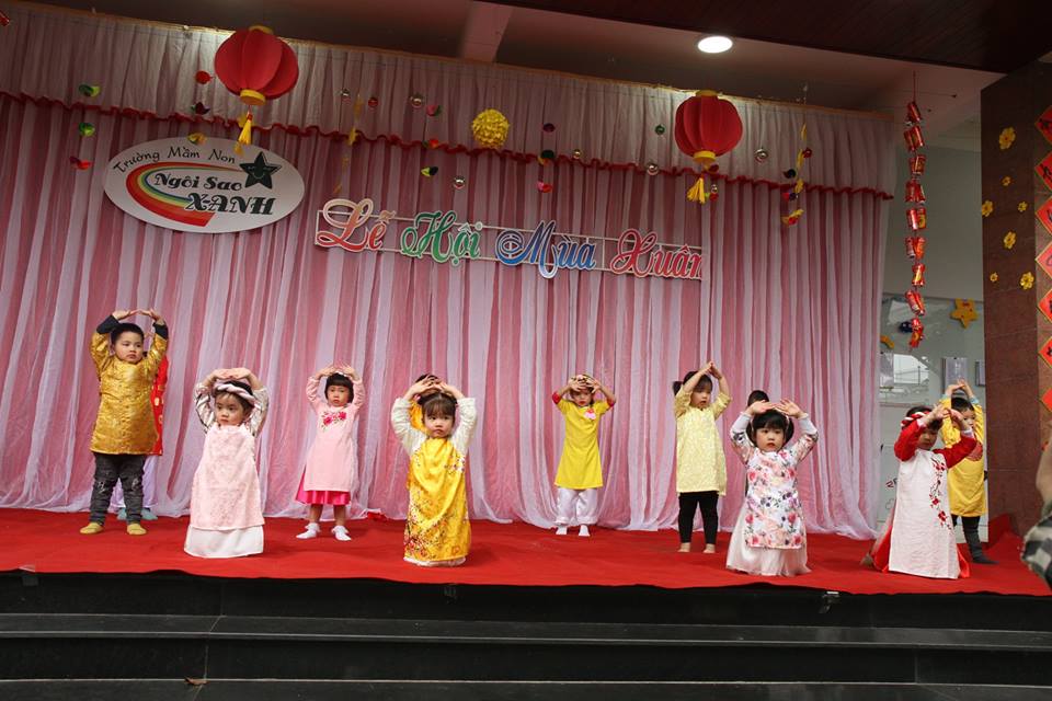 Mỗi khi cánh én chao nghiêng bay lượn trên nền trời xanh của Tổ quốc là báo hiệu mùa xuân đã về. Mùa xuân đem đến cho chúng ta sự ấm áp của đất trời và những sắc màu rực rỡ của ngàn hoa đua nở. Hòa trong không khí vui tươi của đất trời khi bước sang năm mới. Ngày 3/2/2018, Trường mầm non Ngôi Sao xanh tổ chức "Lễ hội Mùa Xuân" cho các bé. Những tiết mục văn nghệ được mở đầu cho lễ hội, những hình ảnh đặc trưng của chợ quê ngày Tết như Ông đồ già, câu đối đỏ, bánh chưng, bánh tét, hoa mai, đào, dưa hấu và các gian hàng chợ quê đã được các cô và các cháu tái hiện một cách sinh động. Lễ hội đã diễn ra rất thành công với sự tham gia của toàn thể nhân viên nhà trường, phụ huynh và học sinh.