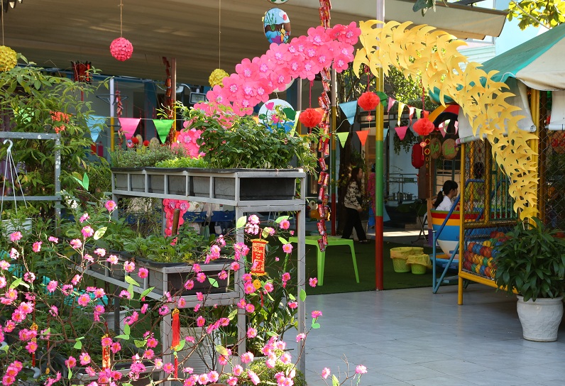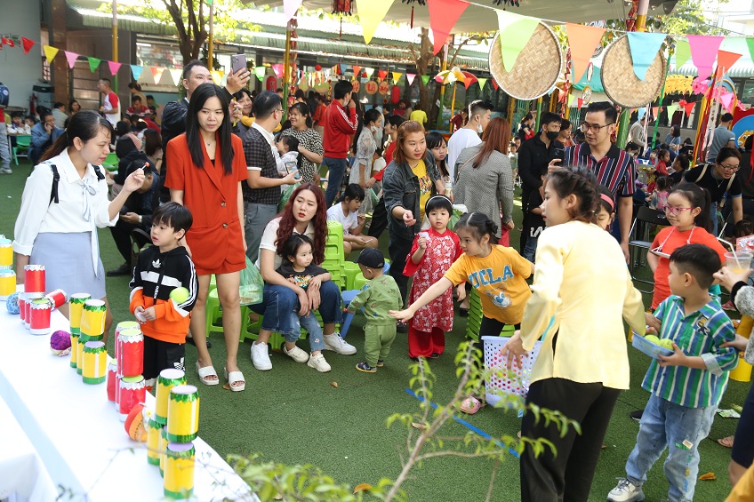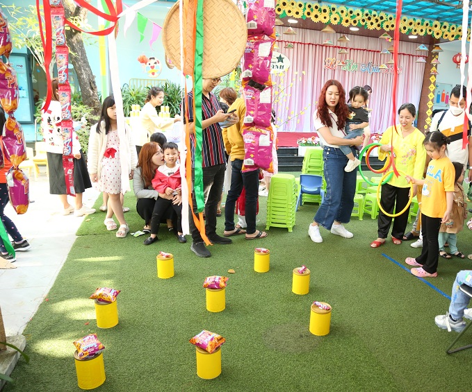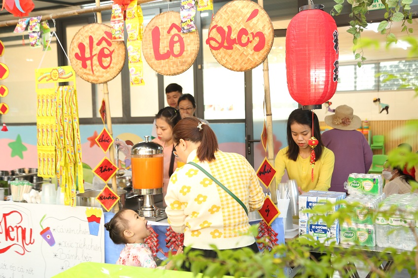 Ngoài ra, các bé còn được cùng ba, mẹ và cô giáo tham gia hoạt động Hội chợ xuân với khung cảnh chợ quê ngày tết và nhiều món ăn truyền thống giúp trẻ có cơ hội trải nghiệm, tiếp cận với văn hóa dân tộc, bồi đắp vốn hiểu biết về văn hóa ngày Tết cổ truyền. Đây cũng là cơ hội rèn kỹ năng sống cho trẻ đó là kĩ năng mua, bán, giao tiếp, ứng xử khi tham gia các hoạt động xã hội.