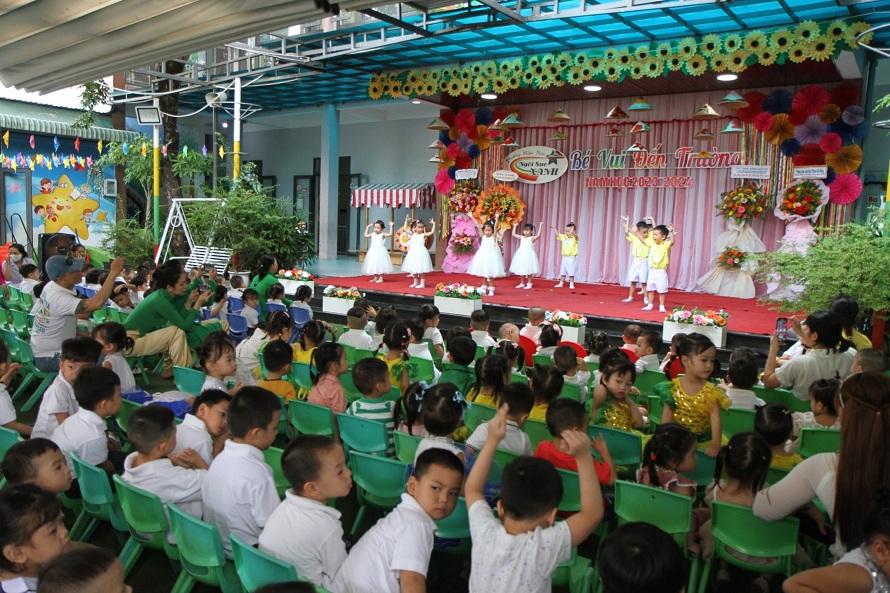 Mùa thu - mùa của năm học mới đã bắt đầu. Hòa chung vào không khí ngày khai trường của học sinh cả nước chào mừng năm học mới 2023 – 2024. Hôm nay, trường Mầm non Ngôi Sao Xanh long trọng tổ chức lễ khai giảng năm học mới với sự quyết tâm, lòng yêu nghề mến trẻ để có một năm học thành công, các con chăm ngoan học giỏi và tạo dựng một ngôi trường xanh- an toàn - thân thiện và hạnh phúc. Dưới đây là một số hình ảnh của buổi lễ: