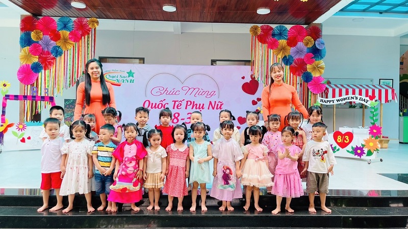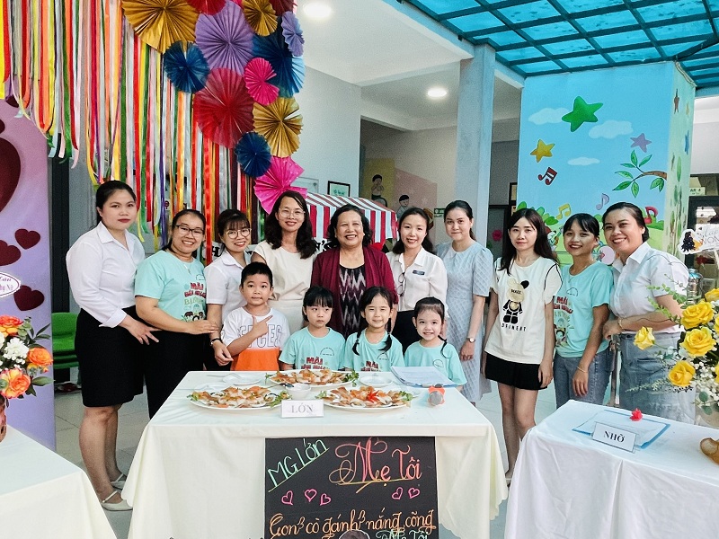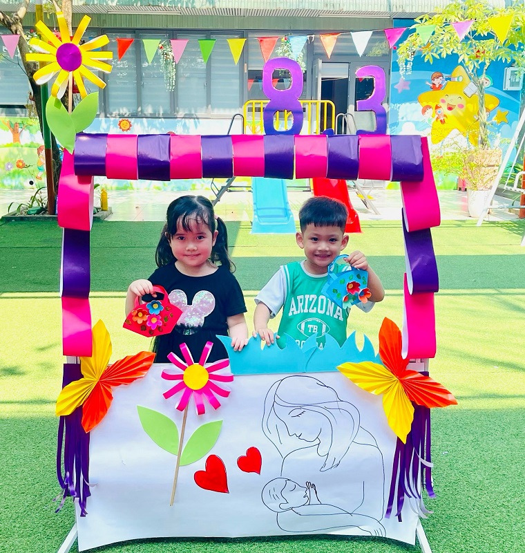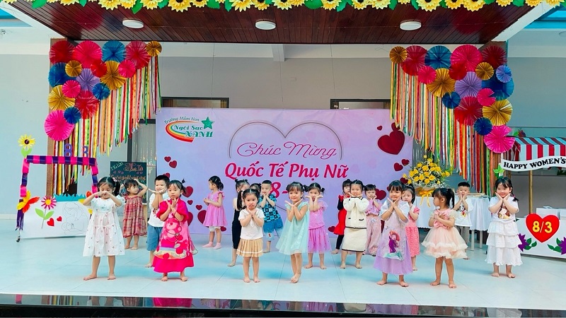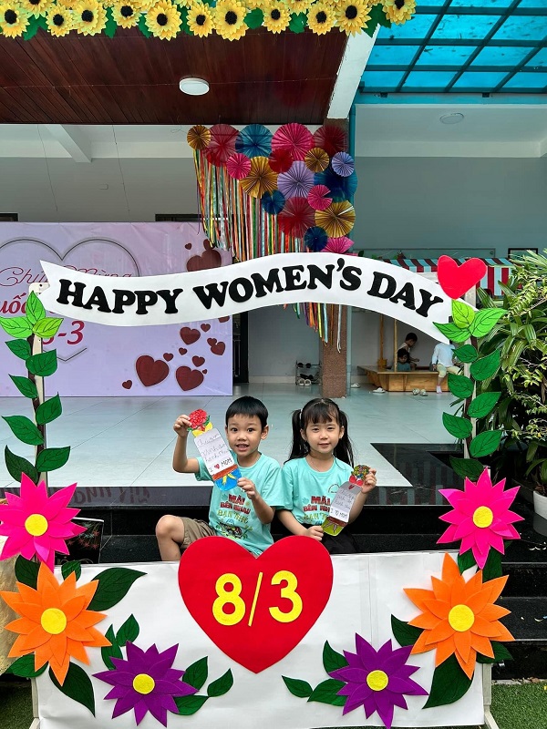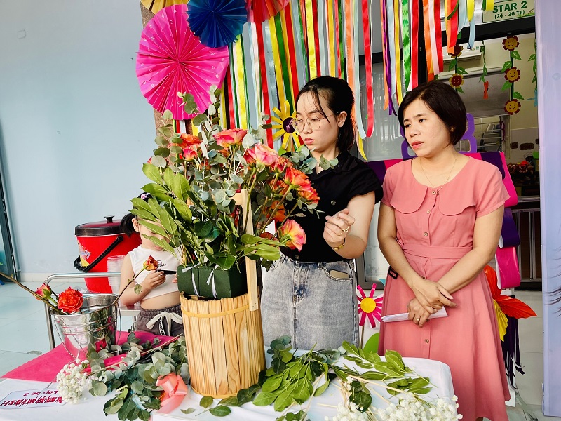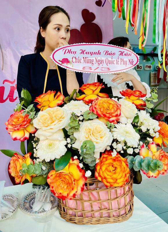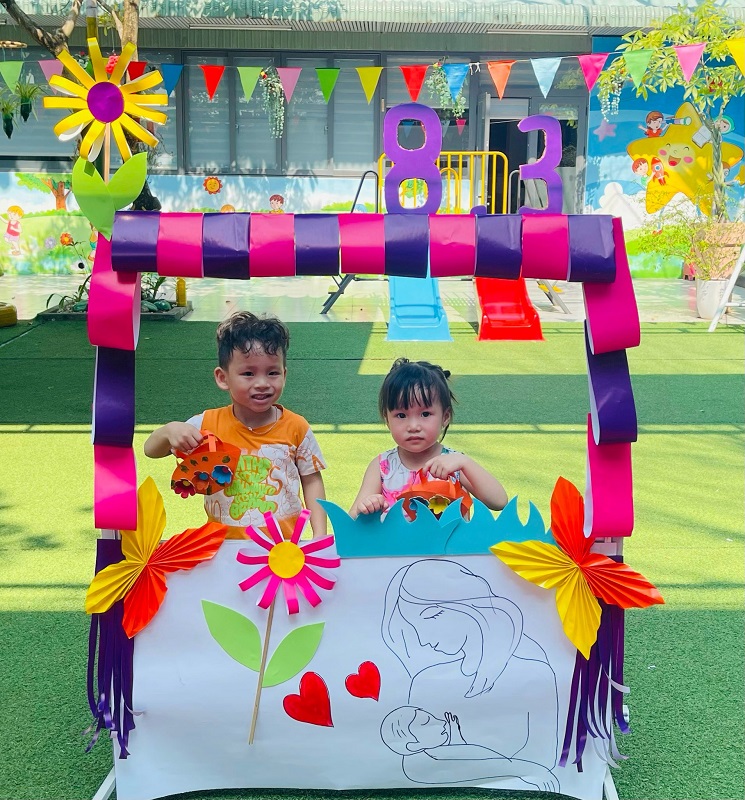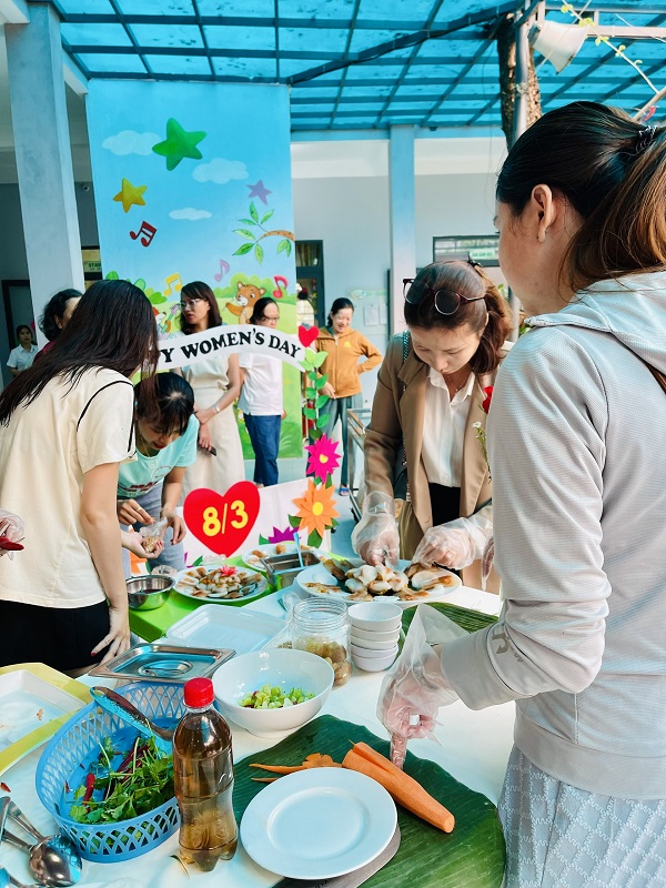 Kỷ niệm 114 năm ngày Quốc tế Phụ nữ (8/3/1910 - 8/3/2022), nhằm giúp trẻ có thêm hiểu biết về ngày quốc tế phụ nữ, trường mầm non Ngôi Sao Xanh đã tổ chức các hoạt động sôi nổi chào mừng ngày 8/3 với sự tham gia hưởng ứng tích cực của phụ huynh và học sinh. Ở hoạt động giao lưu gặp mặt giữa nhà trường với phụ huynh, phụ huynh- học sinh và giáo viên: các bé cùng với mẹ được hóa thân thành những đầu bếp chuyên nghiệp làm các món ăn bổ dưỡng như: mì trộn hải sản, gỏi bưởi tôm thịt, bánh táo, bánh đông sương, bánh bèo- bánh lọc. Với sự sáng tạo và đôi tay khéo léo, các bé với mẹ đã tạo ra những lẵng hoa thật đẹp mắt để tặng cho các bà, các mẹ và các cô giáo. Xuyên suốt chủ đề trẻ còn được trải nghiệm các hoạt động làm quà, làm thiệp tặng bà tặng mẹ cùng cô và các bạn. Kết thúc hoạt động là chương trình giao lưu văn nghệ với những bài thơ, lời ca tiếng hát sâu lắng, vui tươi đong đầy tình cảm của các con học sinh thân yêu dành tặng cho các bà, các mẹ và các cô giáo của mình thay cho lời cảm ơn vì công sinh thành, chăm sóc, dạy dỗ các con hàng ngày. Với việc tổ chức cho trẻ được tham gia các hoạt động trải nghiệm trường MN Ngôi Sao Xanh nhận được sự quan tâm, hưởng ứng nhiệt tình của các bậc phụ huynh, sự chia sẻ đồng hành của ban lãnh đạo nhà trường. Qua đó, gắn kết sự phối hợp giữa phụ huynh và nhà trường trong công tác chăm sóc giáo dục trẻ đồng thời giáo dục cho trẻ kỹ năng sống, giáo dục tình yêu thương, chia sẻ và đoàn kết. Nhân ngày quốc tế phụ nữ 8/3, kính chúc các bà, các mẹ, các GV –NV nhà trường luôn mạnh khỏe, xinh đẹp và hạnh phúc. Dưới đây là một số hình ảnh của hoạt động.